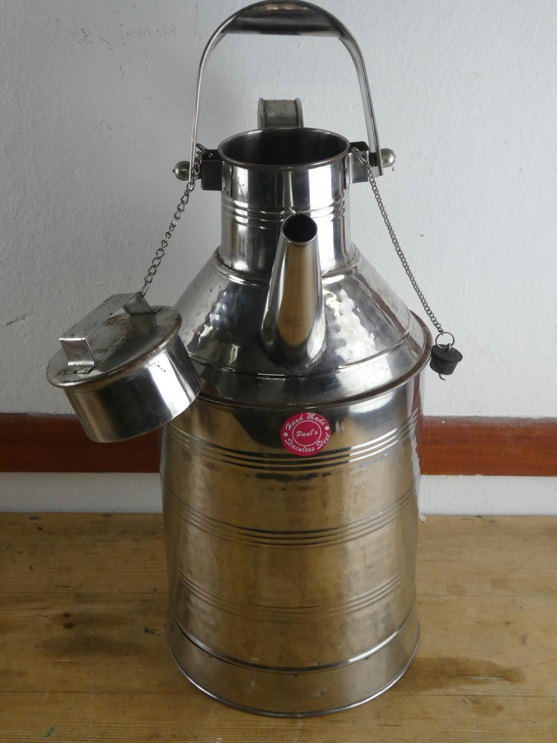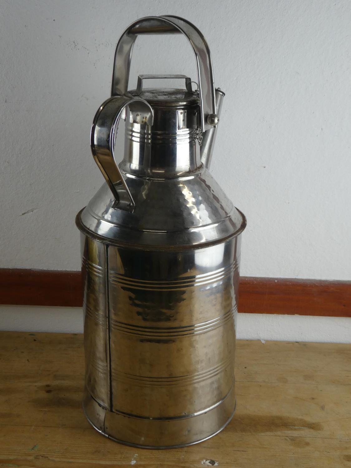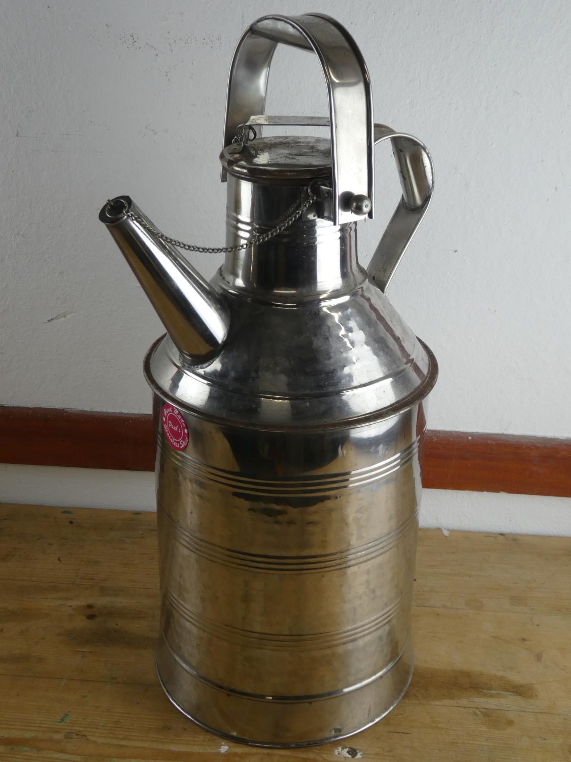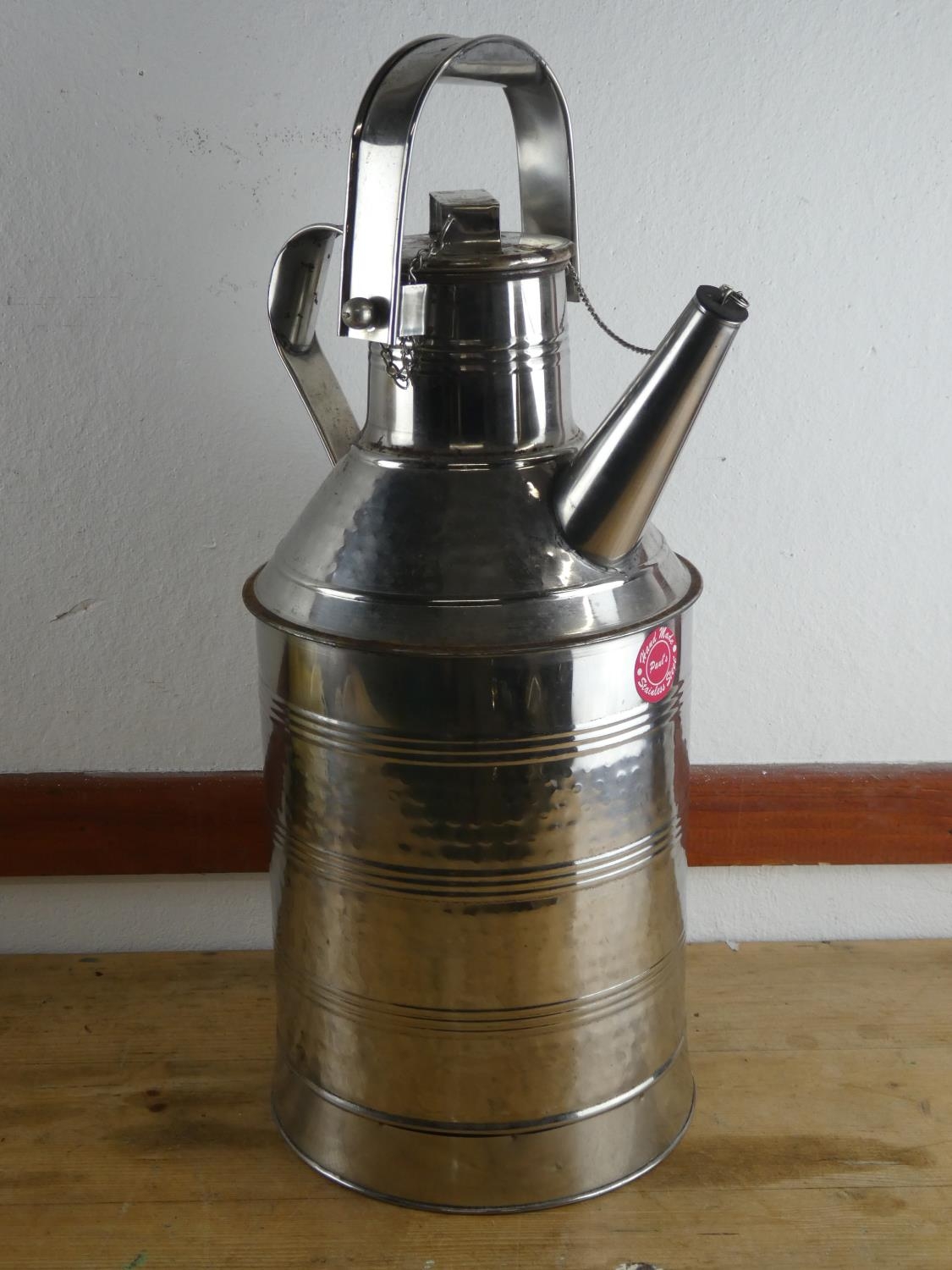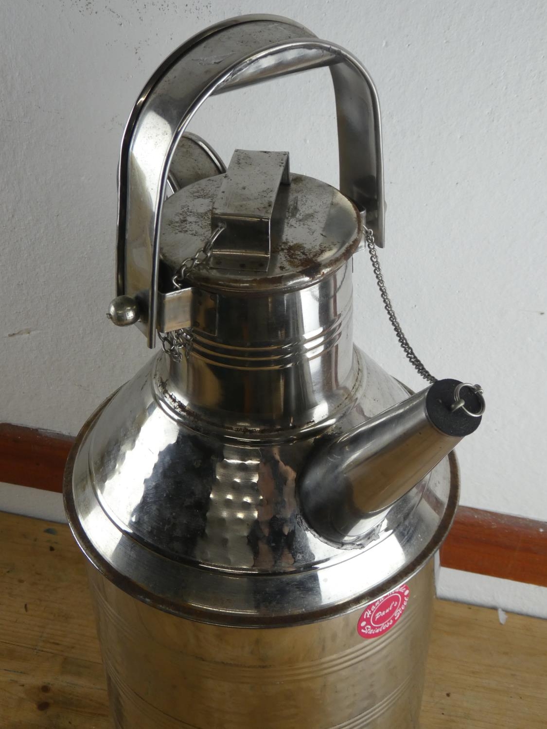 A stainless steel watering can, measuring 60cm tall.