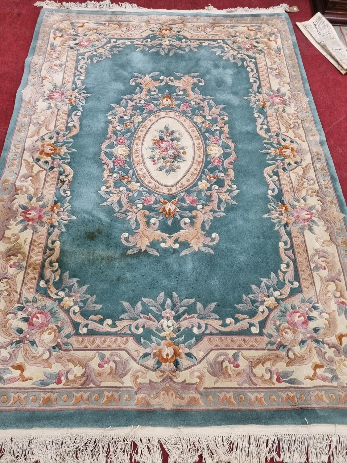 A green ground Oriental Carpet with floral design 290 x 190 cm approx.