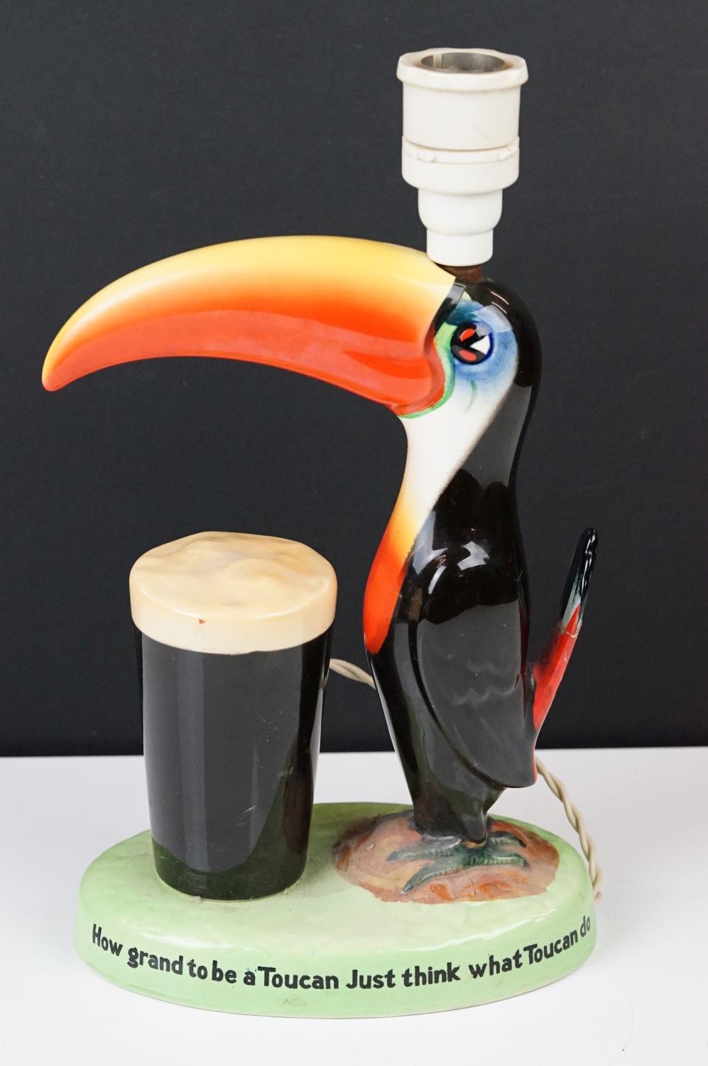 Advertising - Carlton Ware Guinness toucan ceramic table lamp, motto reads 'How Grand To Be a Toucan Just think what Toucan do' and 'If he can say as you can Guinness is good for you', 28cm high