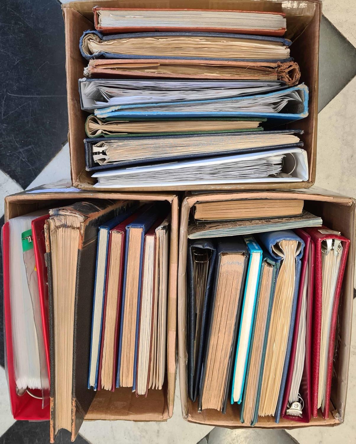 WORLDWIDE ACCUMULATION; Three cartons containing 24 stockbooks, albums & binders + 5 pages & 2 'bundles' of an all world mixture. Includes 1 album of Cinderellas. Covers a range of countries & periods. (Qty)