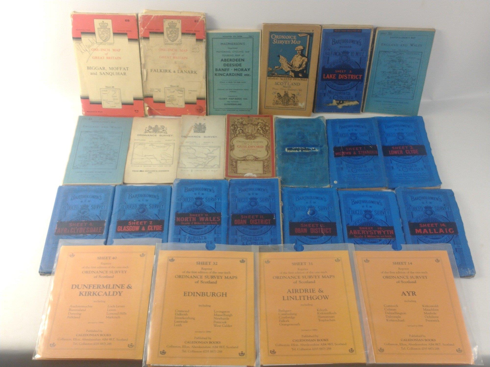 A mixed lot of ORDNANCE SURVEY MAPS to include map printers such as Ordnance Survey Office, Southhampton, Caledonian Books, National Grid and Bartholomew's (maps dissected and mounted on cloth), and covering areas such as Guildford, Falkirk, & Lanark, Lake District, England and Wales.