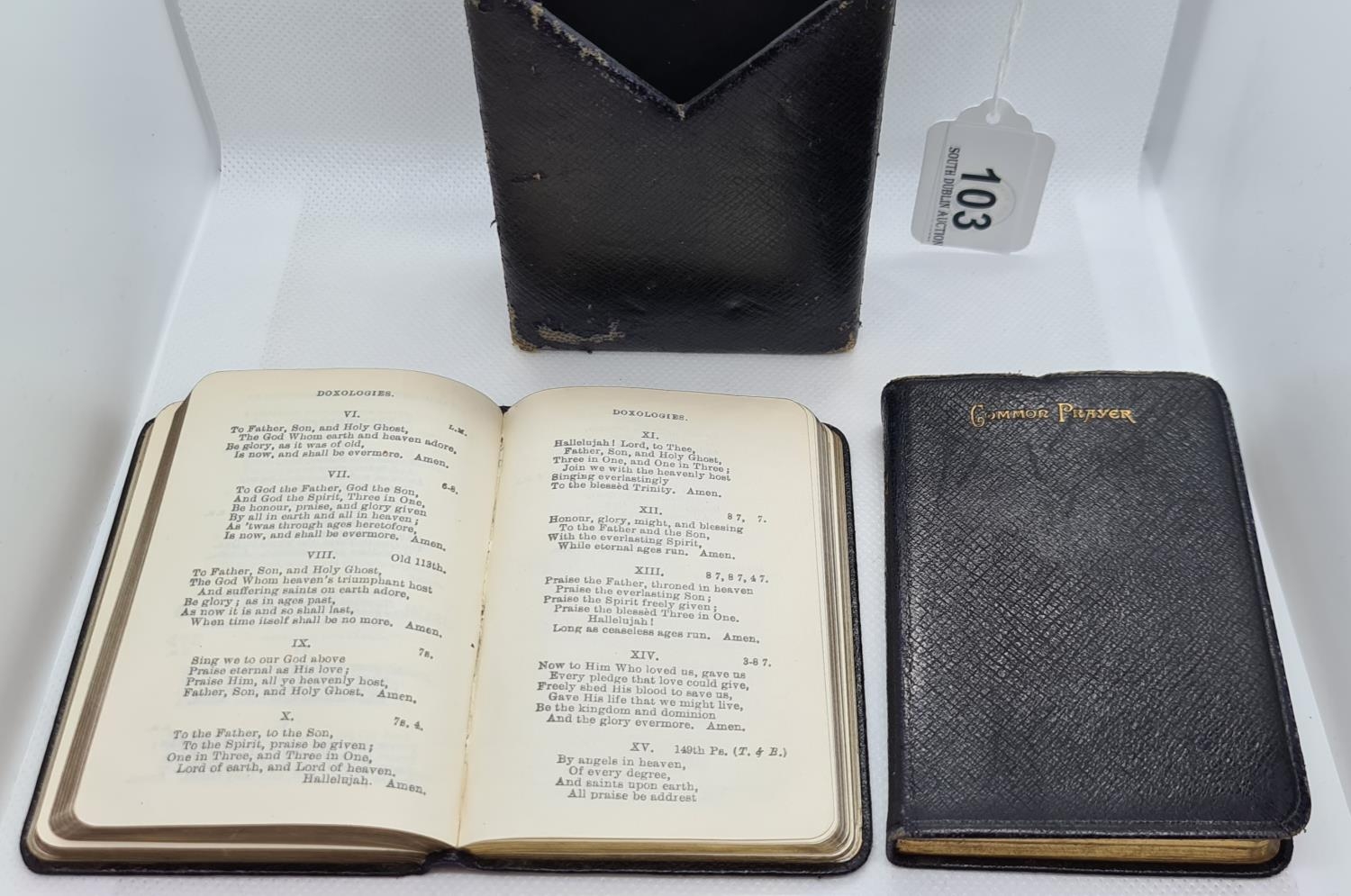 A dublin 1915 small prayer and hymnal book in a leather carrying case.