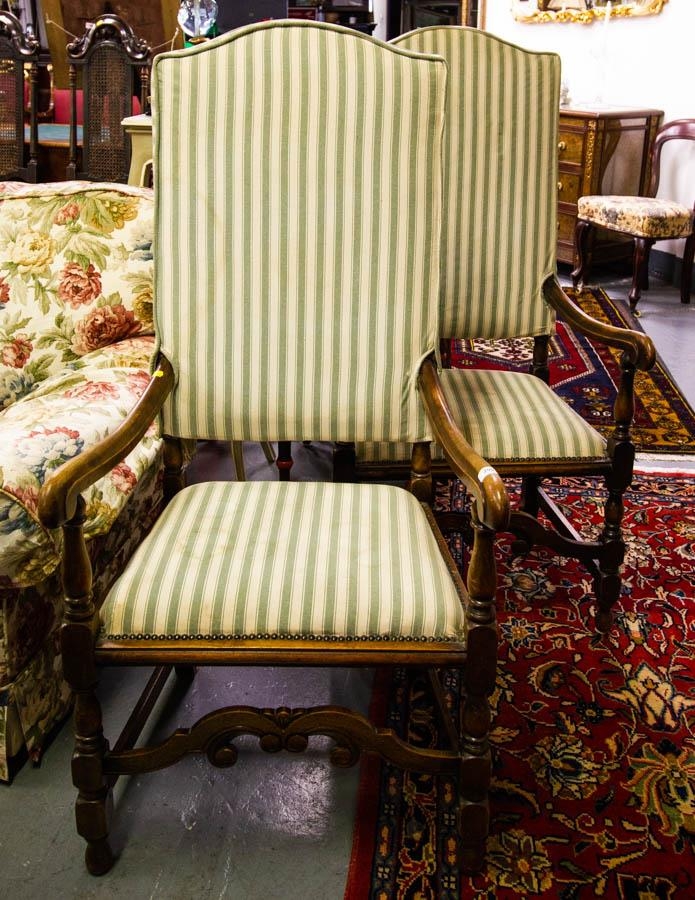 PAIR OF TALL BACK ELBOW CHAIRS