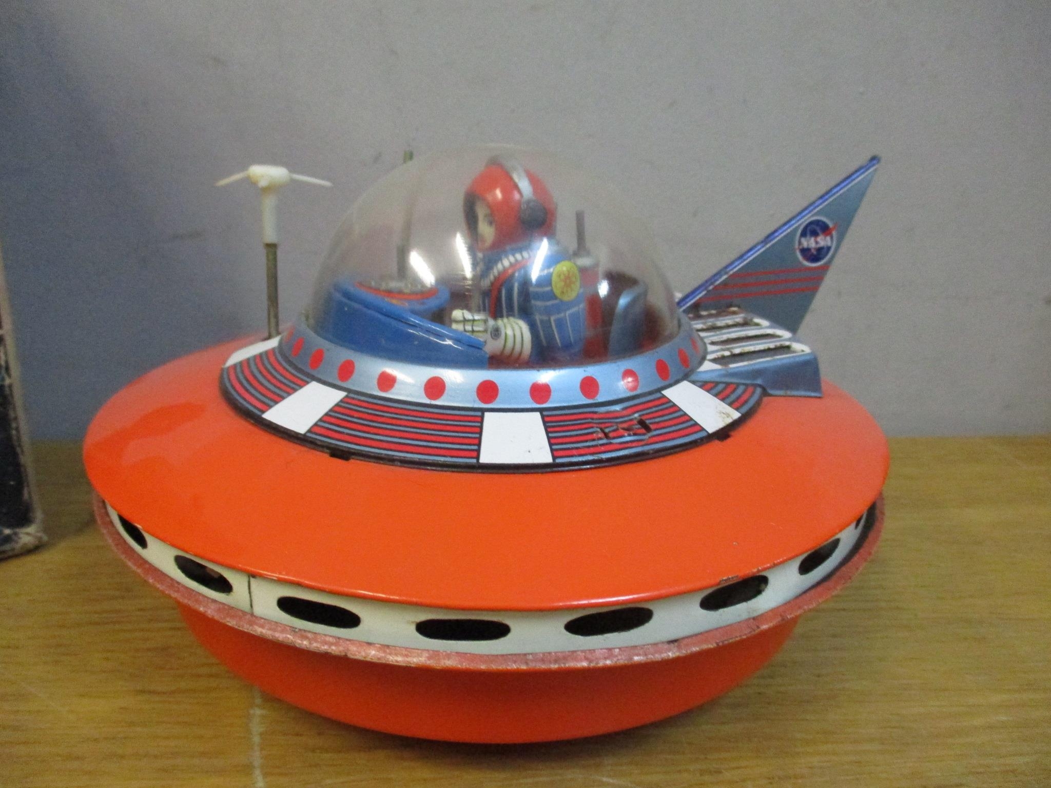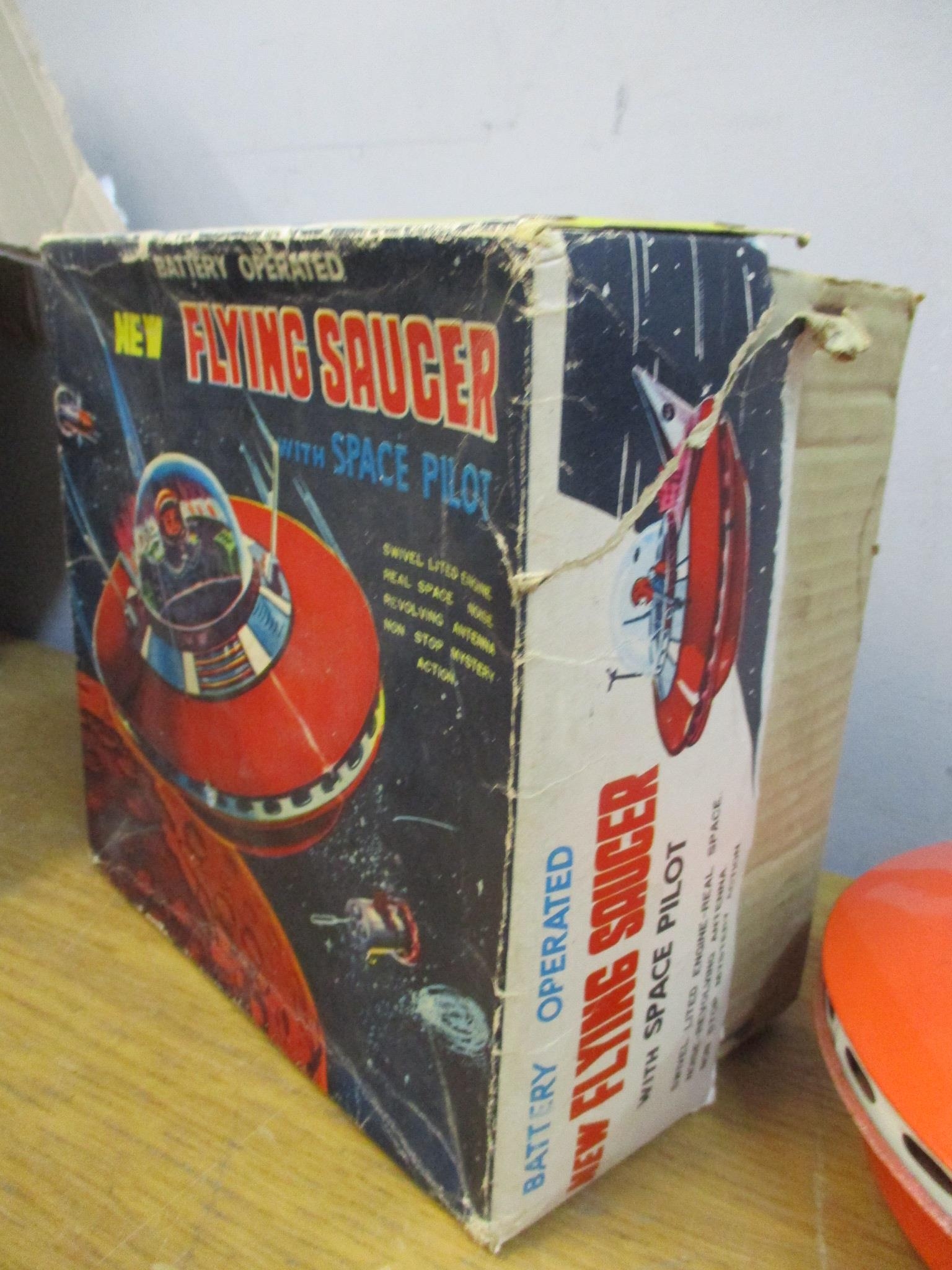 A boxed tinplate and battery operated flying saucer with space pilotLocation: RWM