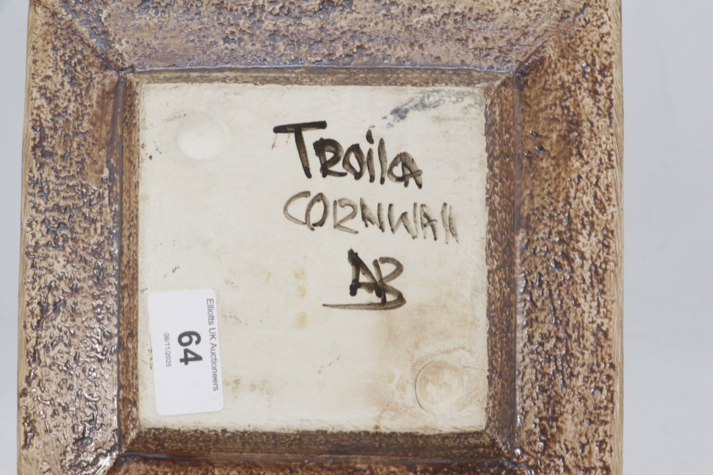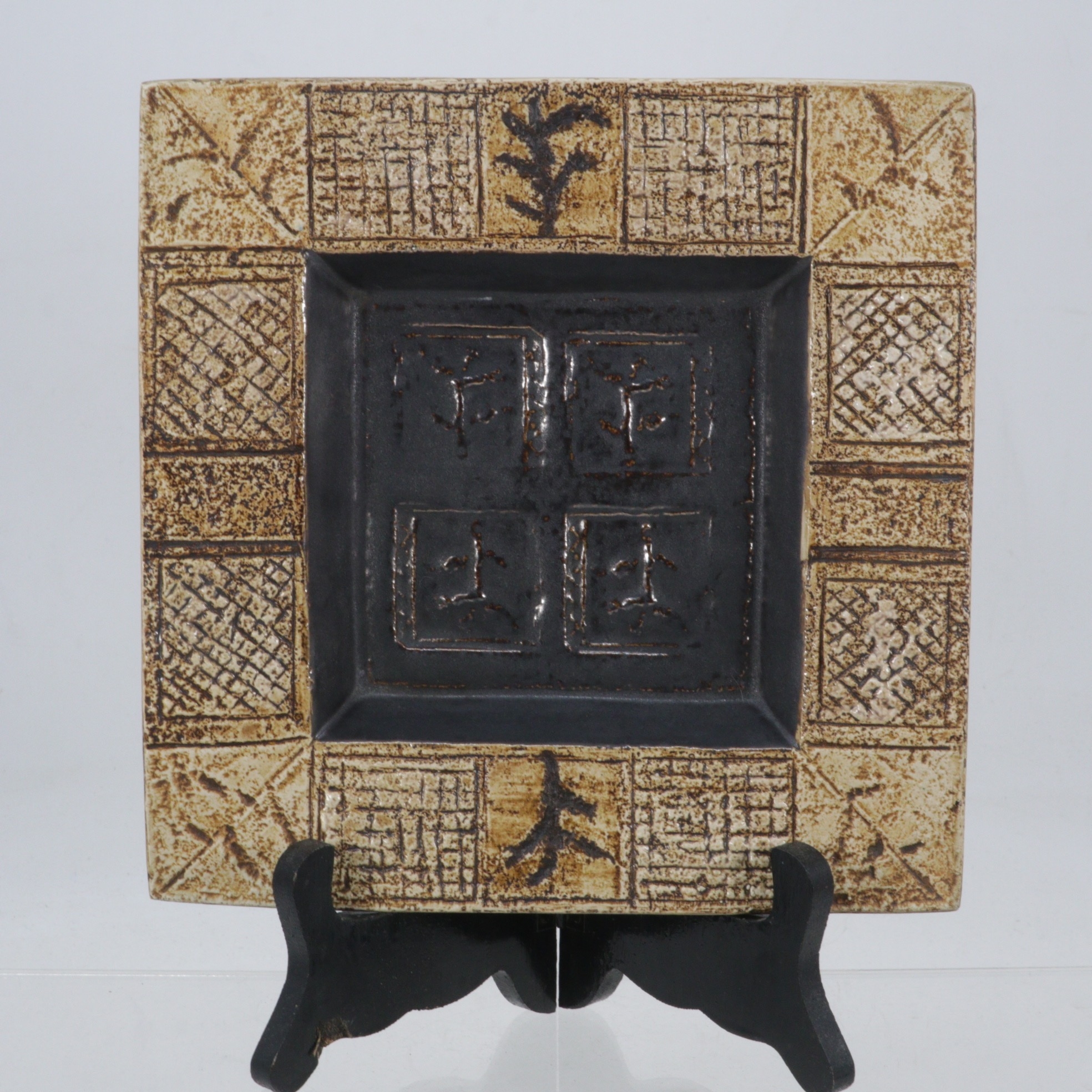 A Toika pottery square dish decorated by Alison Brigden (approx. 19.5cm)