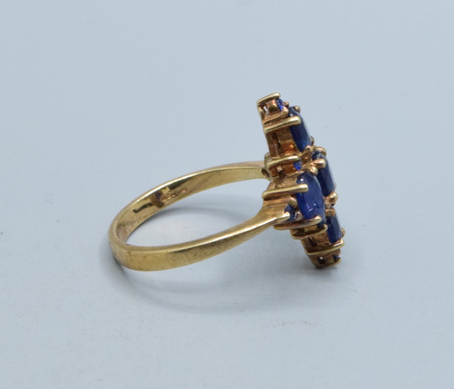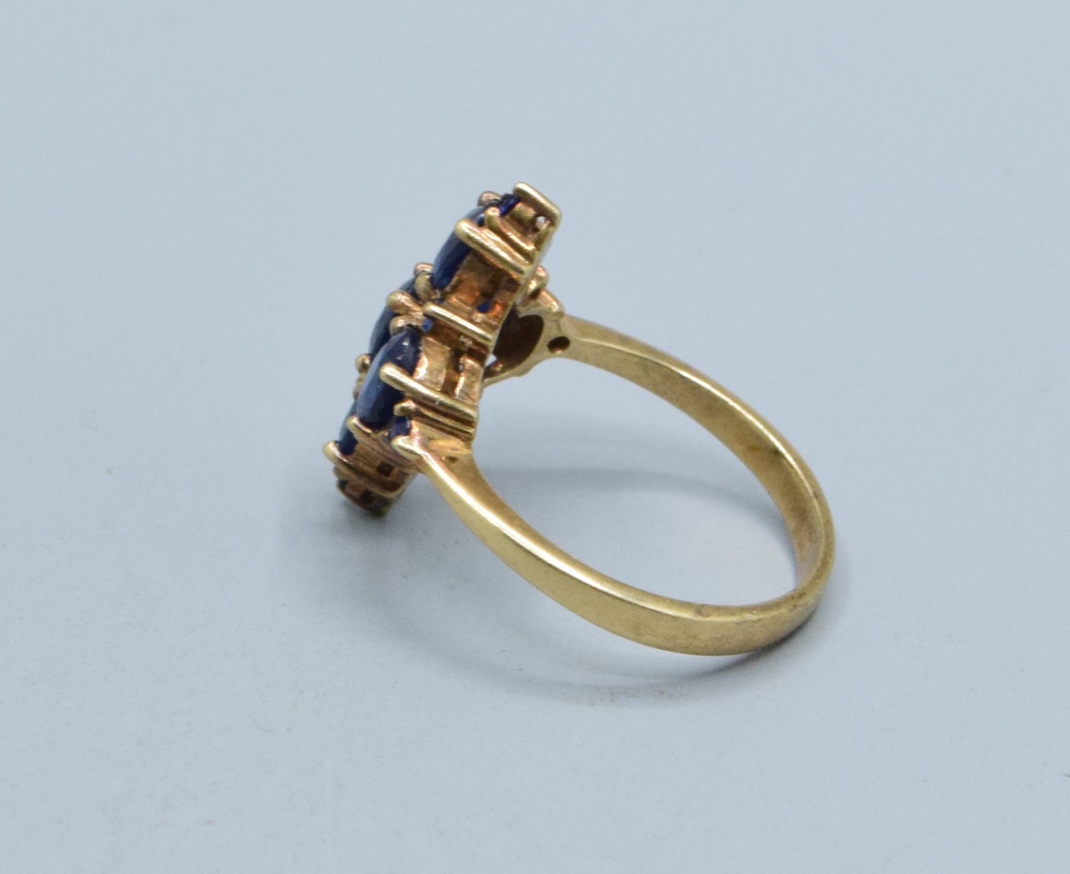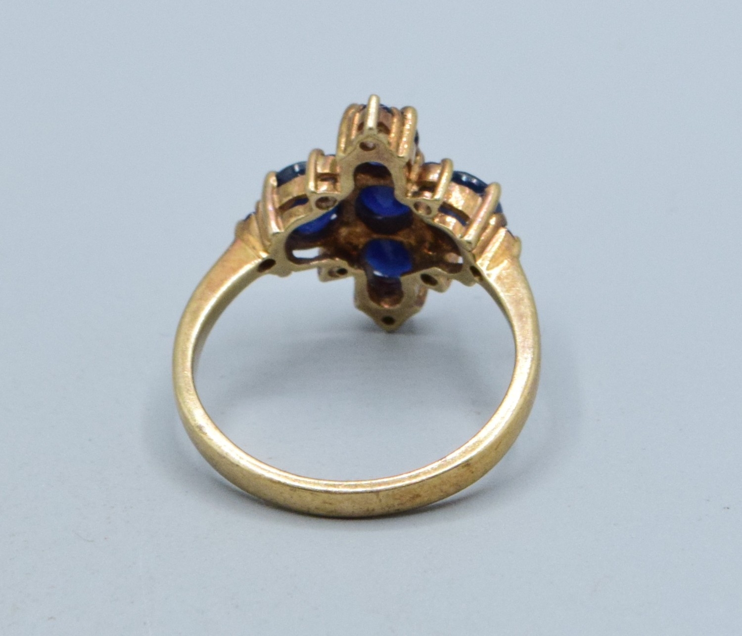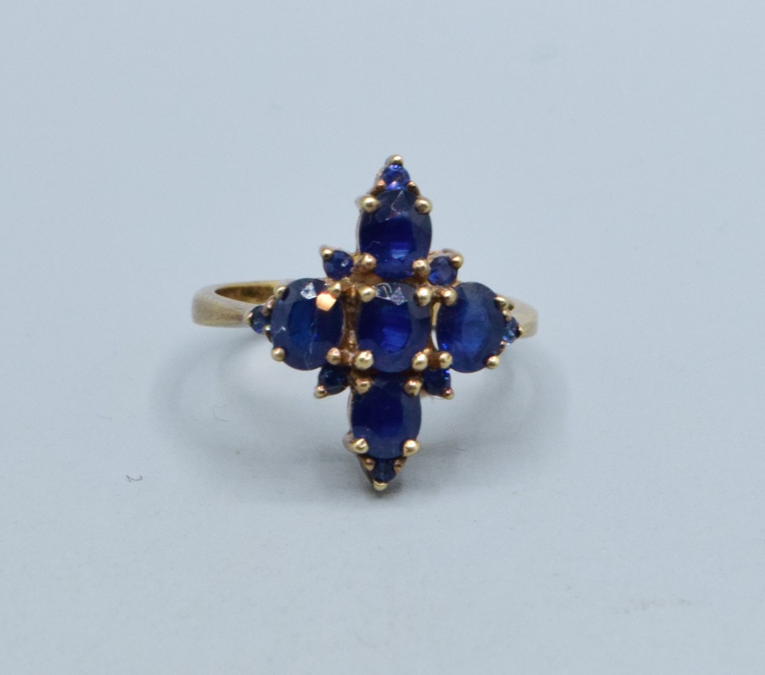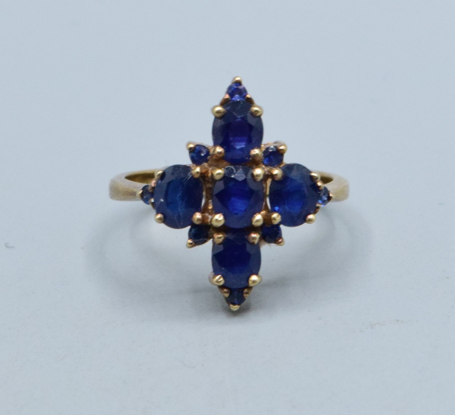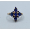 9ct gold Sapphire Diamond shape design ladies dress ring the head measures 19x14mm 3.5grams size N