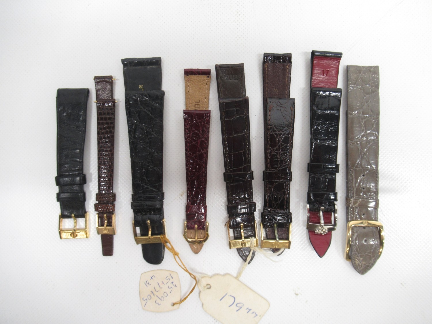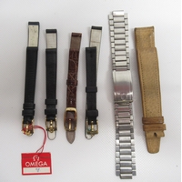 Zenith new/old shop stock ladies watch strap with signed gold plated buckle, lug width 9.8mm; other new/old shop stock watch straps Raymond Weil, Baume Mercier, Zenith, Longines, Bulova, Corum and Omega
