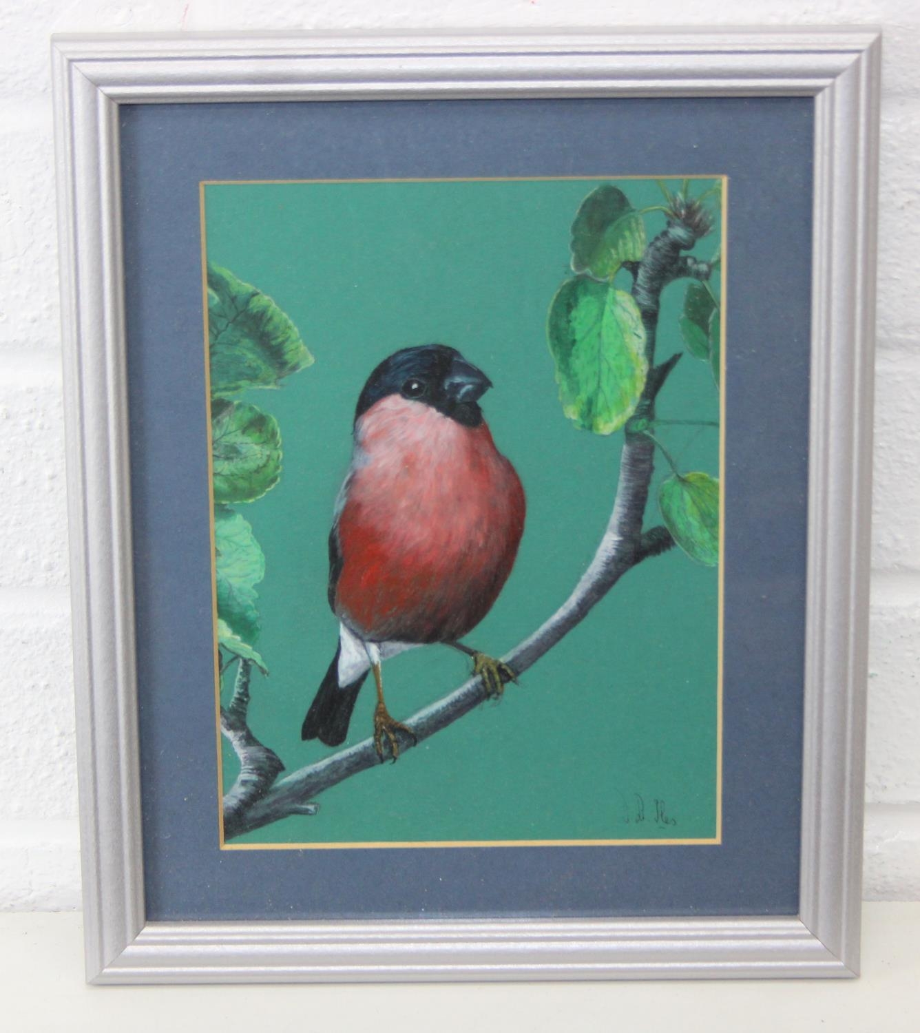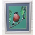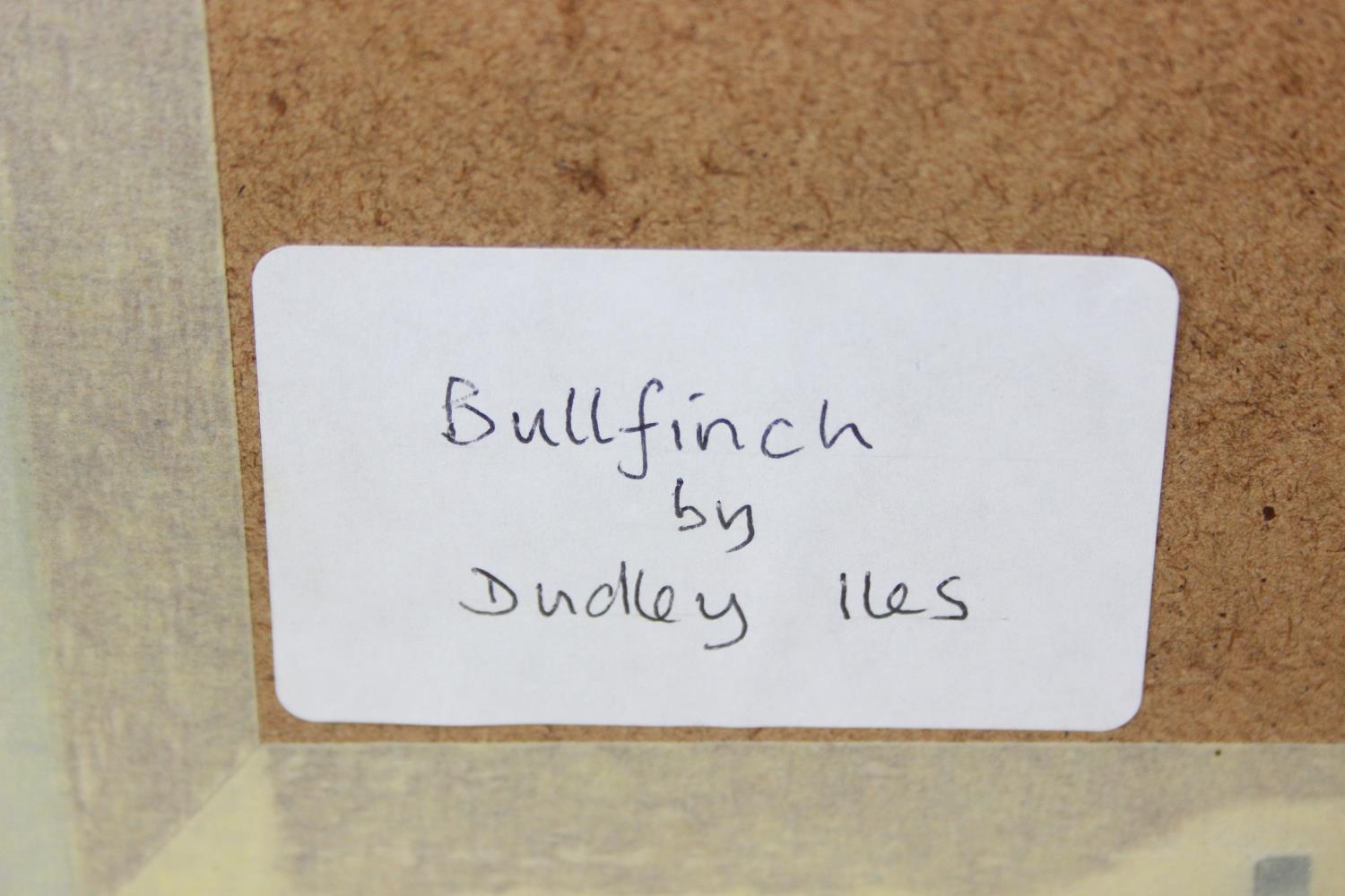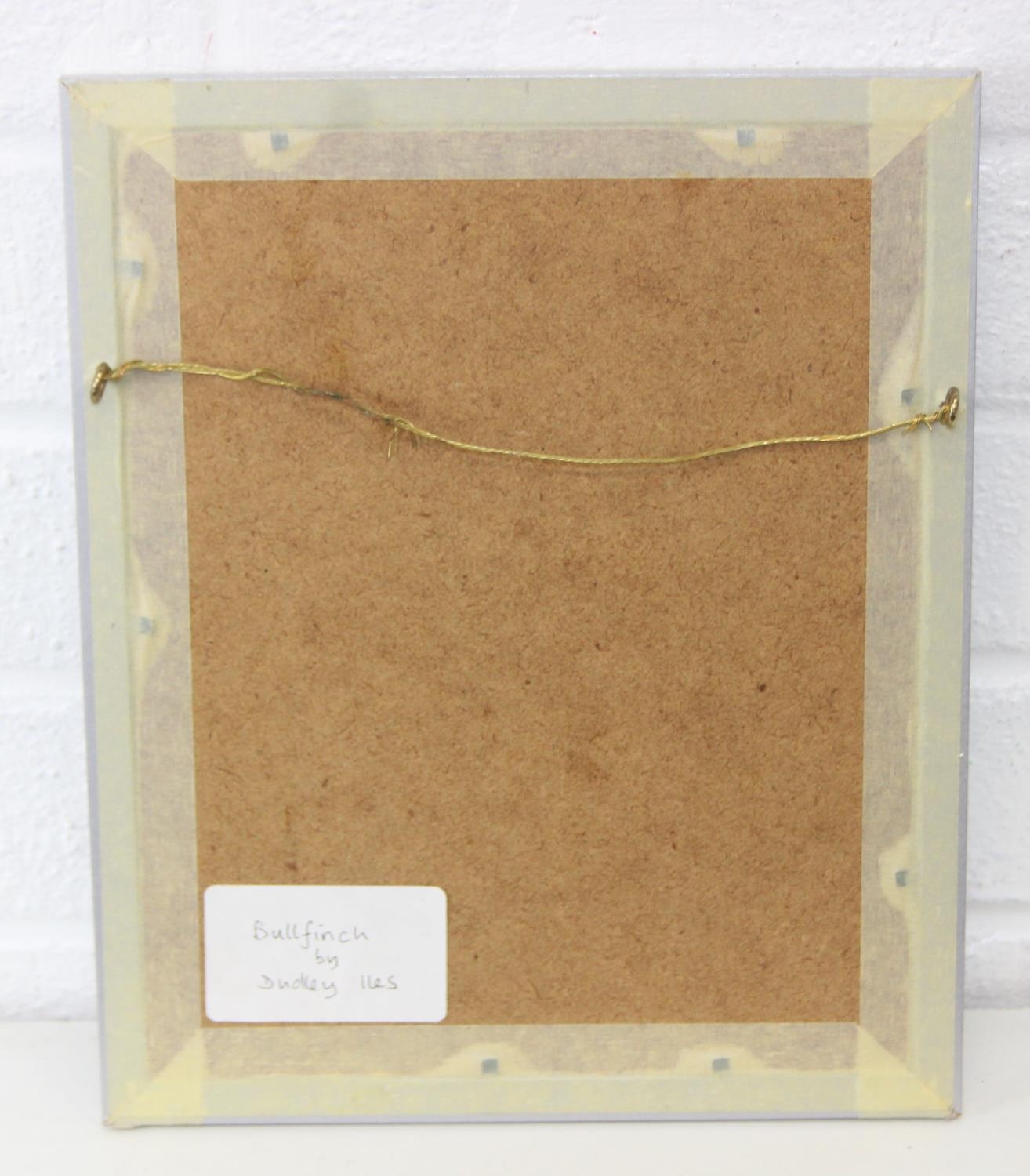Dudley Iles (20th century), a high quality watercolour on paper of a bullfinch, signed lower right and label verso, in simple painted frame, 28cm x 23cm