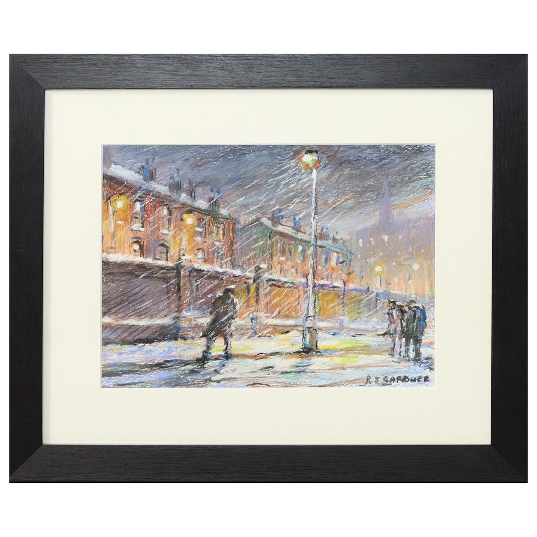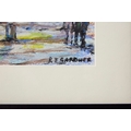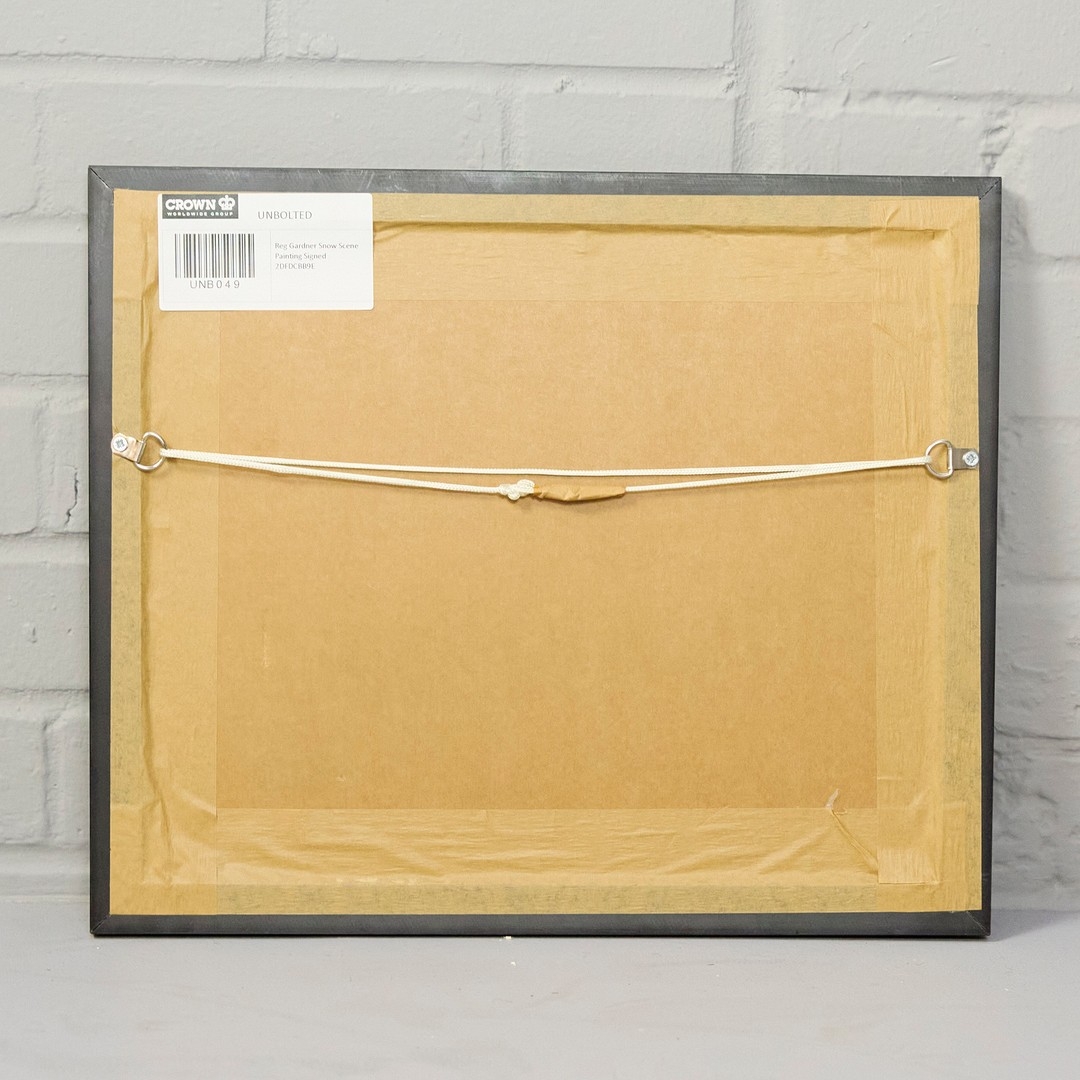 REG GARDNER (BORN 1948). WINTER DAY. (d) oil on board, 36cm x 43cm, framed. (Subject to ARR see Buyers Conditions).