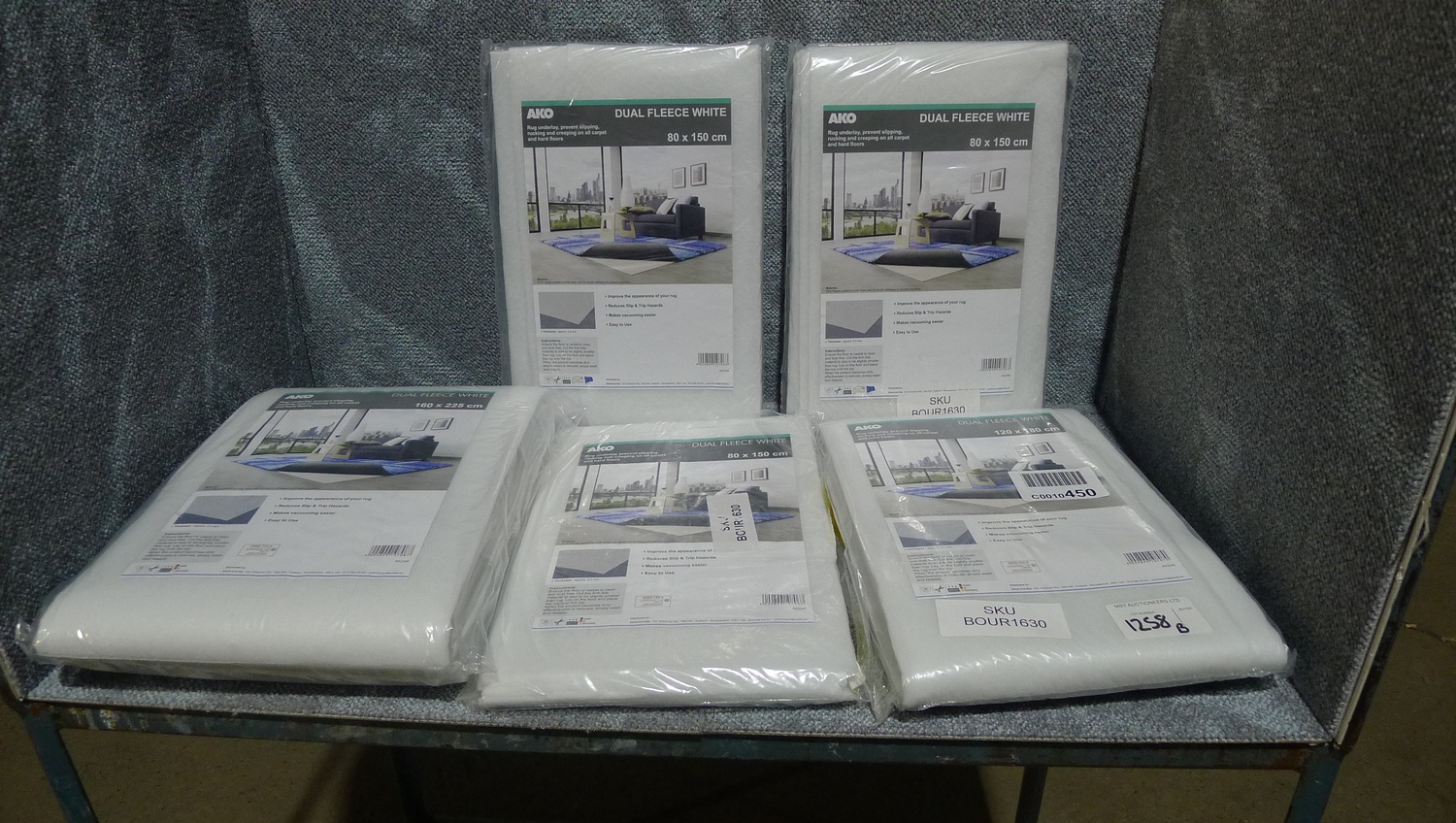 5 various size rug underlays