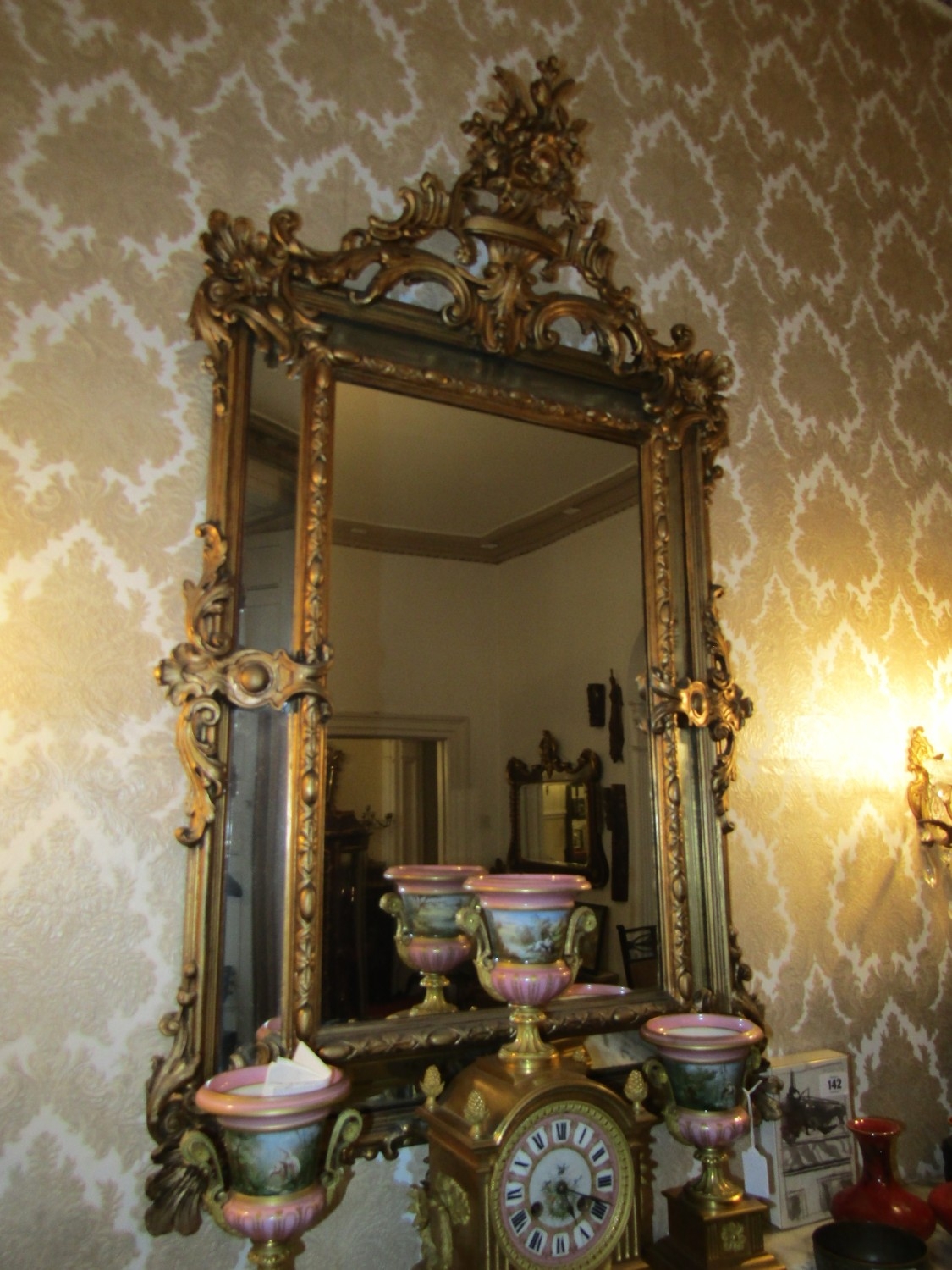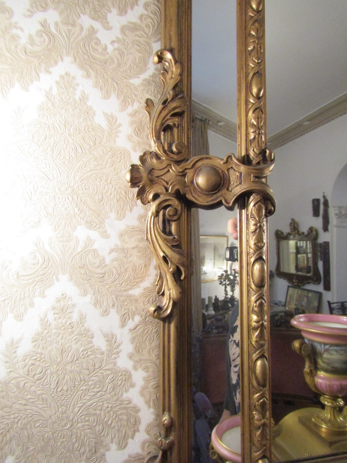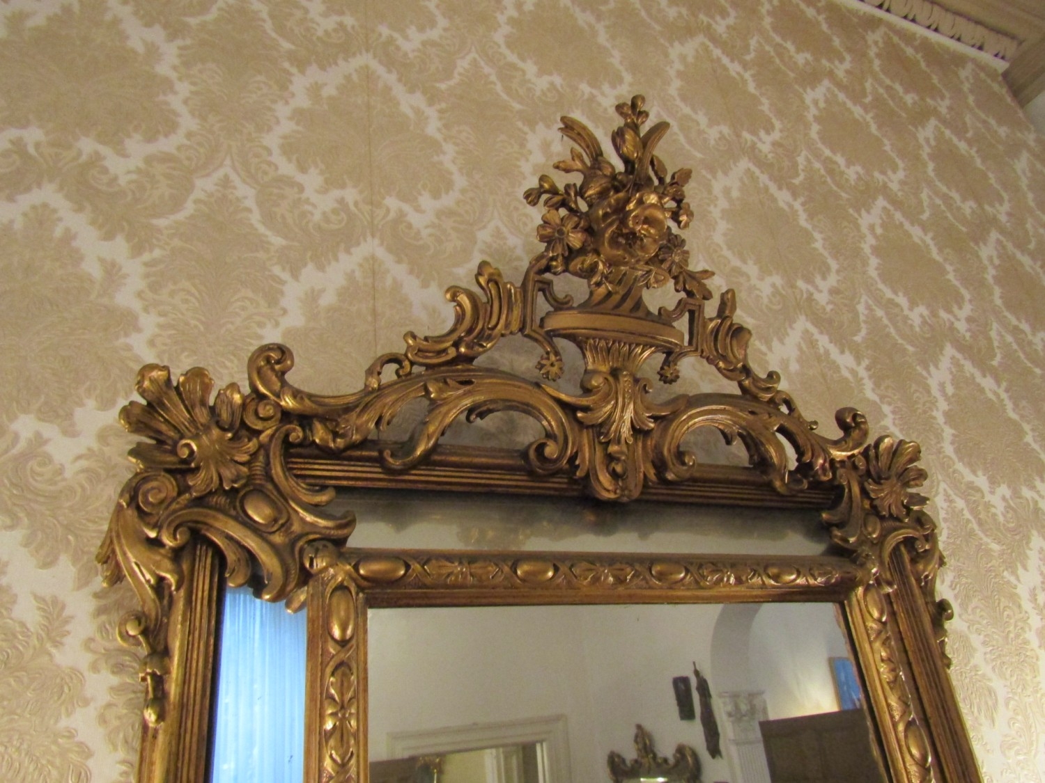 Antique Gilded Wall Mirror Cartouche Upper Decoration Attractively Detailed Approximately 42 Inches High x 32 Inches Wide