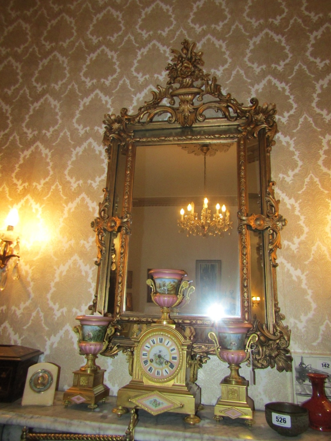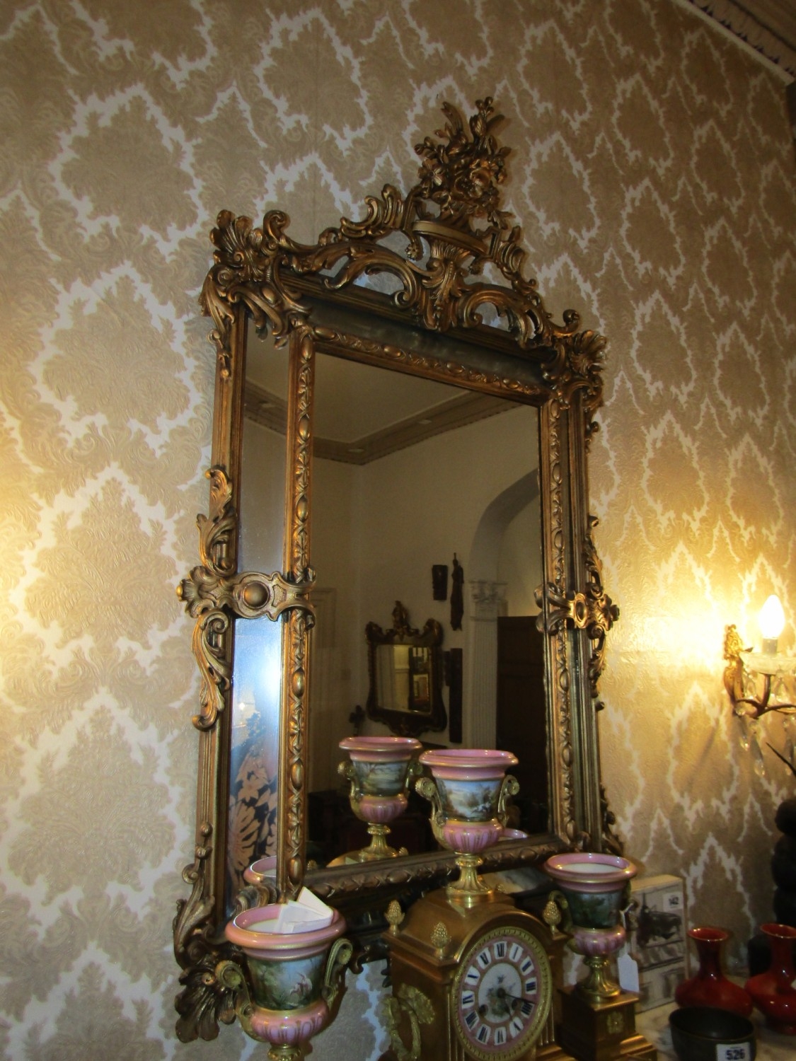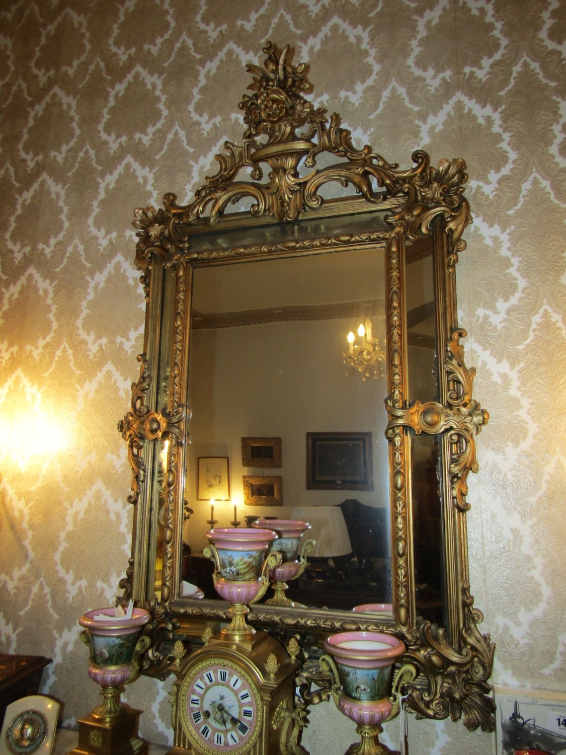 Antique Gilded Wall Mirror Cartouche Upper Decoration Attractively Detailed Approximately 42 Inches High x 32 Inches Wide