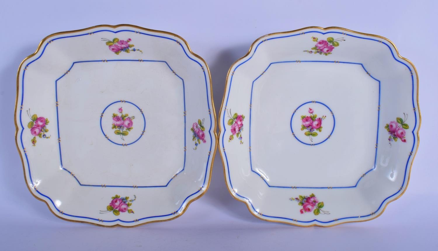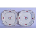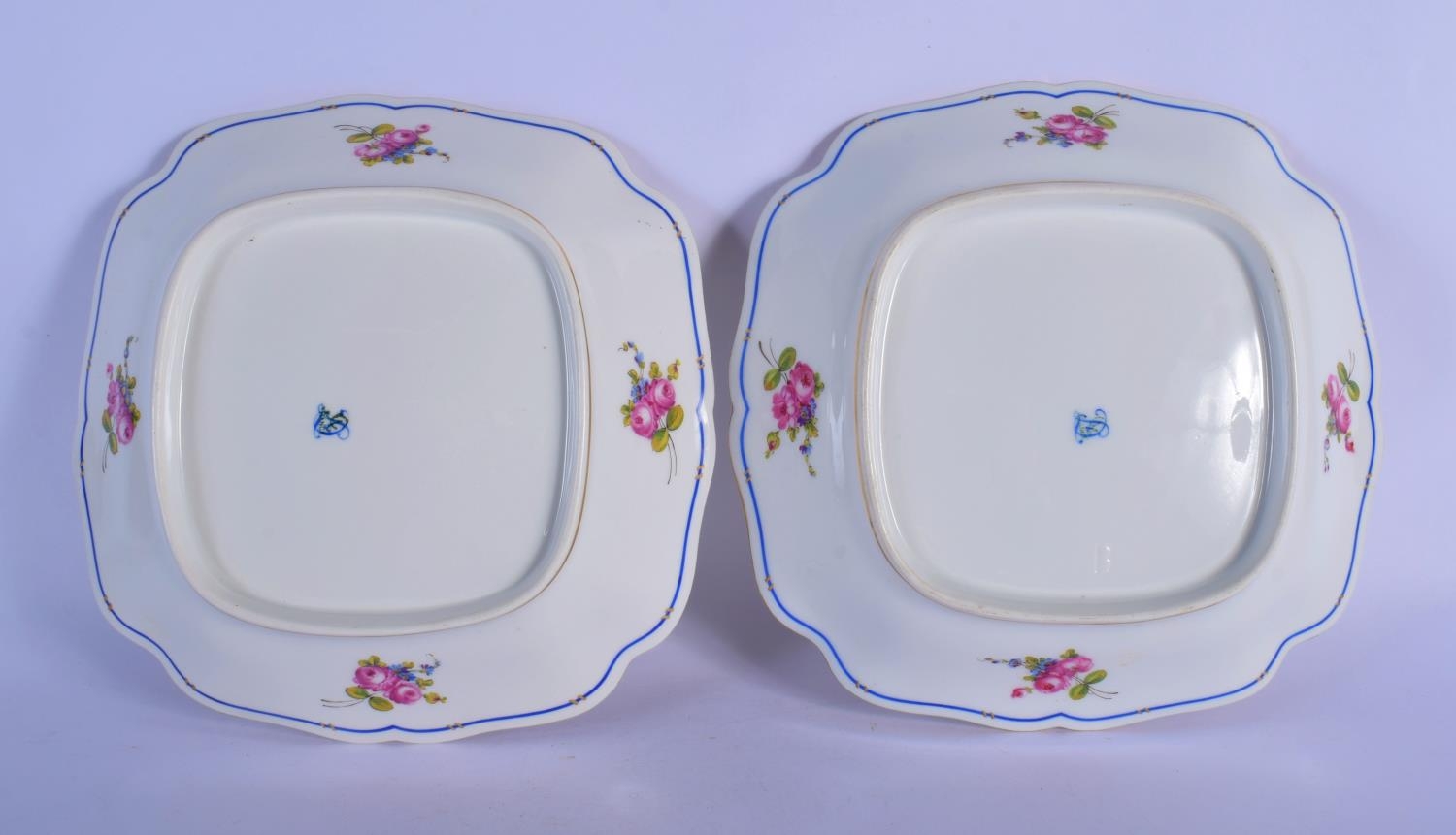 A PAIR OF EARLY 20TH CENTURY FRENCH LIMOGES PORCELAIN DISHES painted with flowers. 22 cm square.