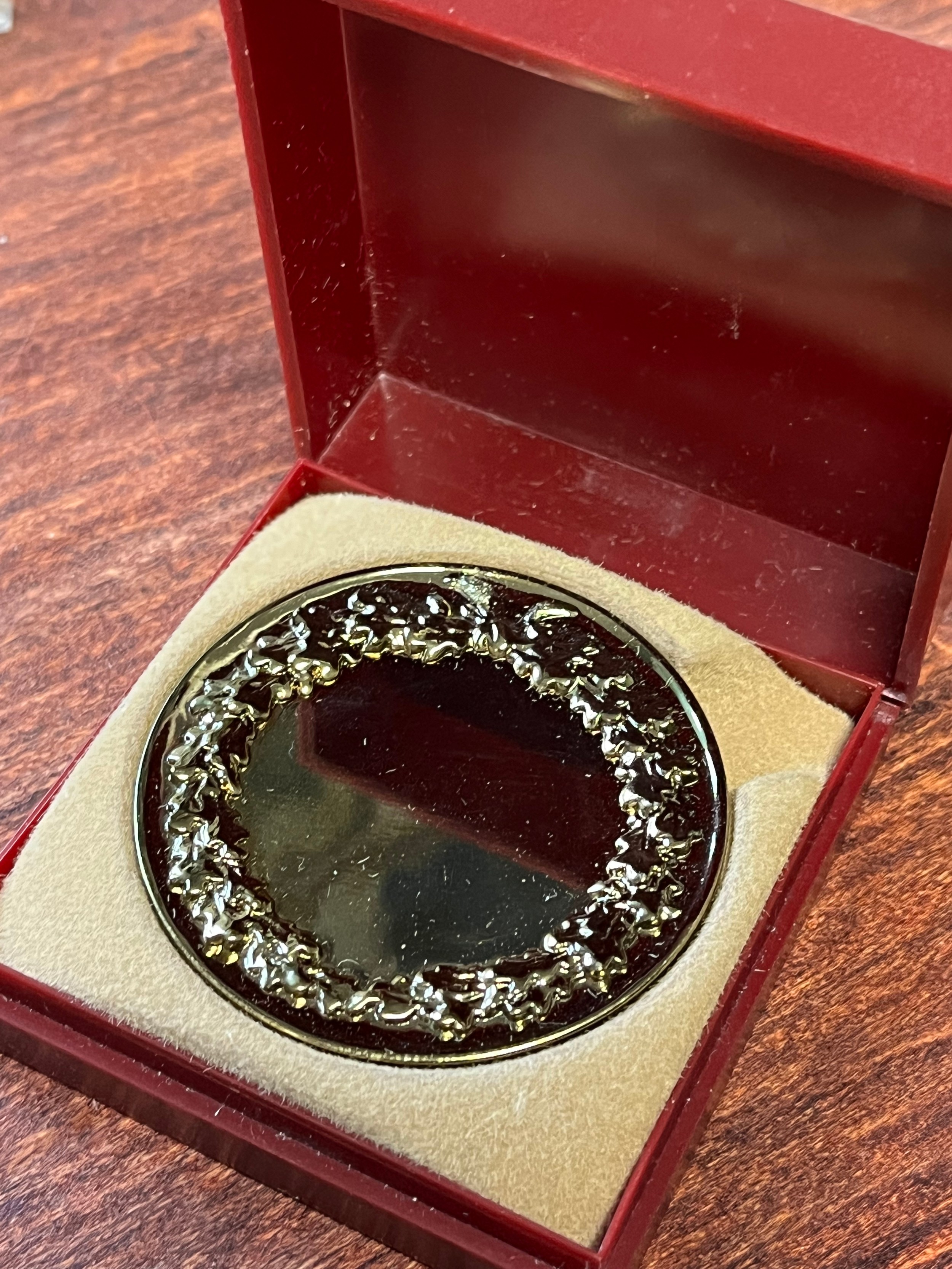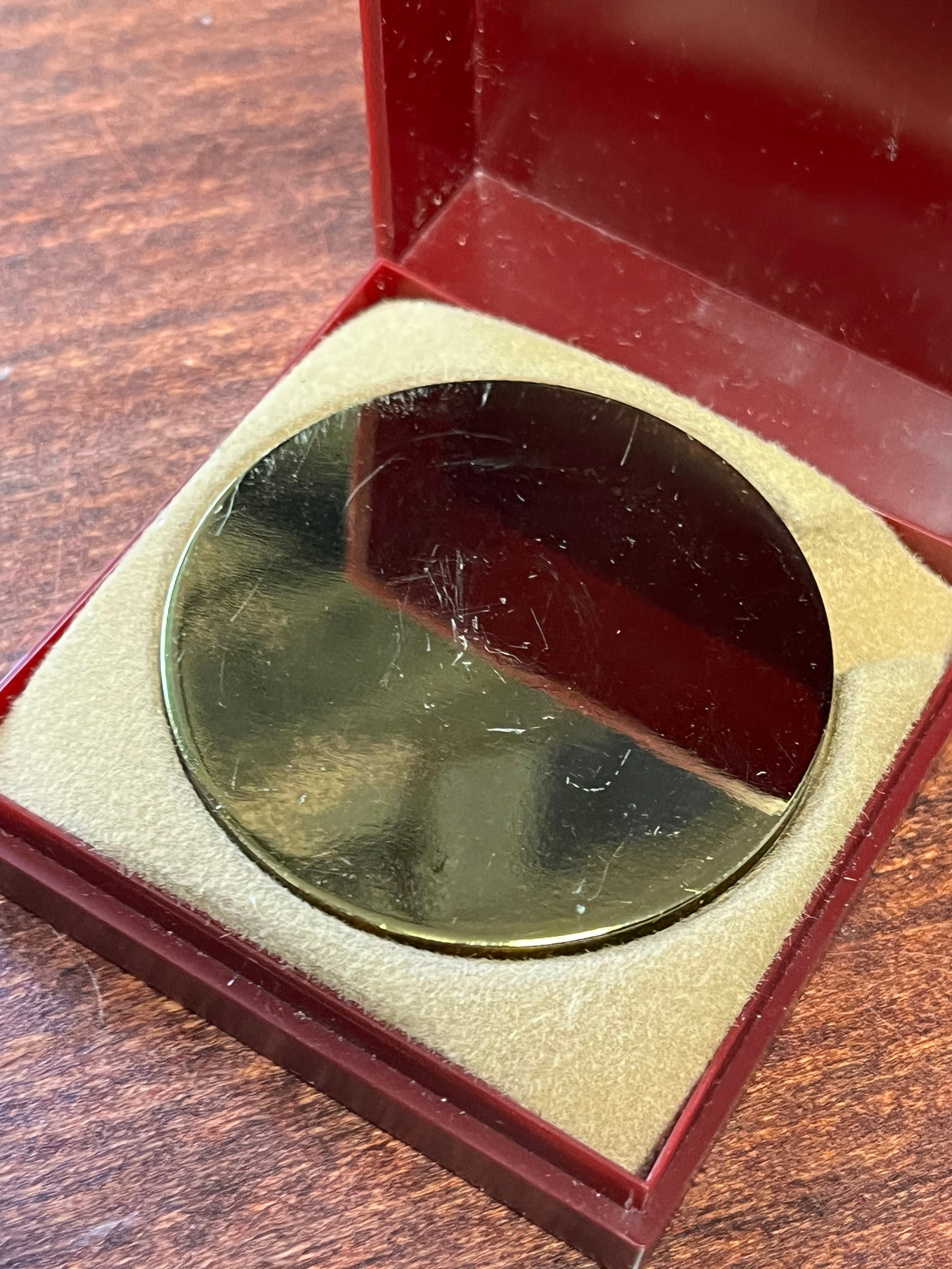 Gold coloured medal blank no inscription, with box,