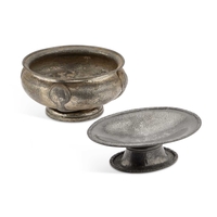 by Thomas Wilkes Barker, London 1811, the bowl now chased, in a fitted case; together with a silver PORT label, two silver coins and a set of six silver spoons, cased. (5) 5.2 troy ounces gross