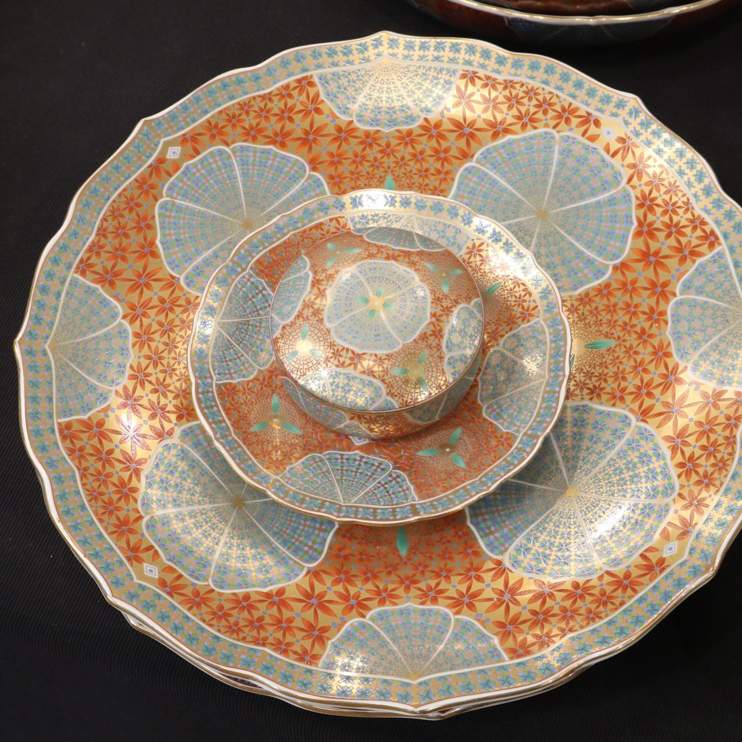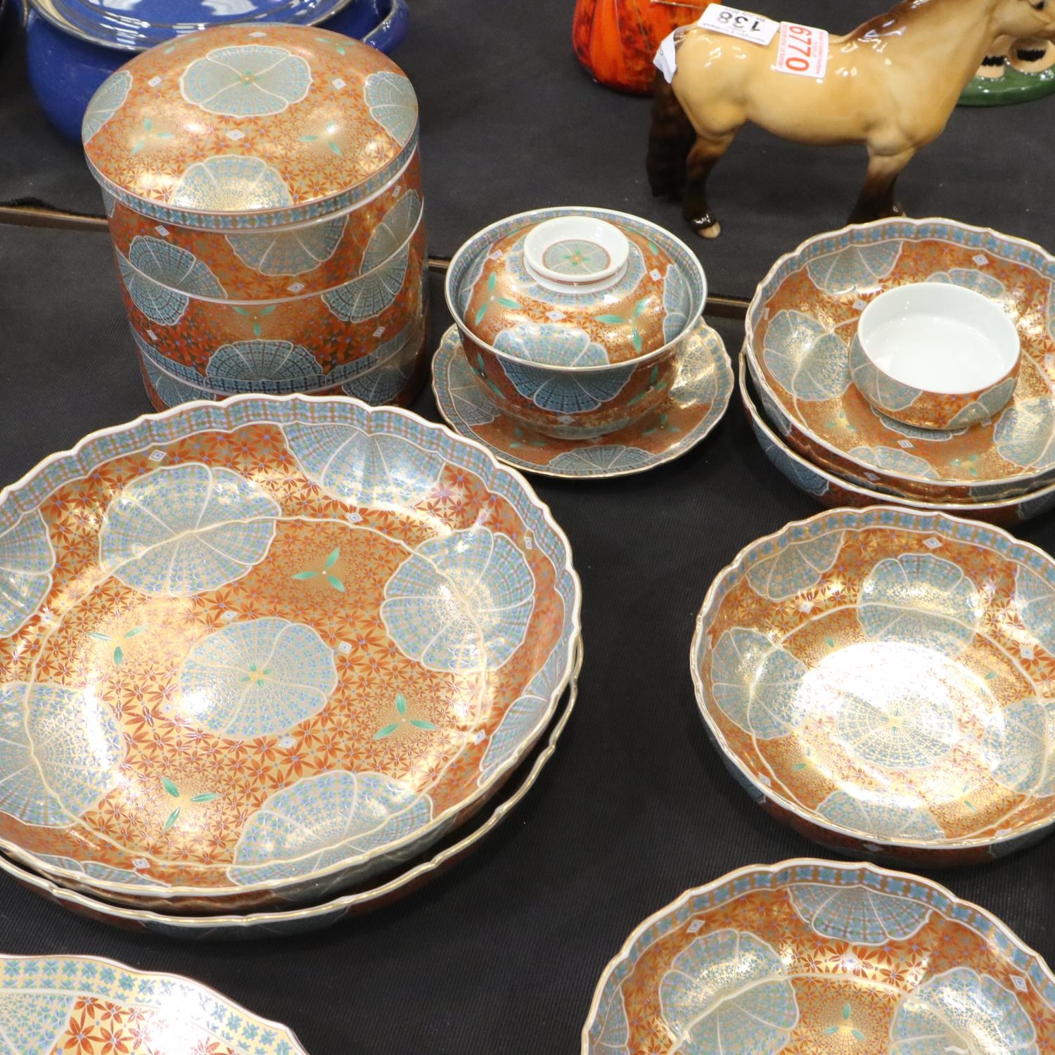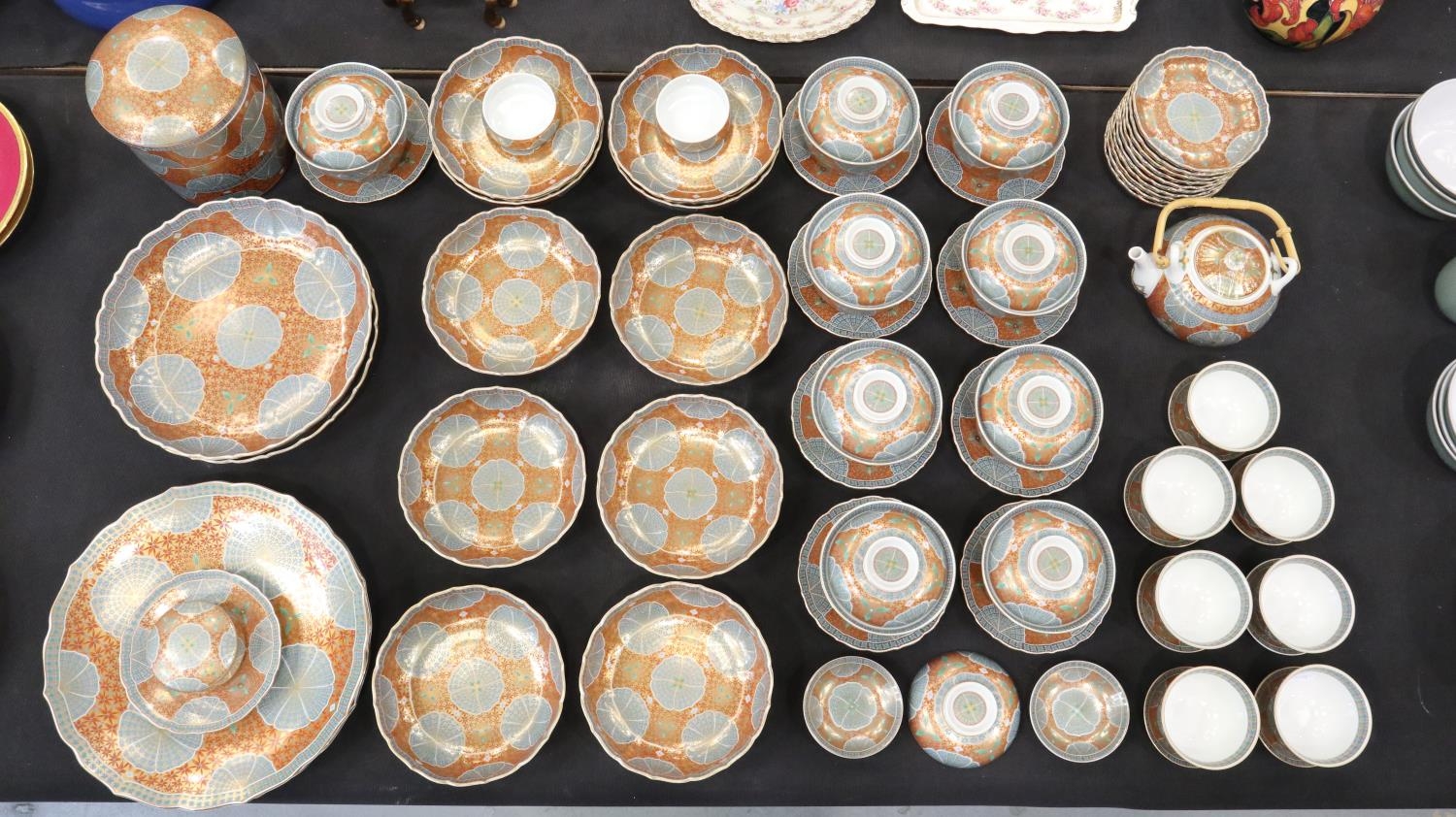 Extensive Maebata Kinsai Japanese dinner and tea service of sixty pieces in the Flower Crest pattern. Not available for in-house P&P
