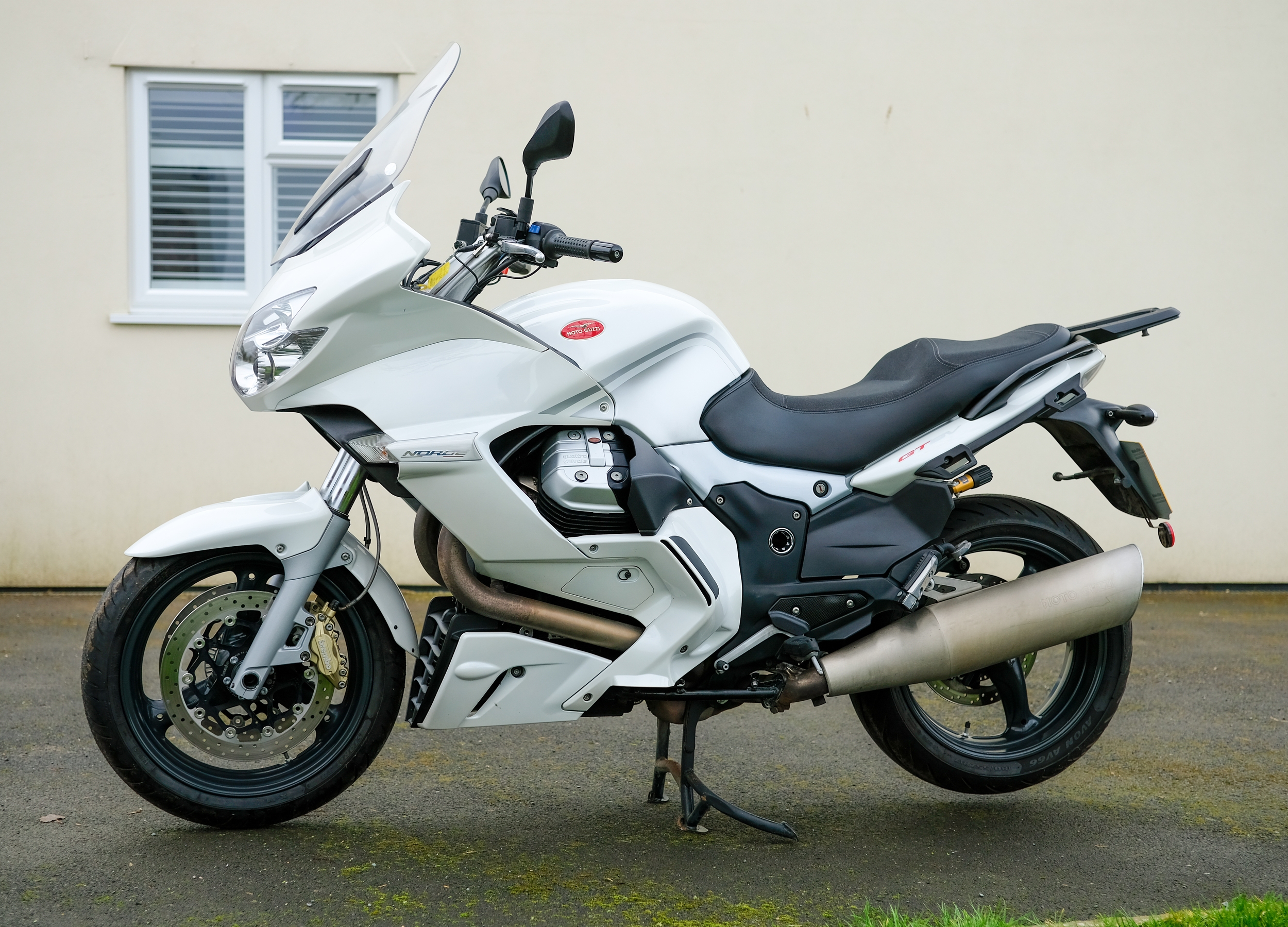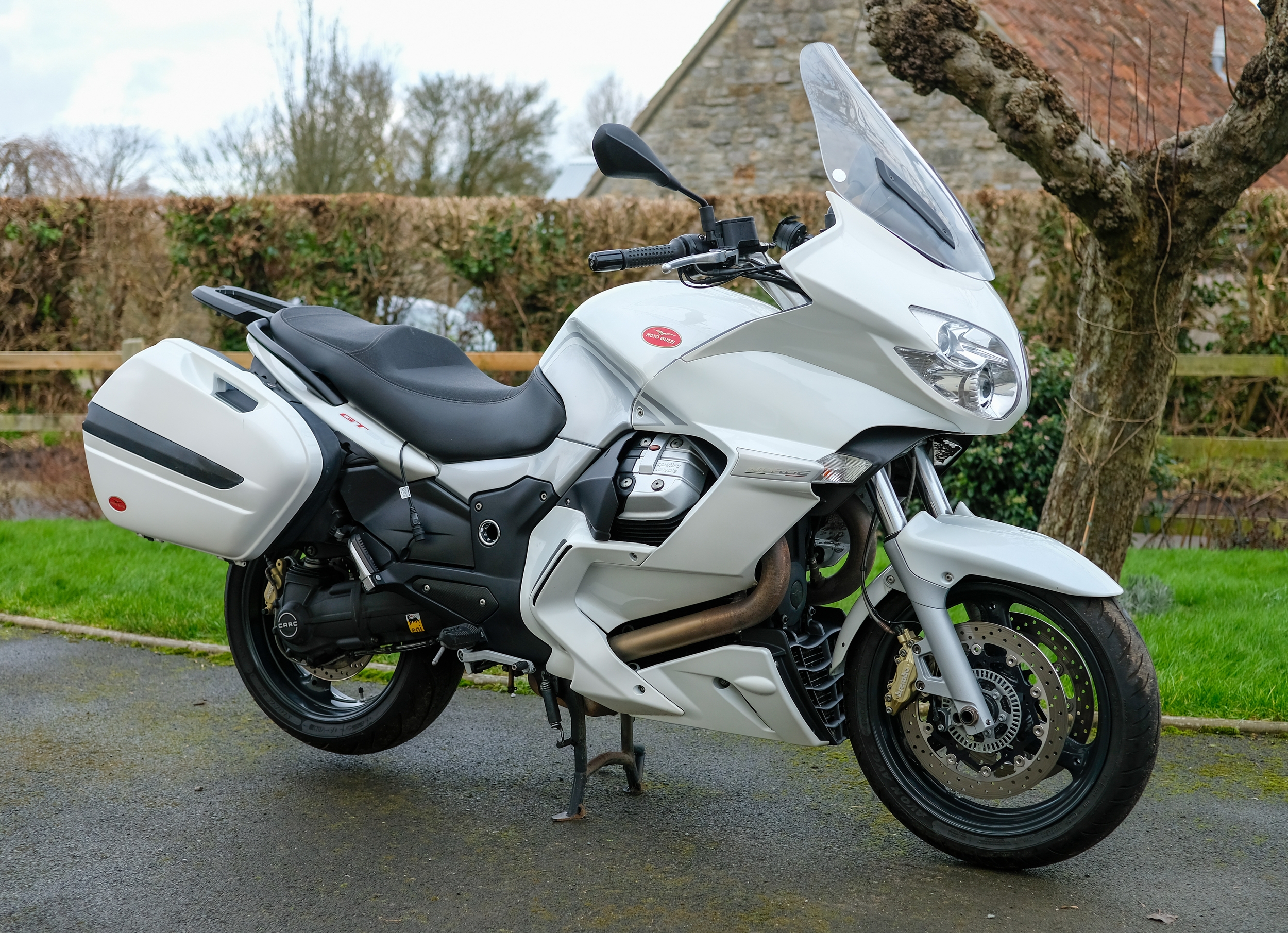 The 2014 Moto Guzzi Norge 1200 GT 8V is a premium sport-touring motorcycle that blends Italian elegance with long-distance capability. Powered by a 1,151cc transverse V-twin engine, it delivers smooth, effortless torque through its refined 8-valve configuration, with the desirable roller cam modification already fitted. The shaft-drive system ensures reliability and low maintenance, making it an ideal choice for touring.