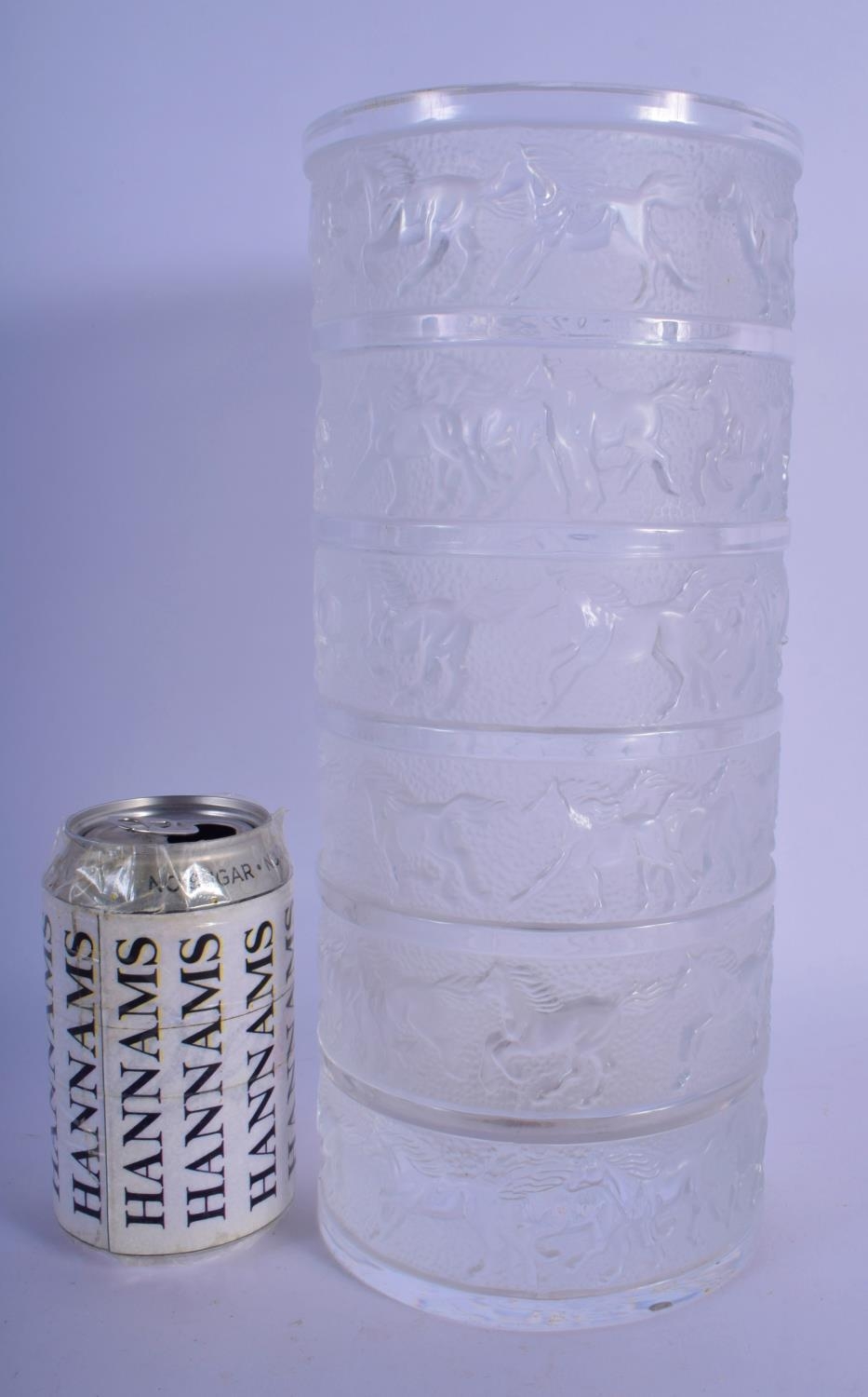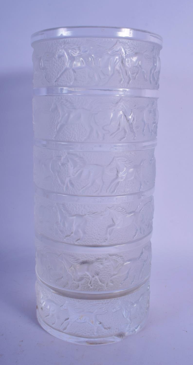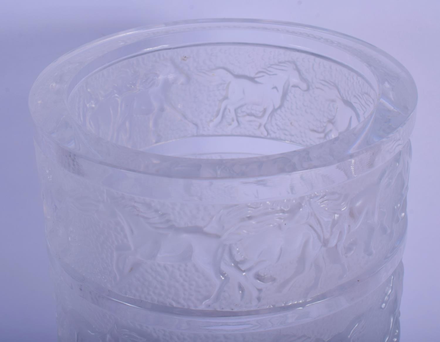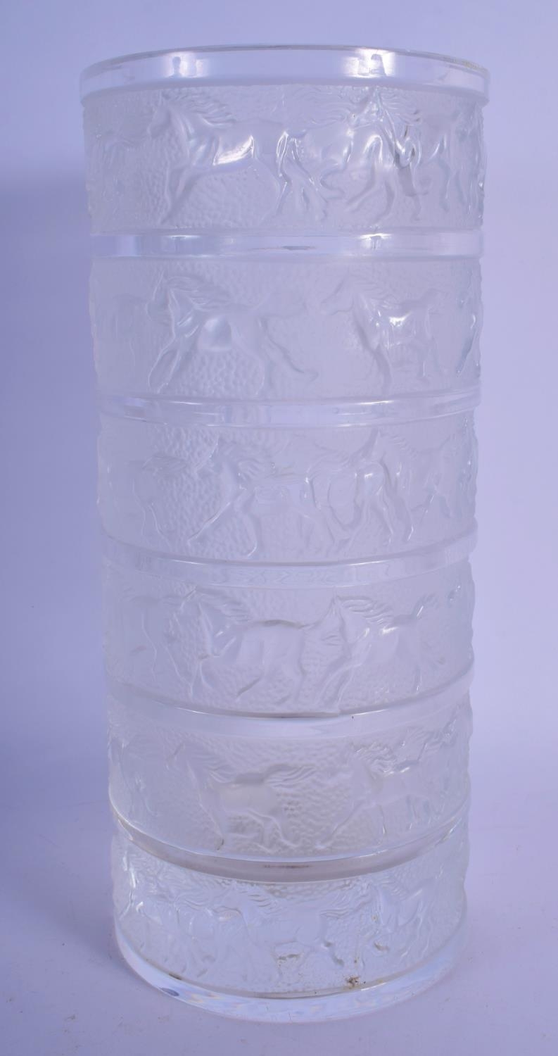 A RARE FRENCH SEVRES CRYSTAL GLASS VASE decorated with bands of horses. 29 cm high.