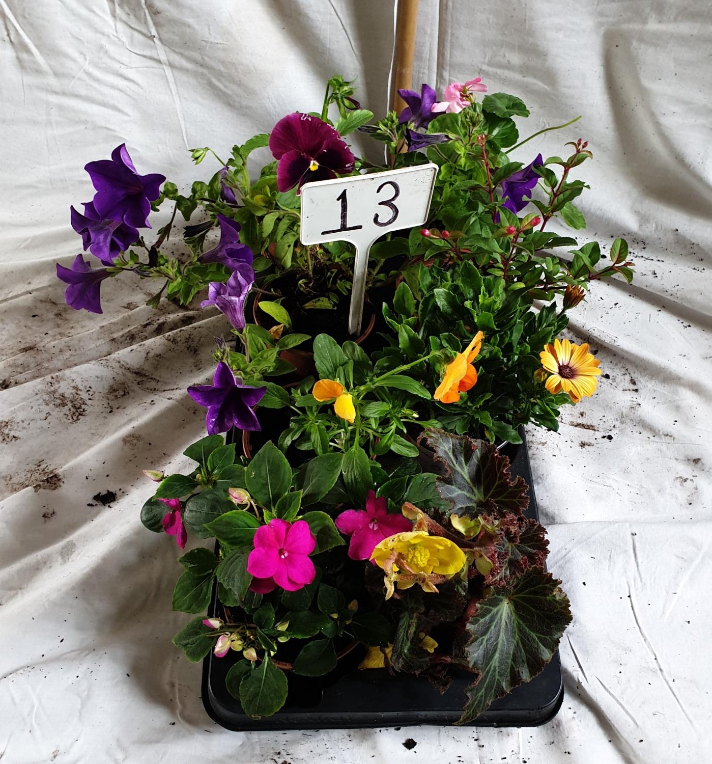 Eight mixed pot plants, including Bizzie, Non Stops, Pansy, Fuchsia & African daisy. This is not available for in-house P&P.