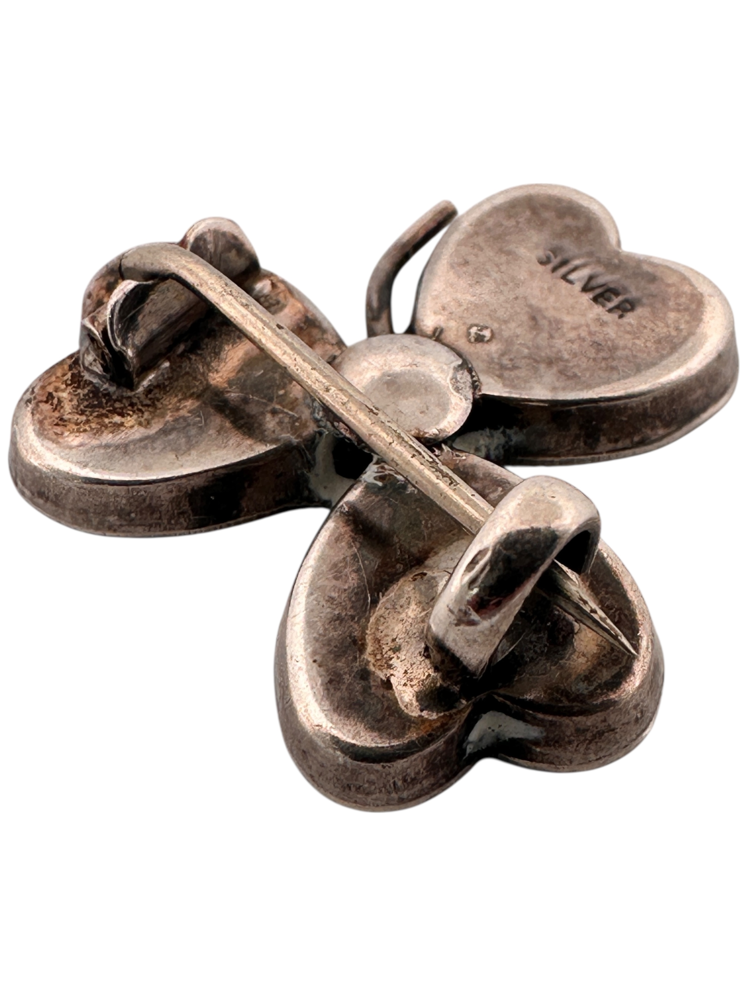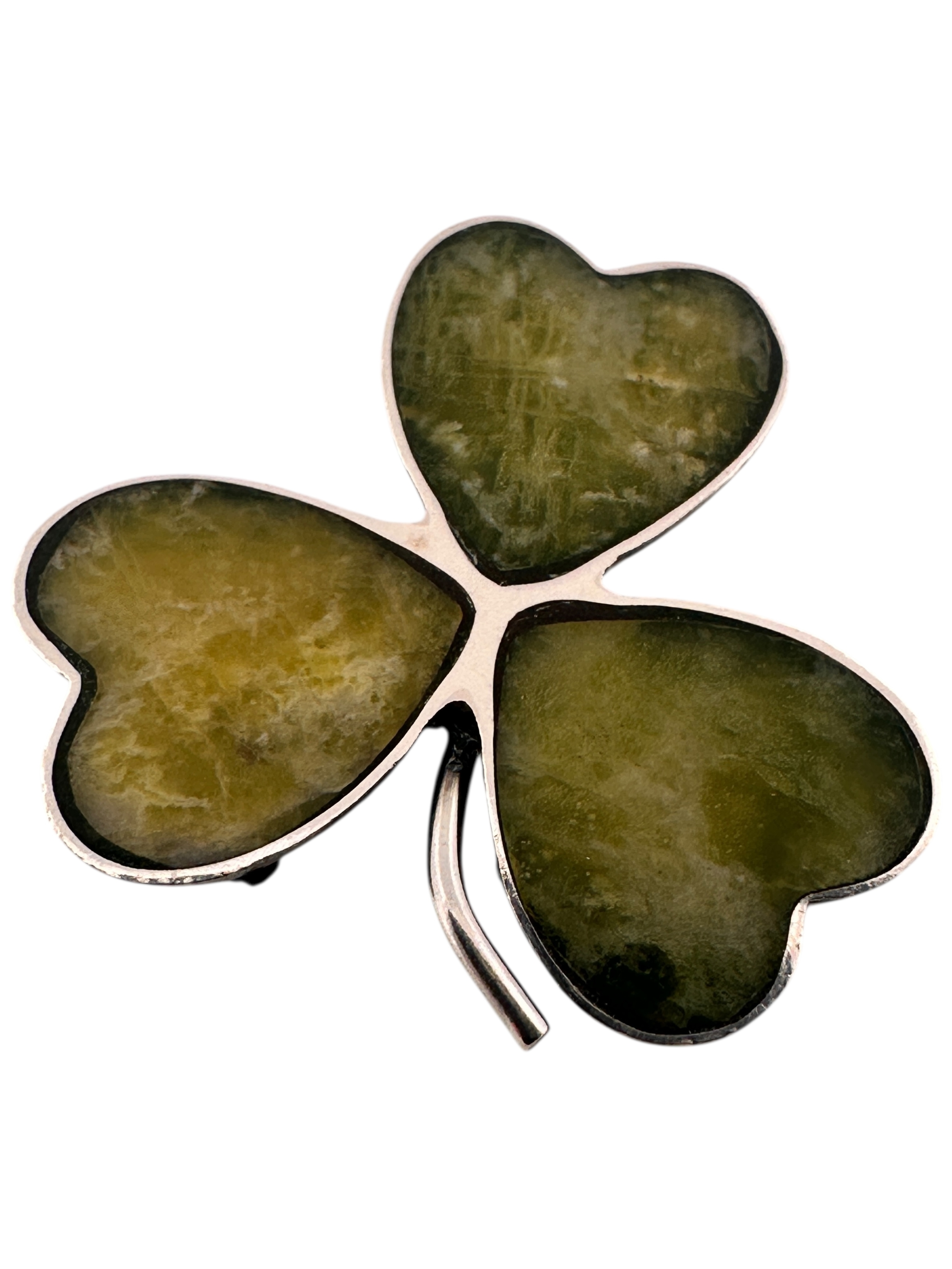 Antique Connemara Marble & Silver Clover Brooch