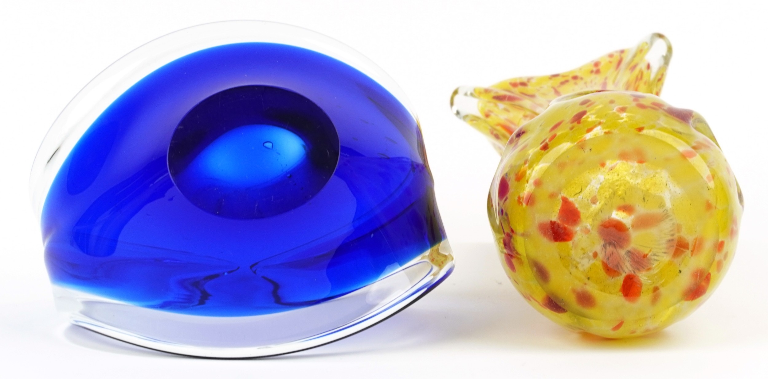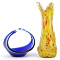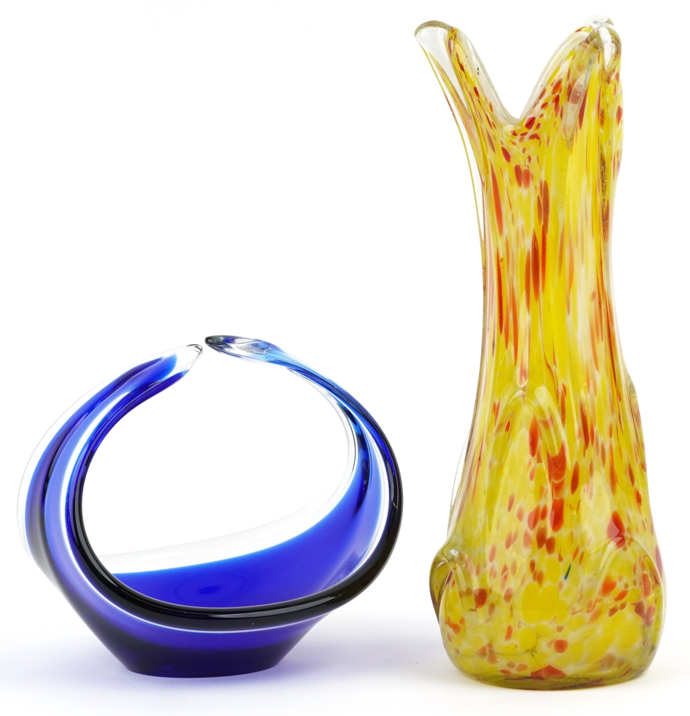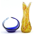 A mid 20th century art glass vase, 33cm high together with a similar blue glass centrepiece bowl, 17cm high.