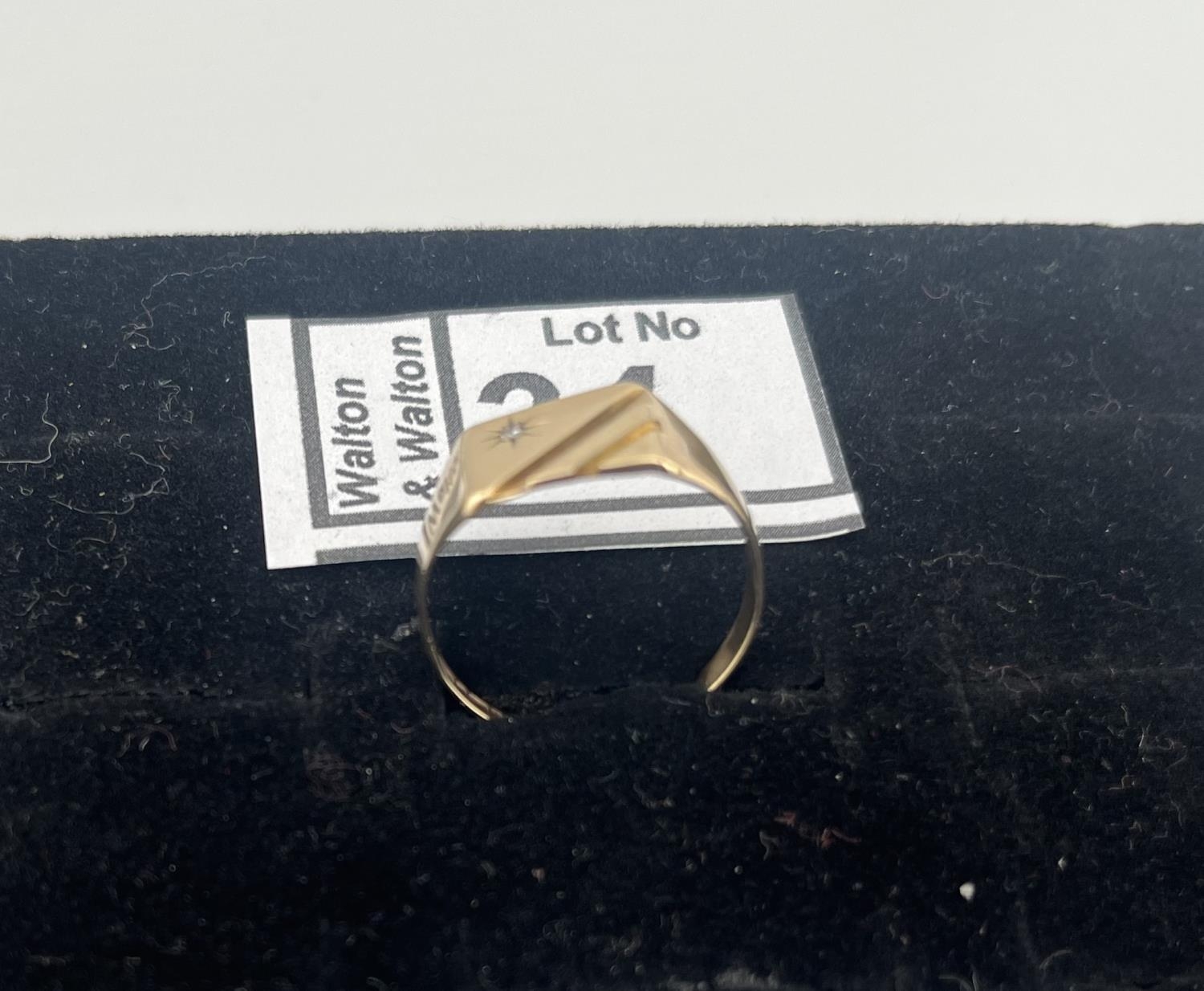 9ct Gold signet ring featuring diamond, size S 2.6g - Only 10% buyer's premium