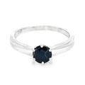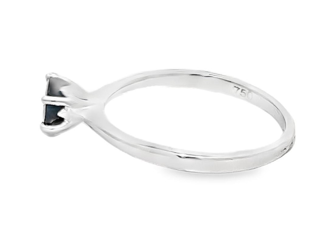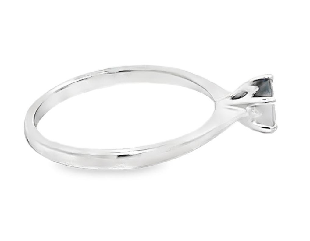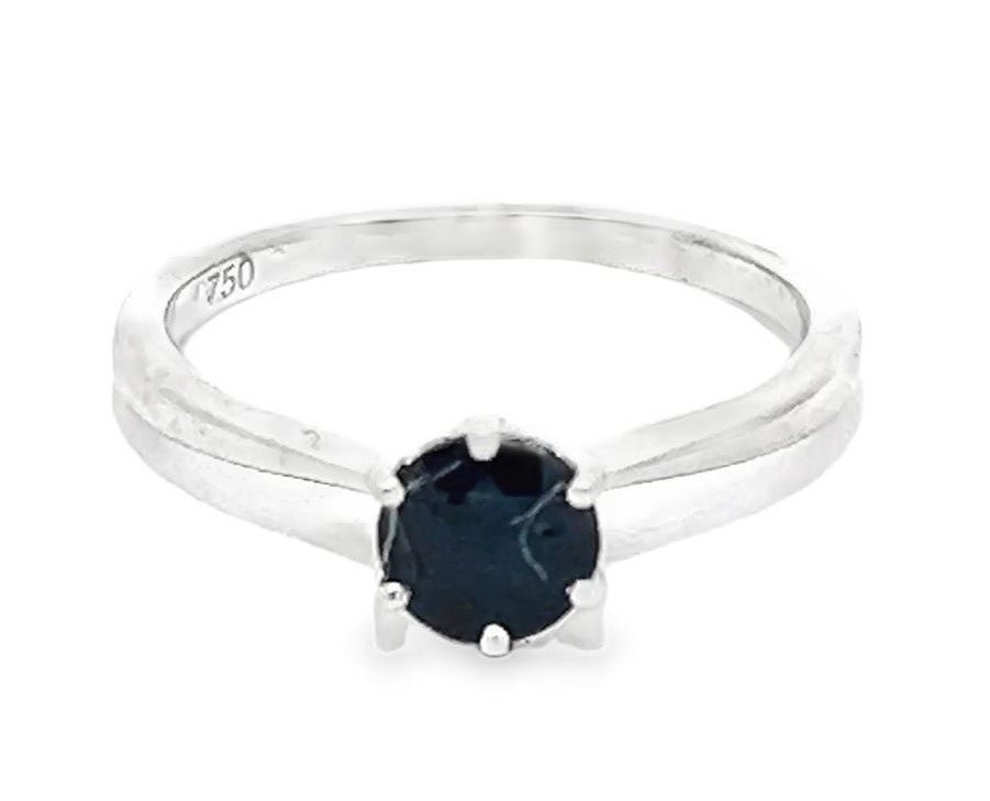 An 18ct white gold and sapphire ring, size M. Sapphire 5.5mm diameter. Small chip to sapphire on table facet edge. 2.44g