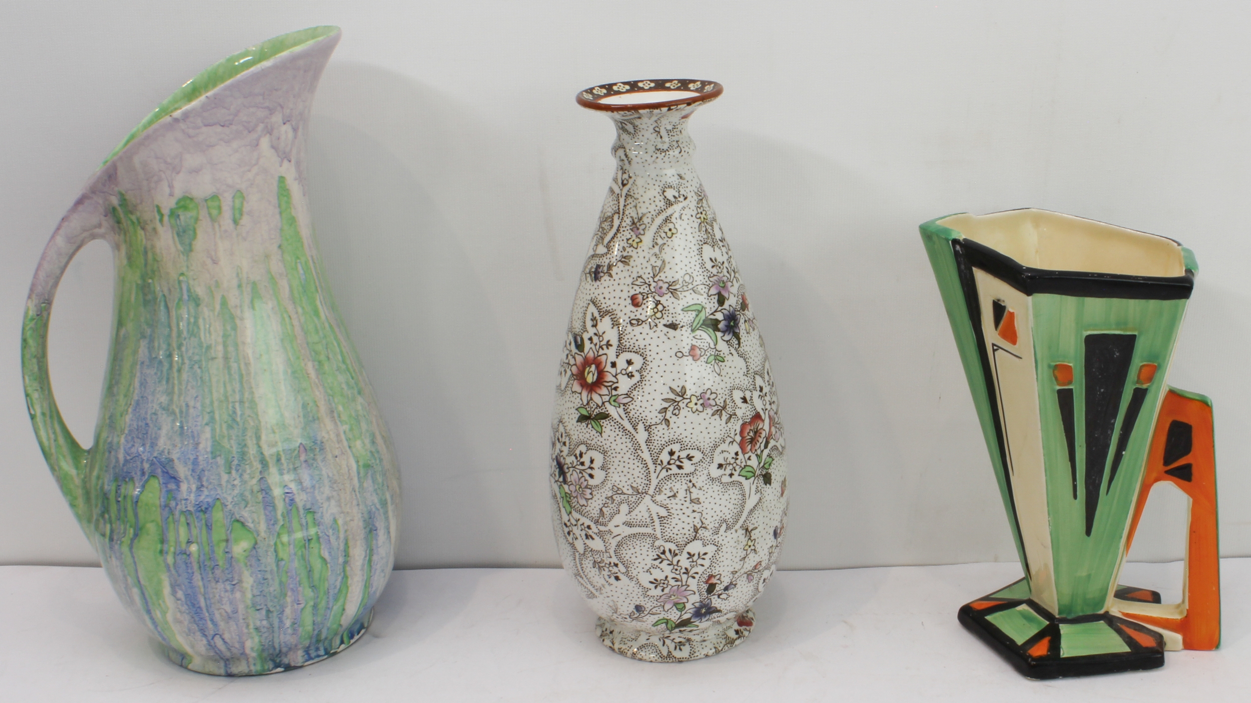 a Myott Son & Co pottery jug in High Art Deco style (18 cm high);