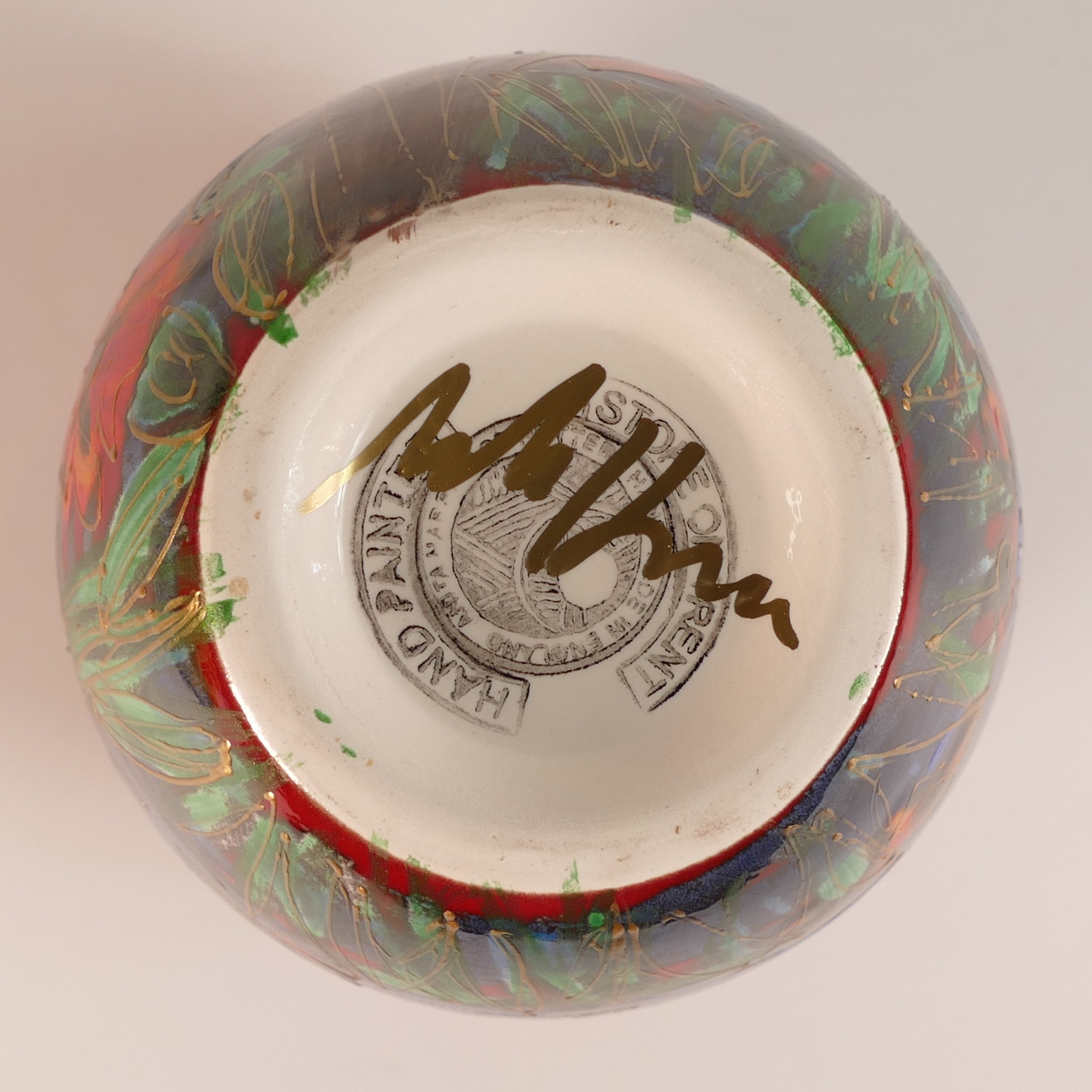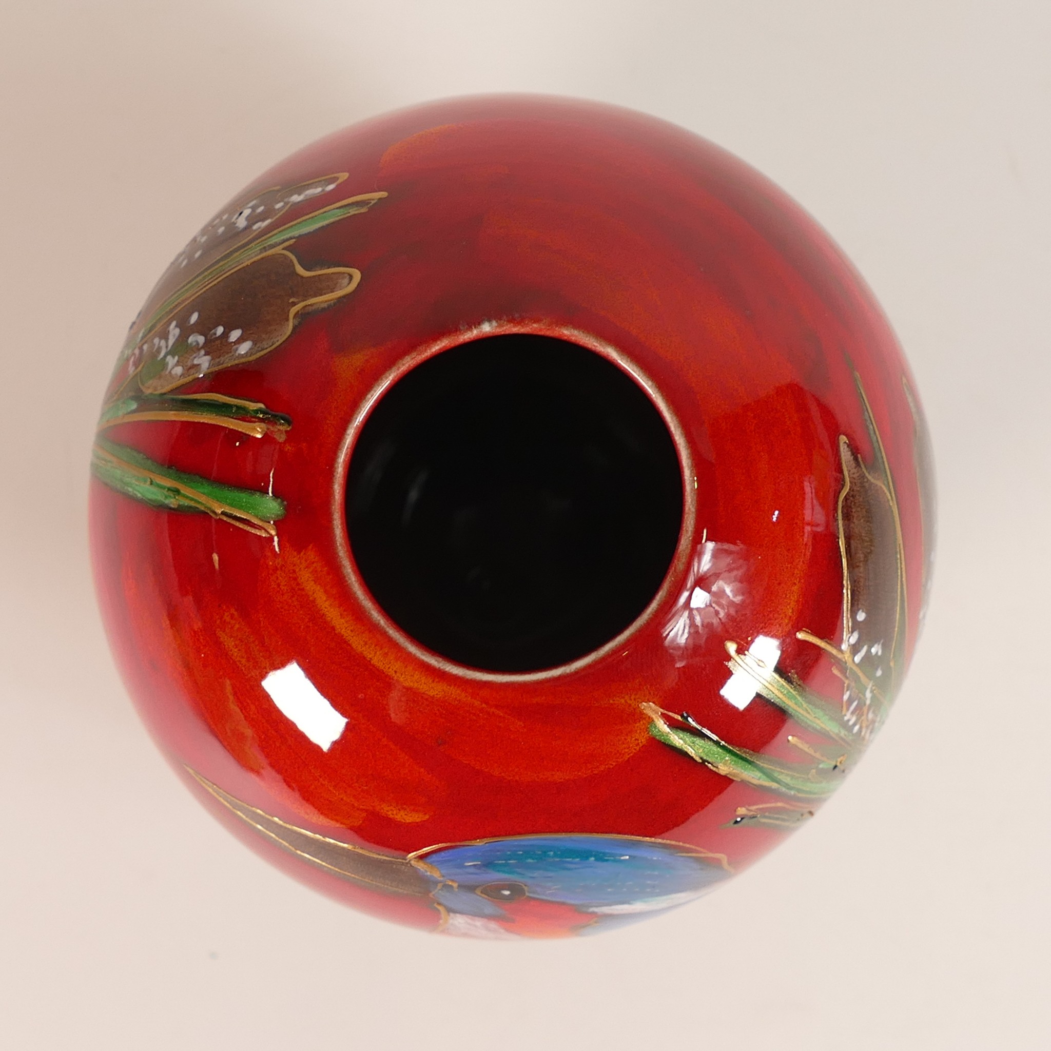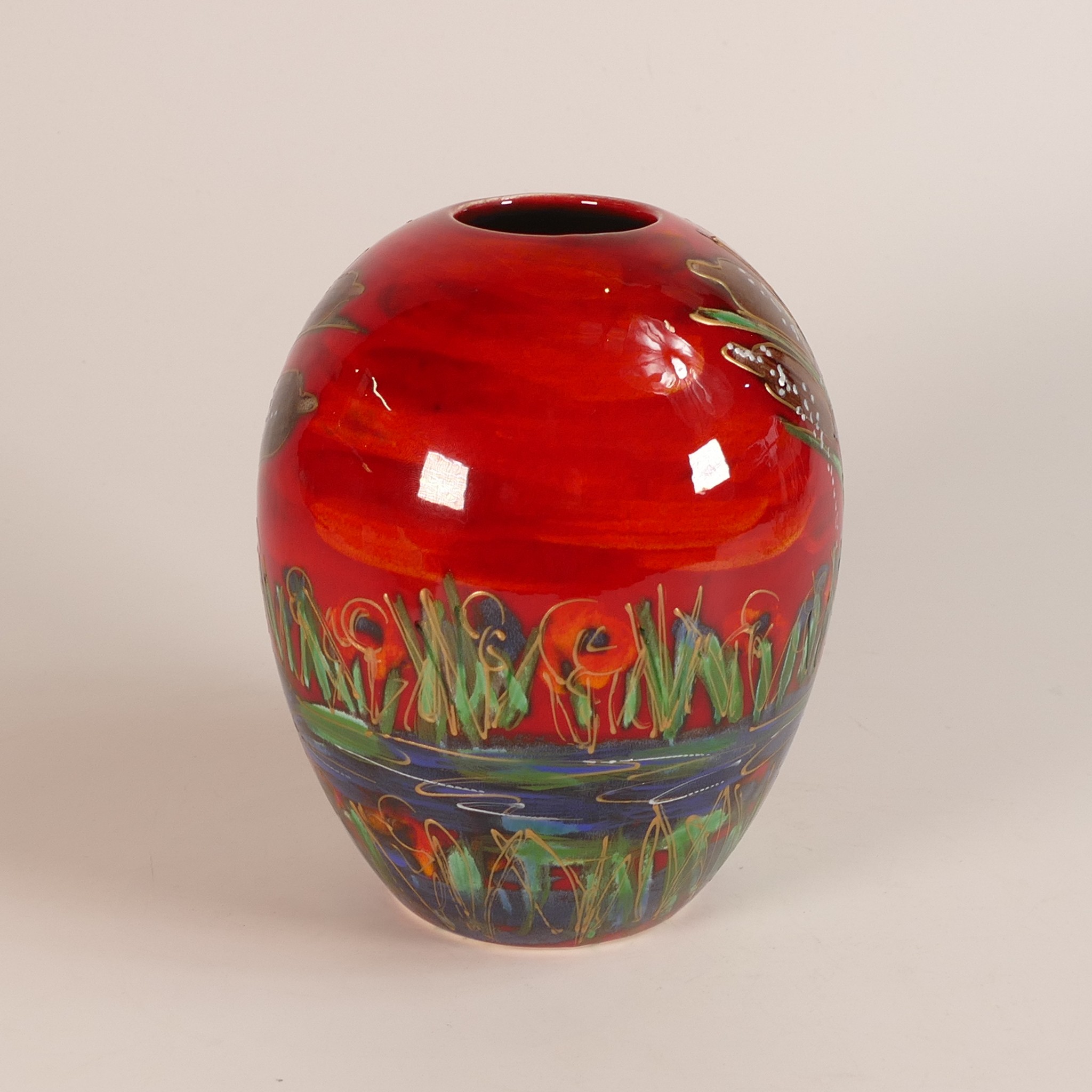 Anita Harris Kingfisher Delta vase H. 15cm gold signed.