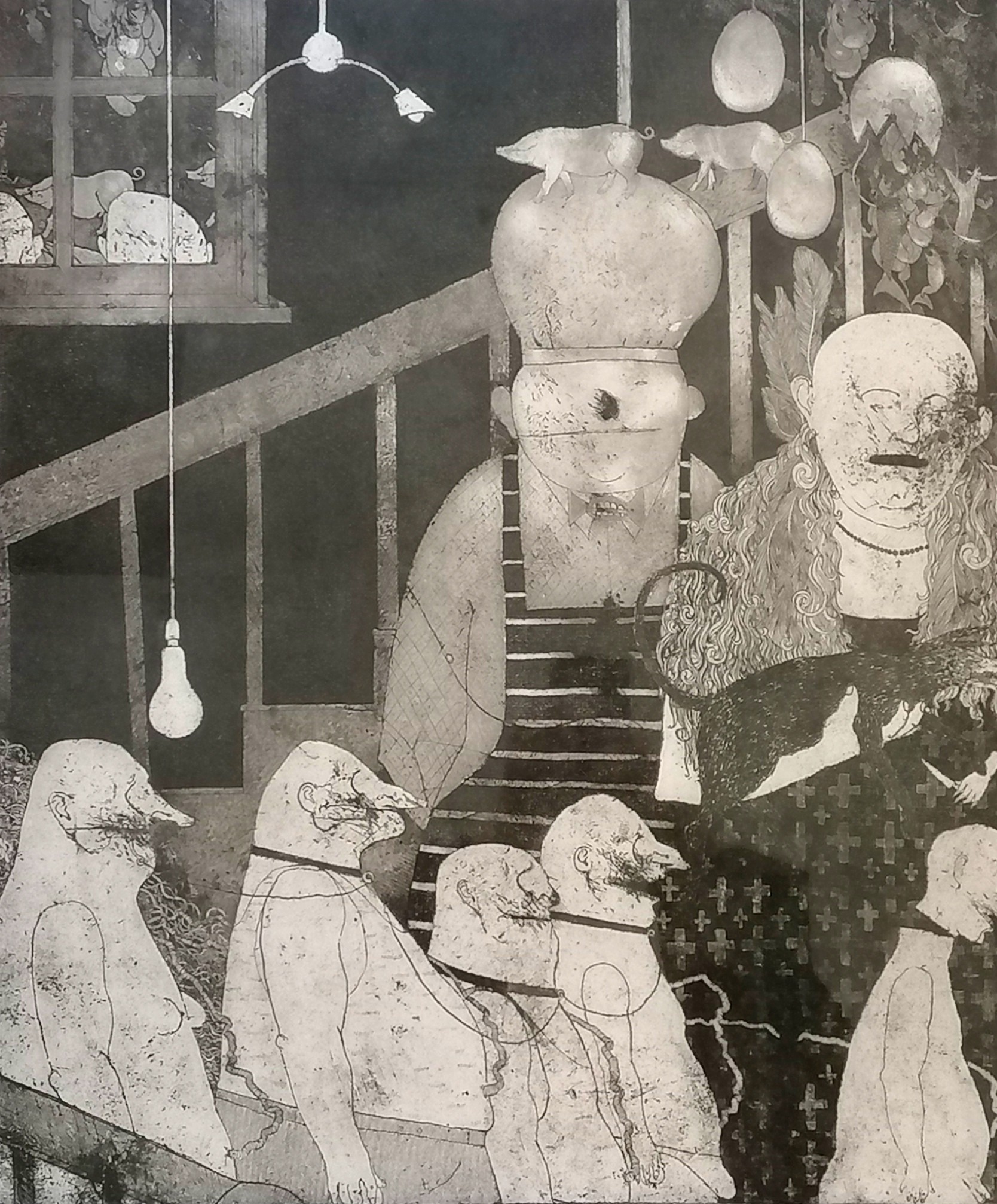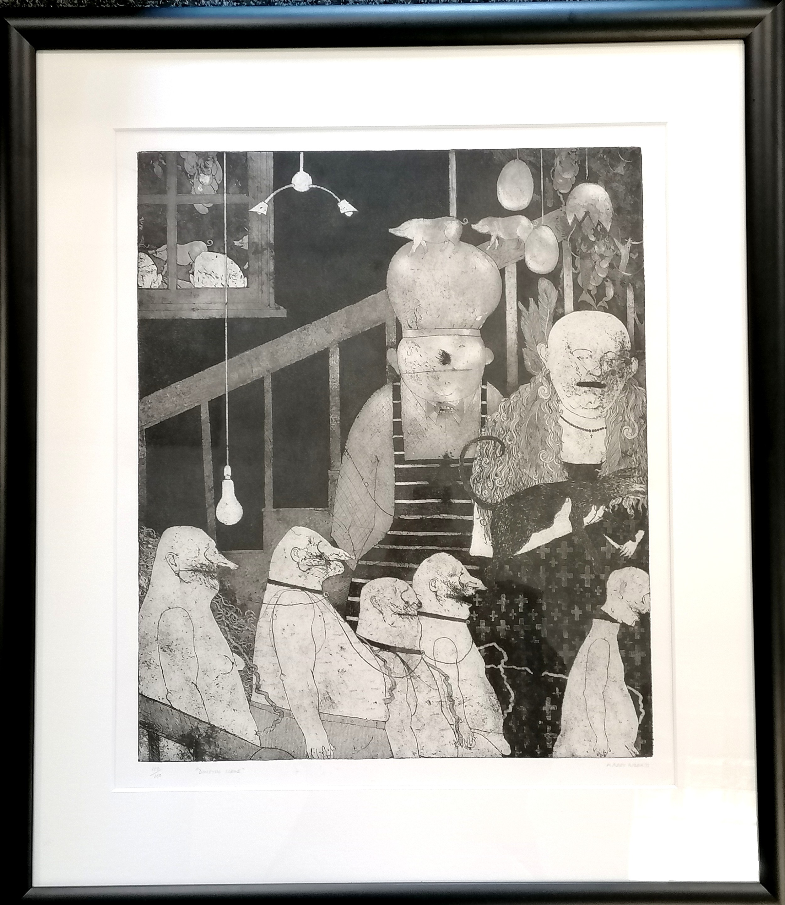 Marcus Rees Roberts (b.1951) signed etching 'Domestic Scene' from a ltd ed of 100 (NOTE : #100/100) - frame 87.5cm x 76cm