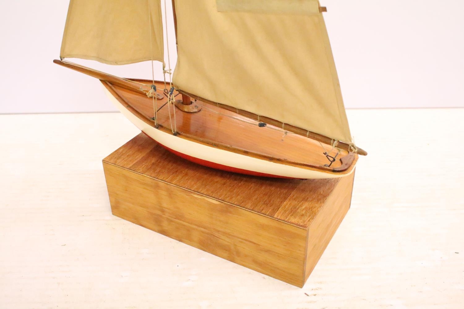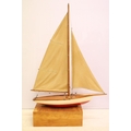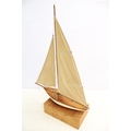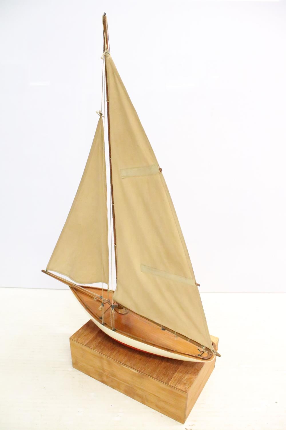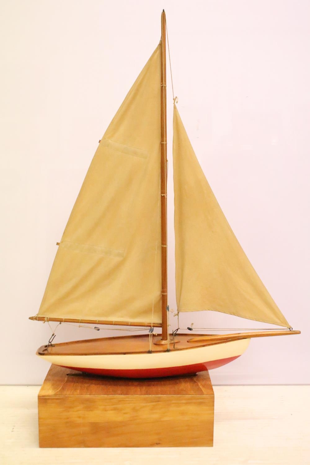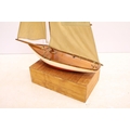Model sailing boat / pond yacht, with fitted wooden stand, 89cm high