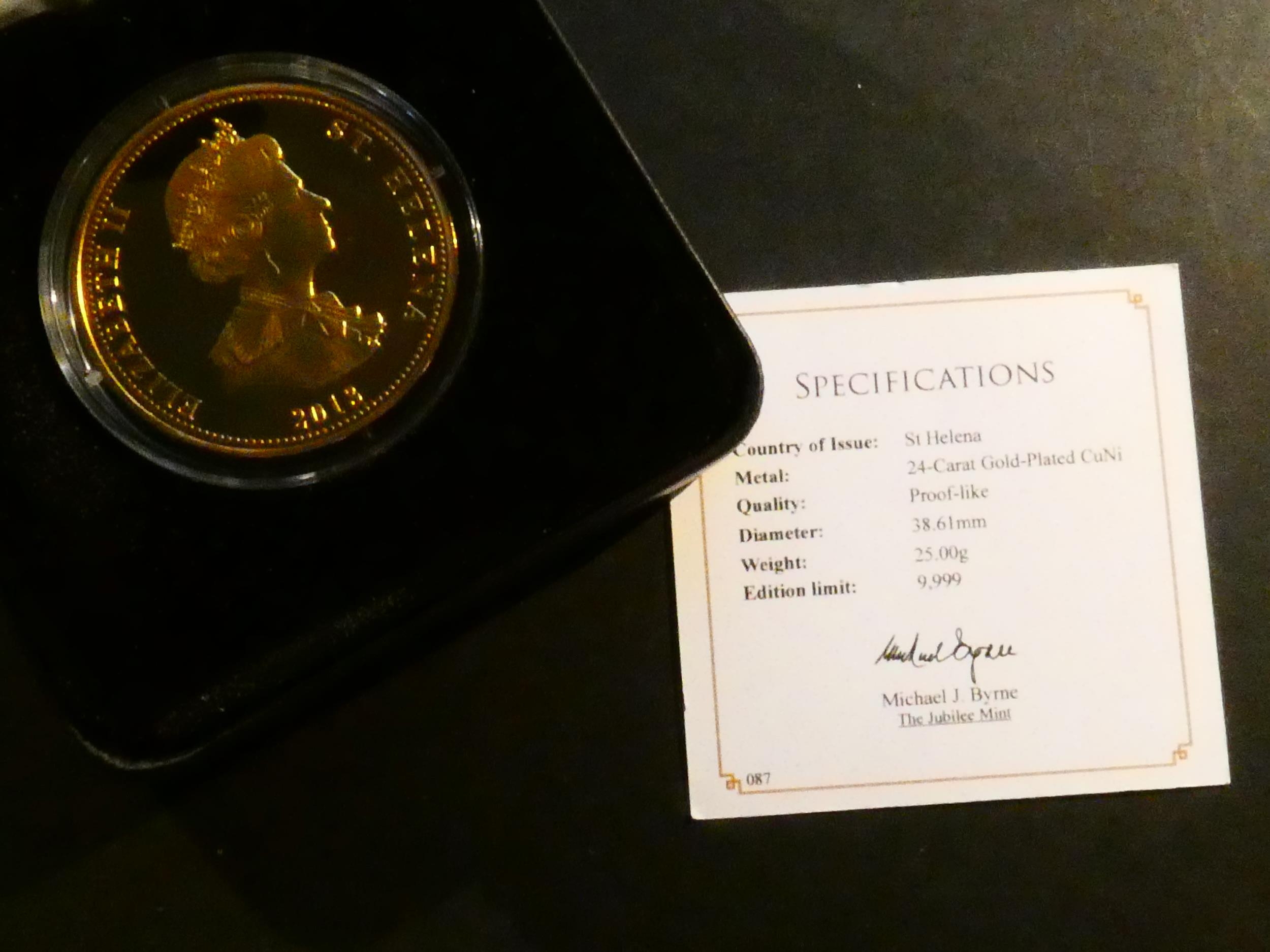 COINS - TRISTAN DA CUNHA. Elizabeth II (1952-202), 25 Pence, 2013, 60th anniversary of coronation, "George and the Dragon", copper gilt Proof-like, cased, FDC