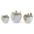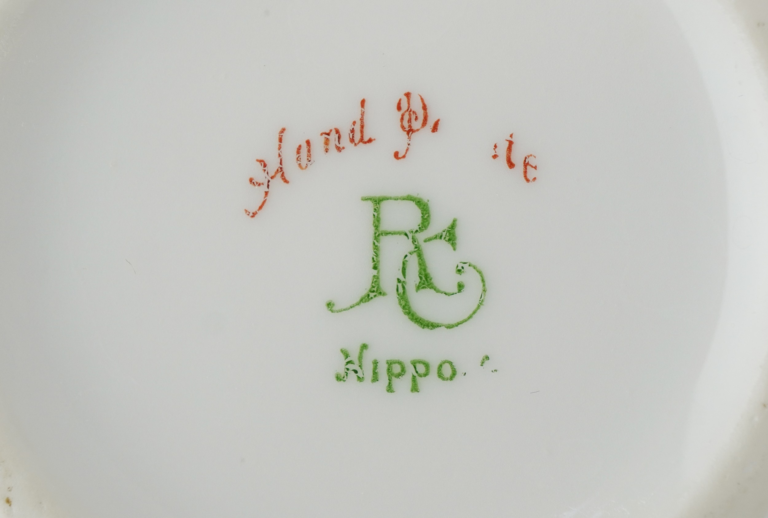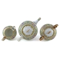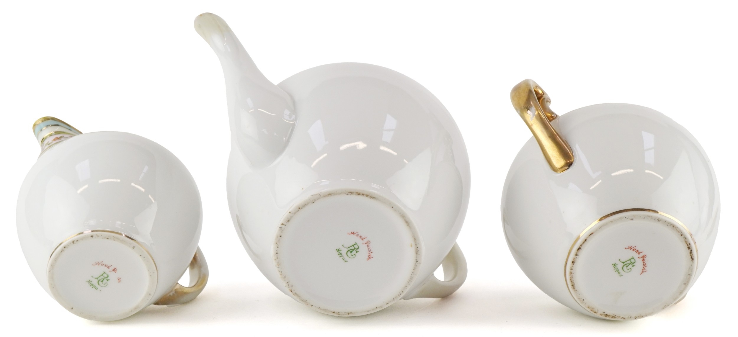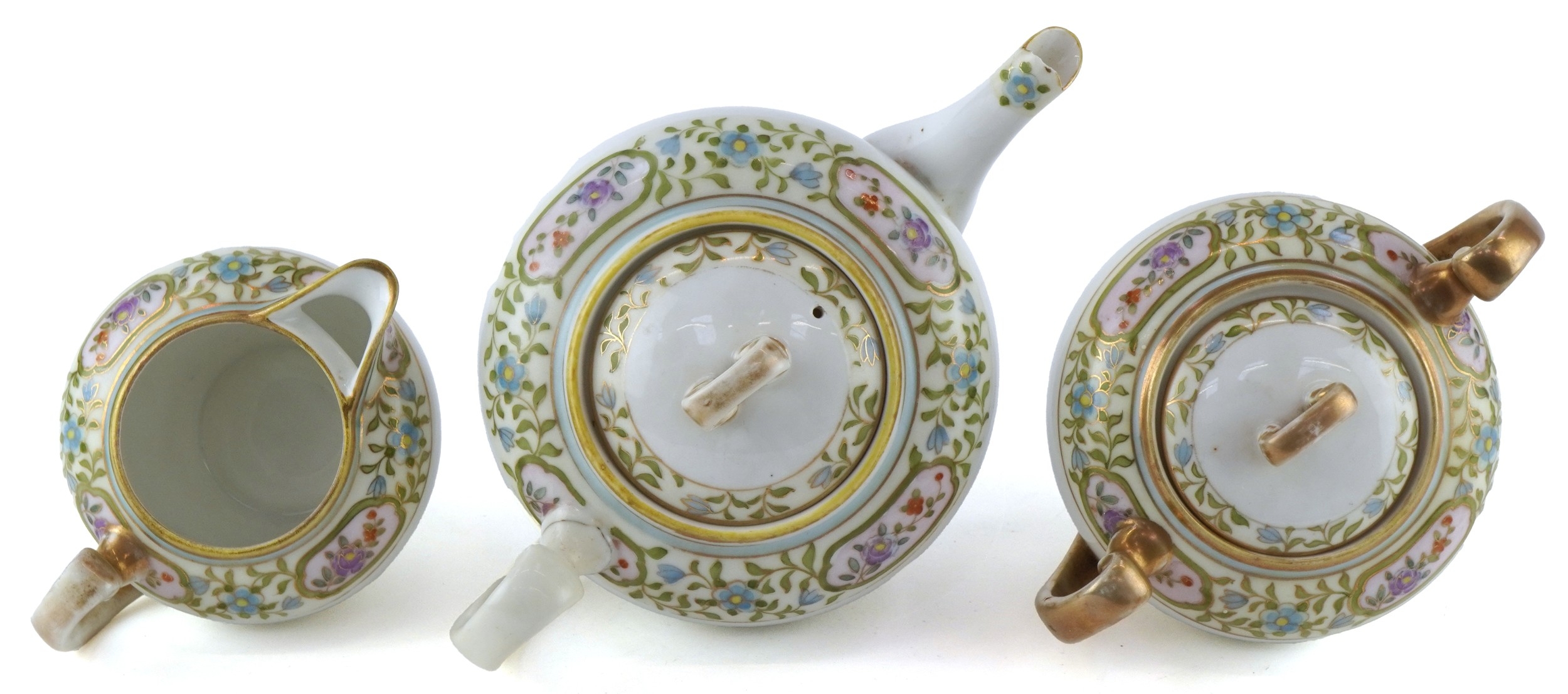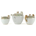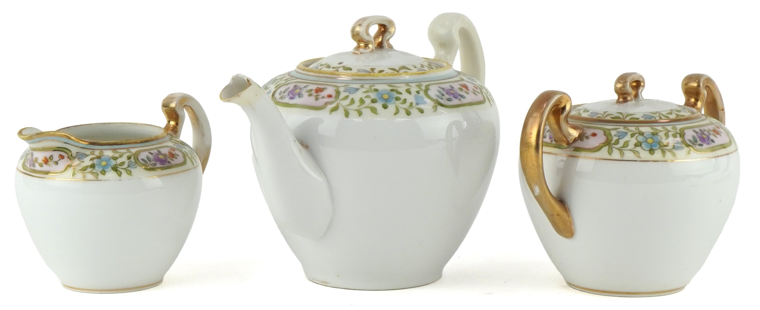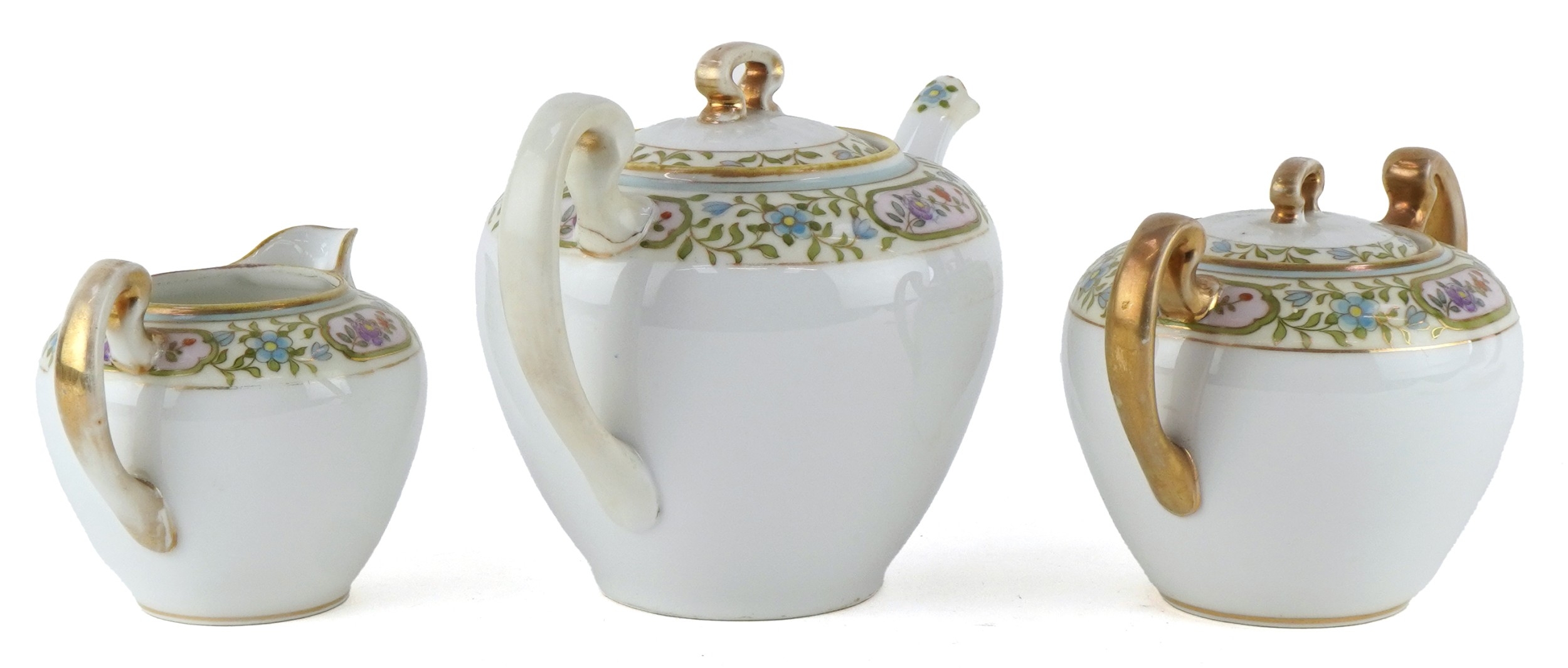 A Japanese Nippon three piece tea service enamelled with flowers, the teapot 21cm in length.