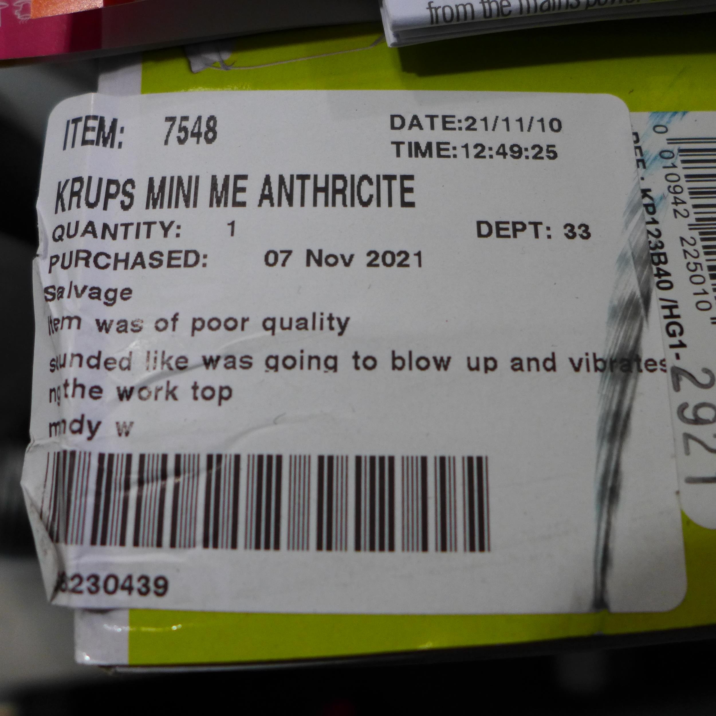 Krups Mini Me Anthricite Coffee Machine(244-800) * This lot...