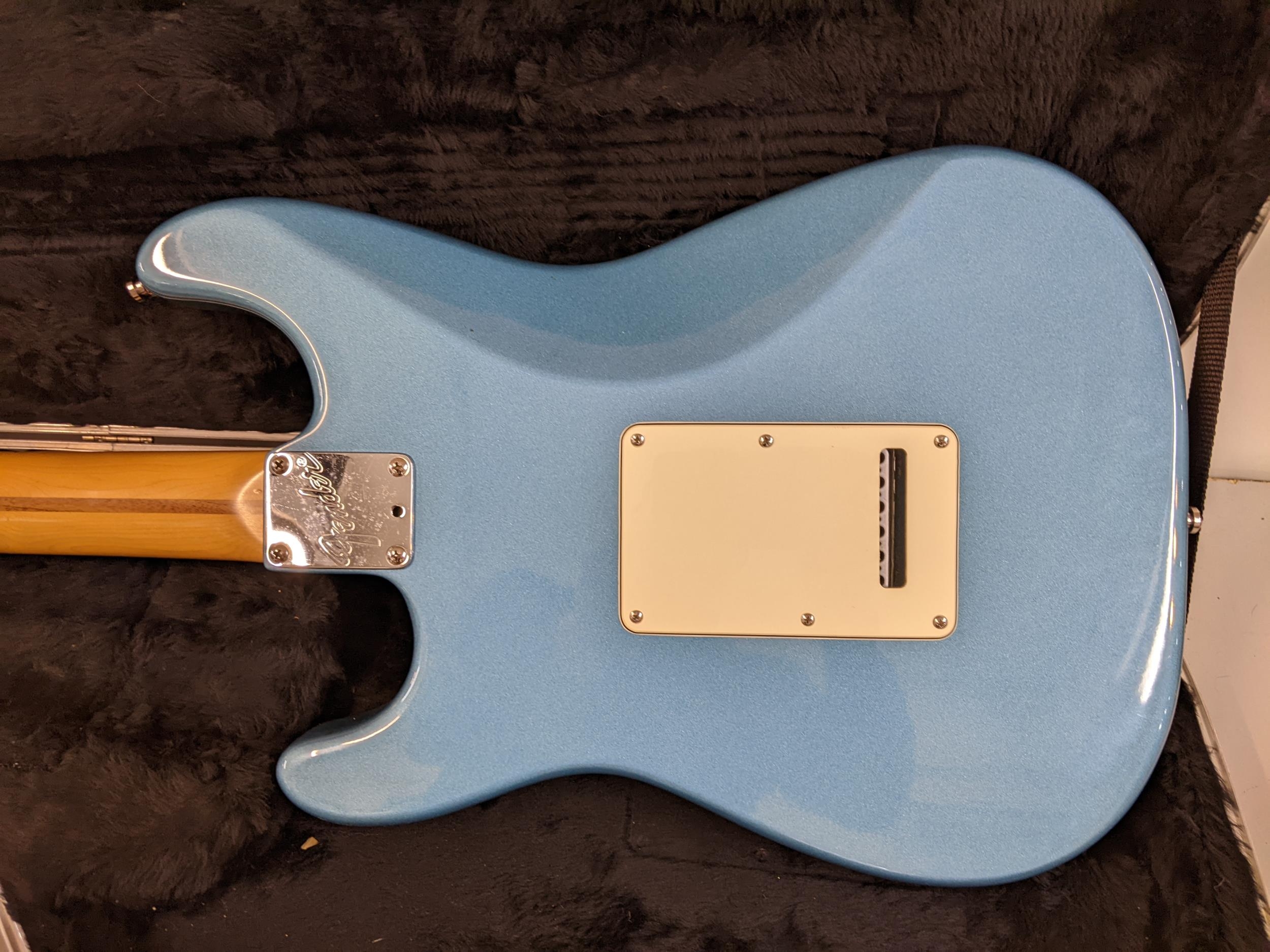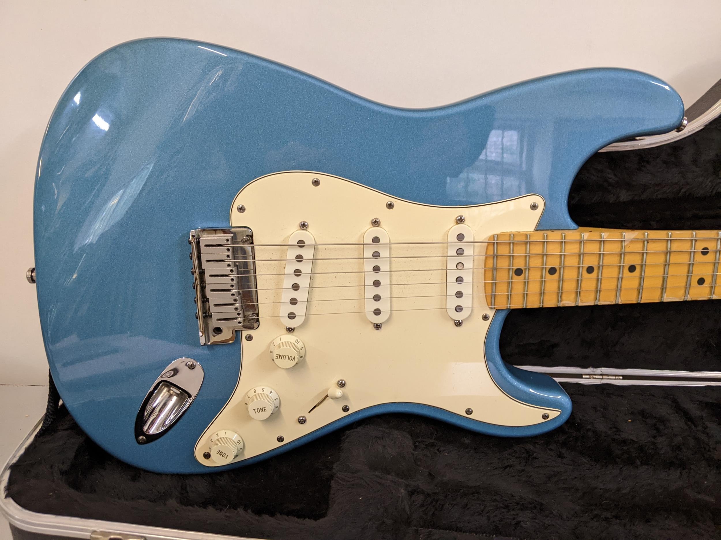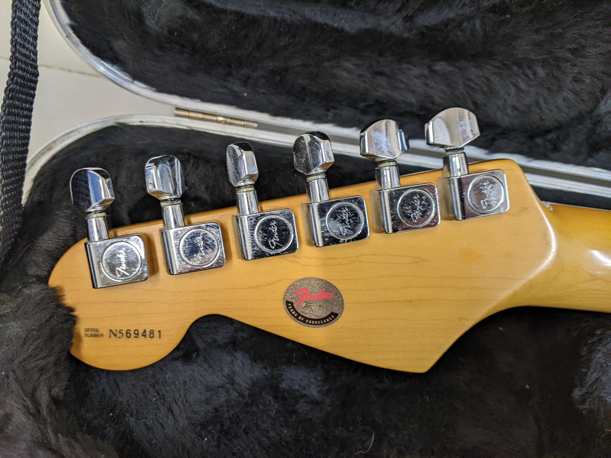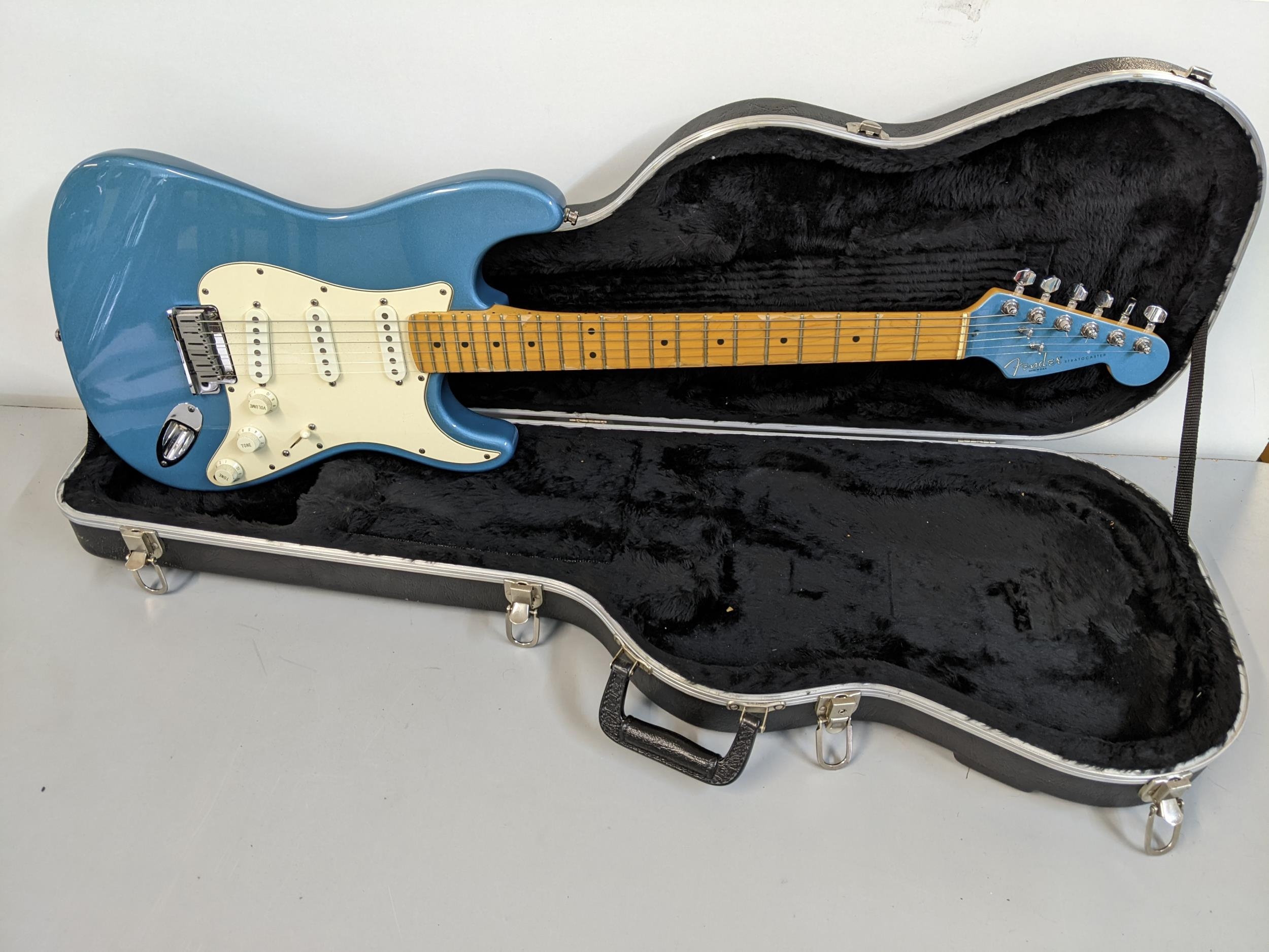 A Fender Stratocaster made in USA serial number N569481, 1995, with a Fender carrying case
