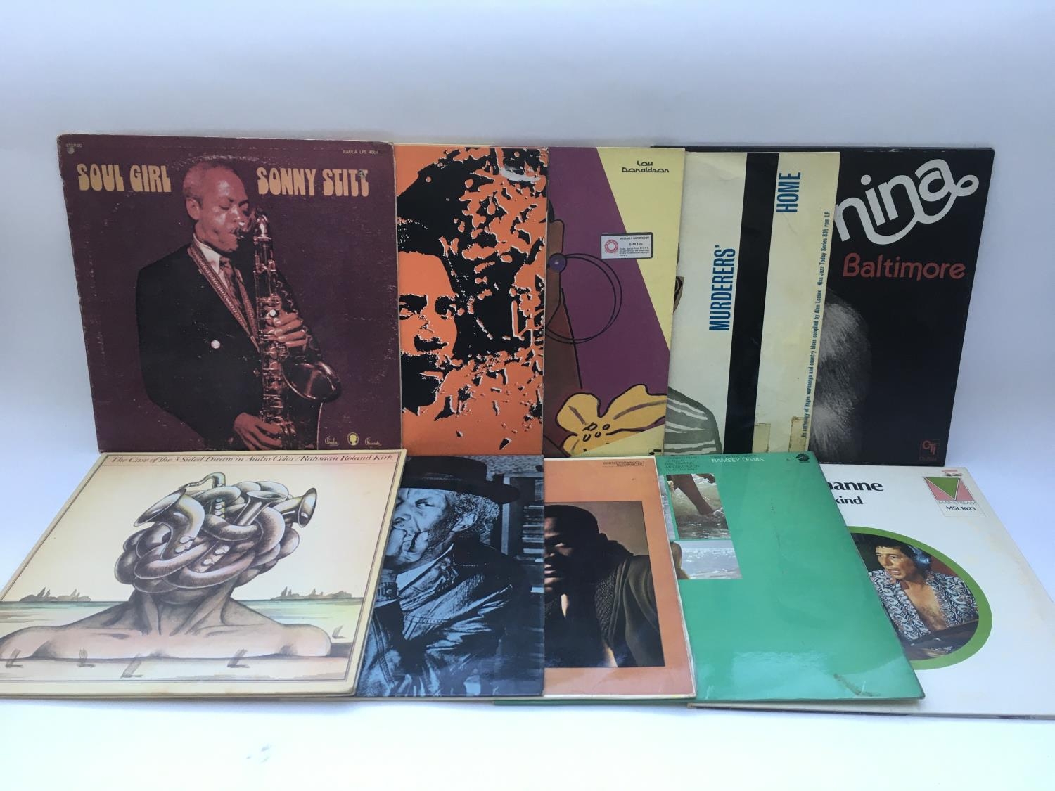 Ten jazz LPs by various artists including Ramsey Lewis, Professor Longhair, Nina Simone and others.