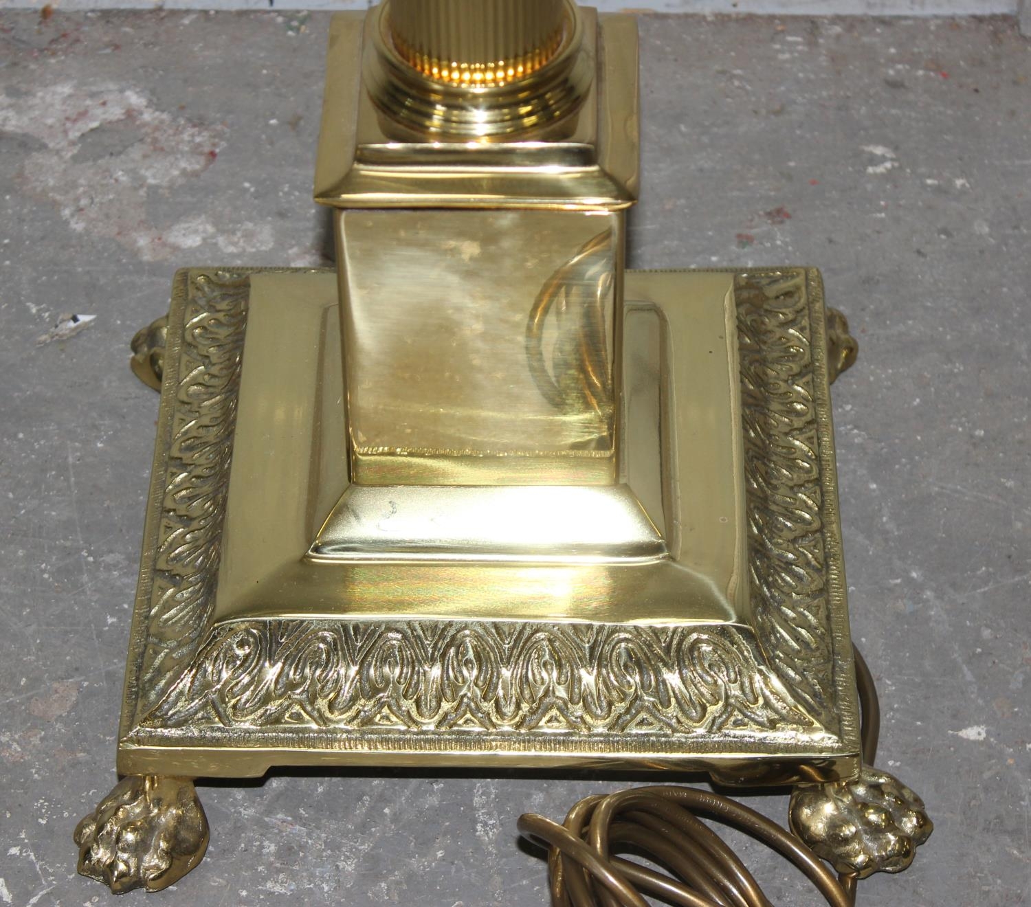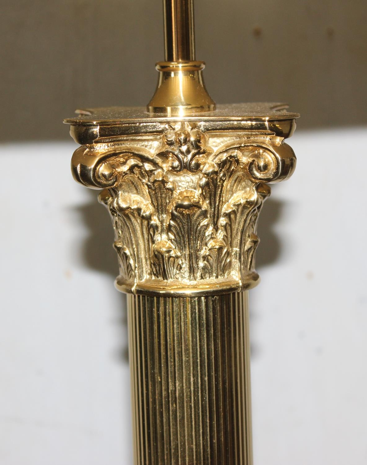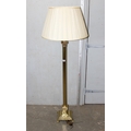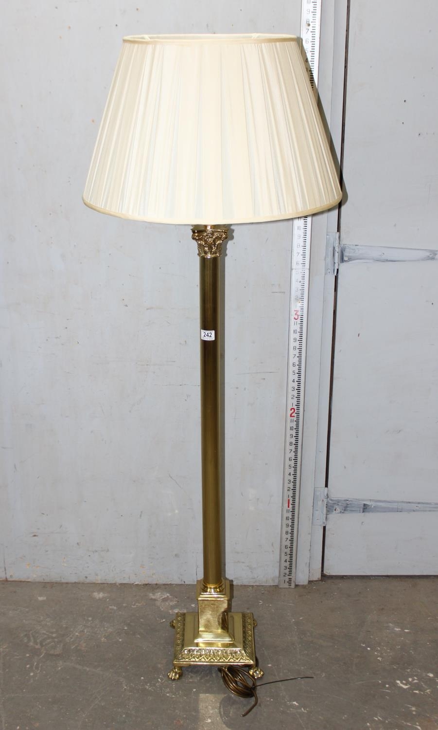 A large brass Corinthian column floor lamp with shade, approx 170cm tall