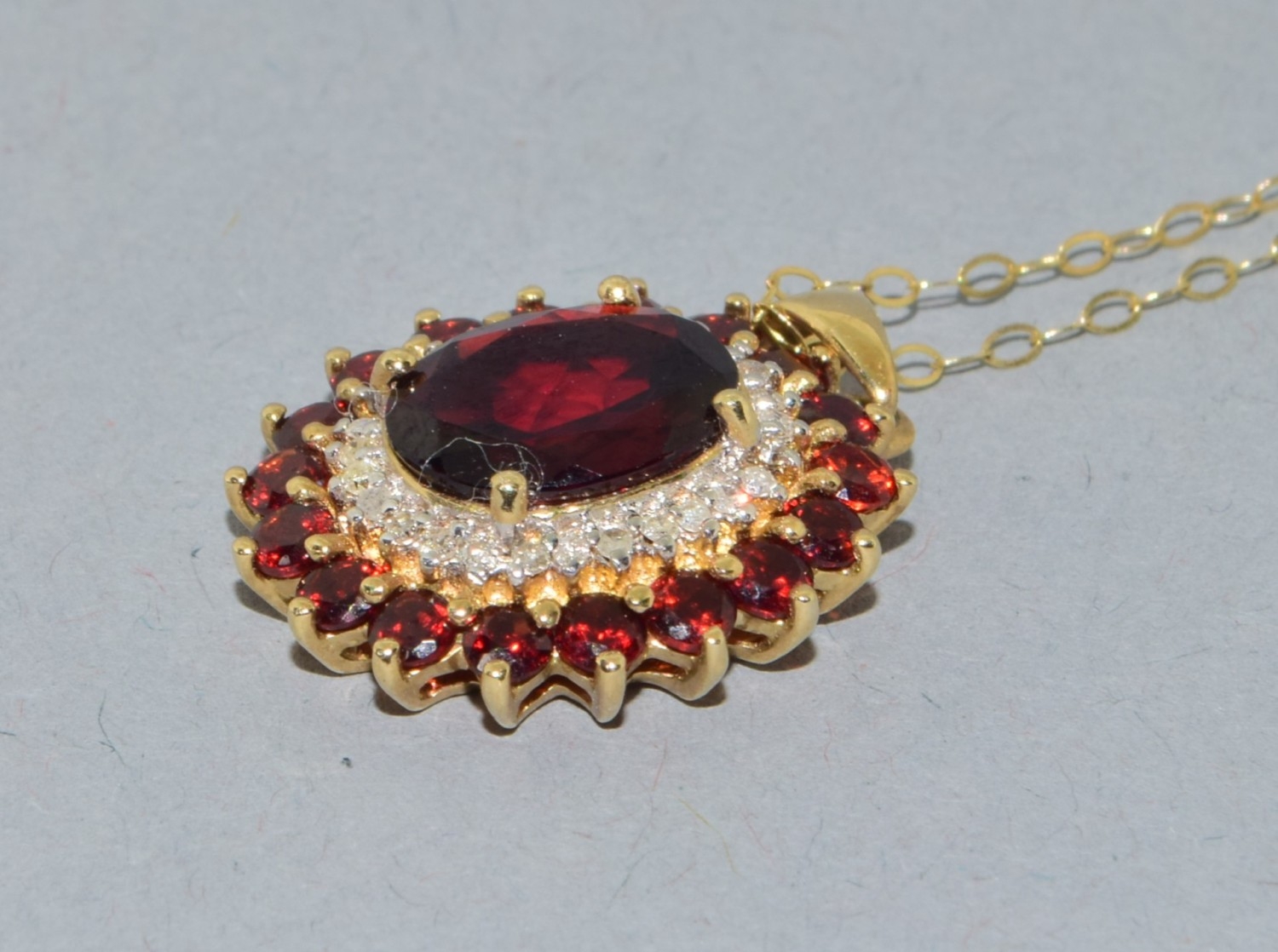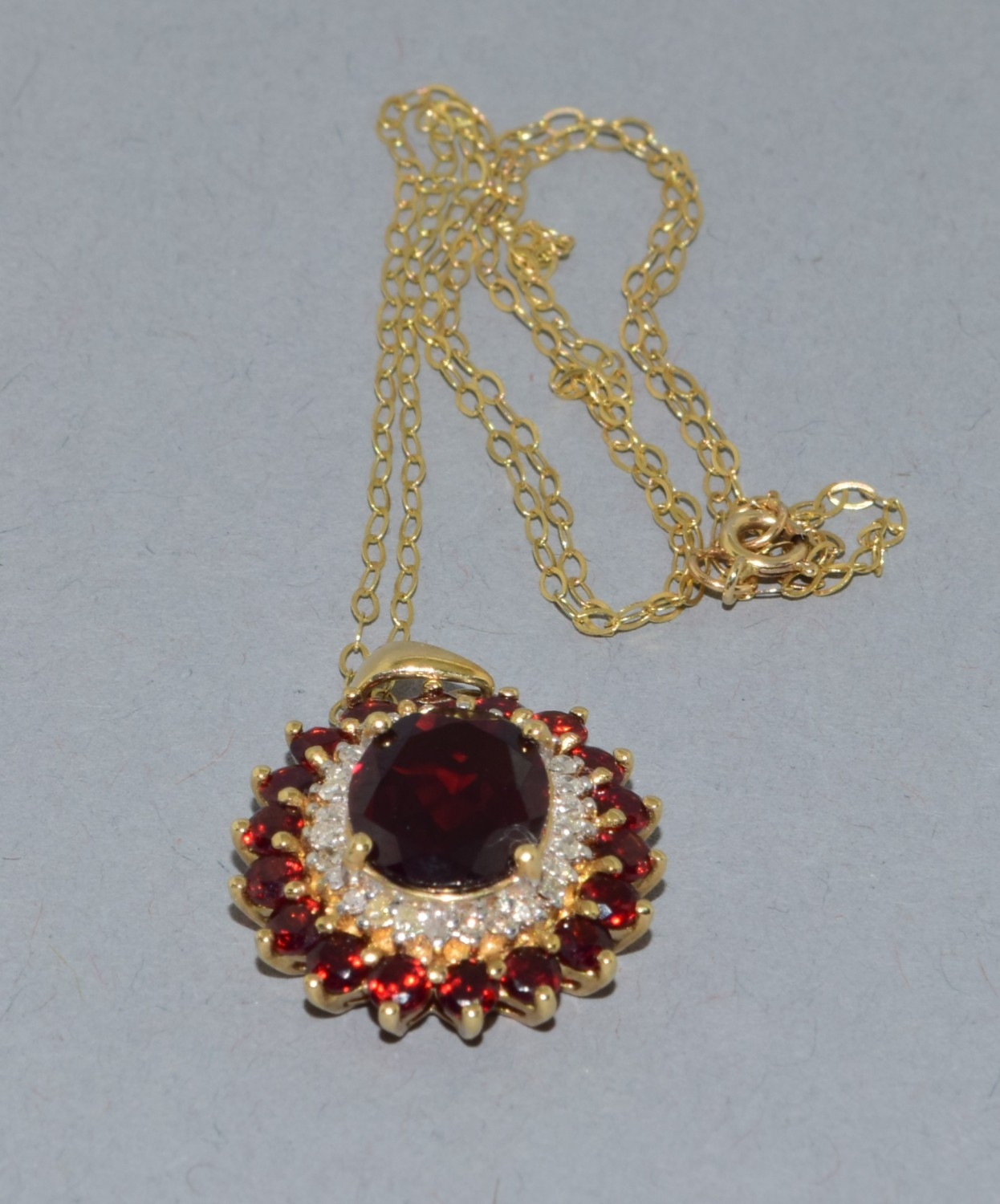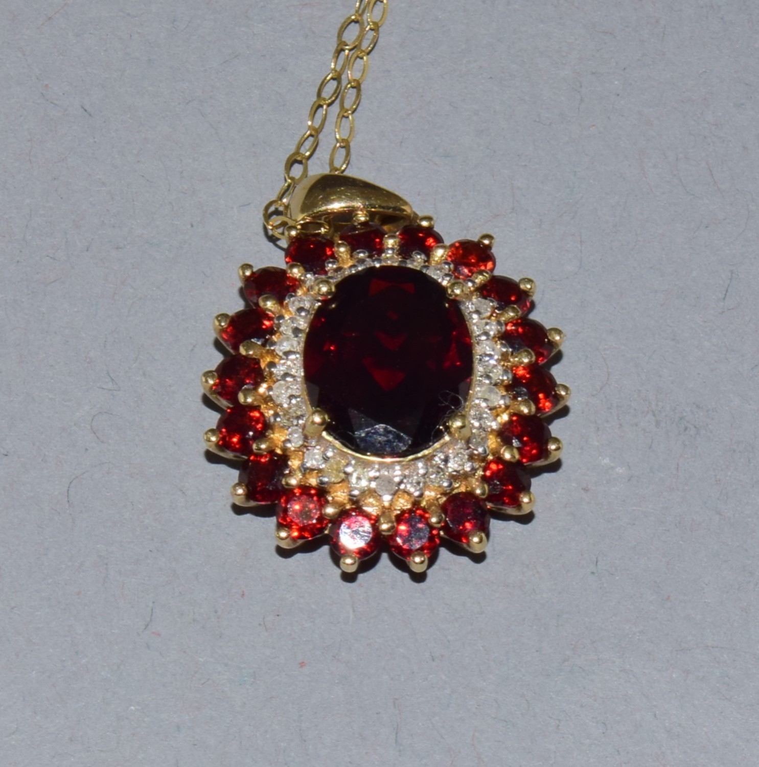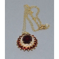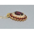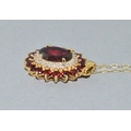 9ct gold Garnet and Diamond pendant necklace on a 9ct gold chain of 40cm long
