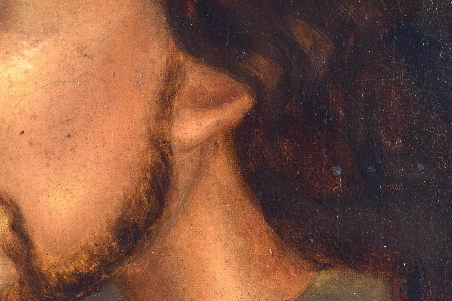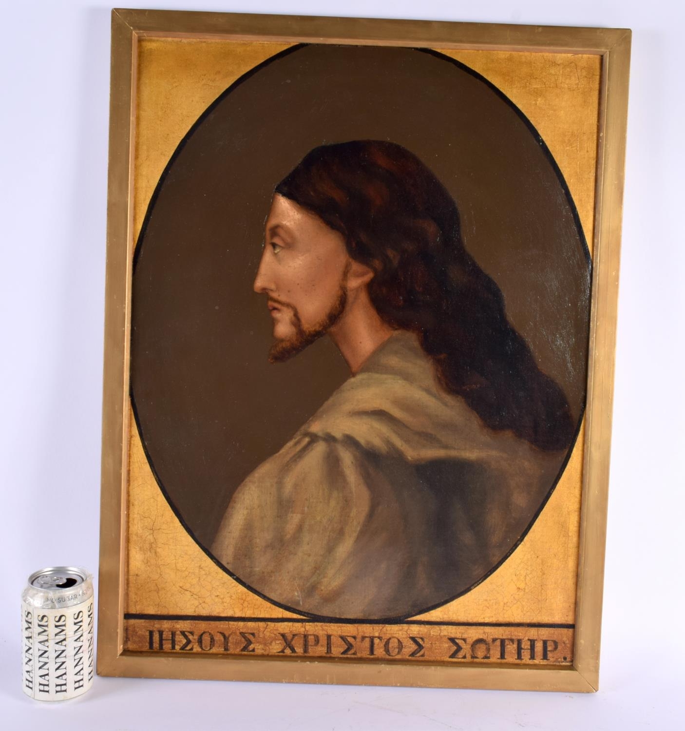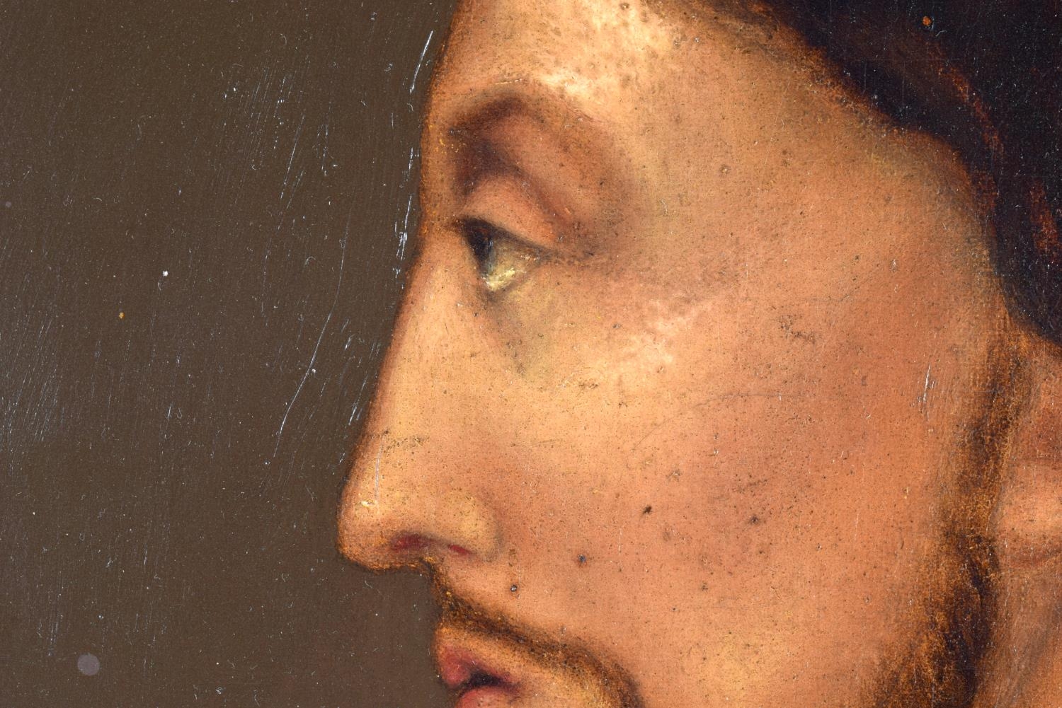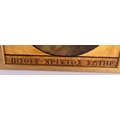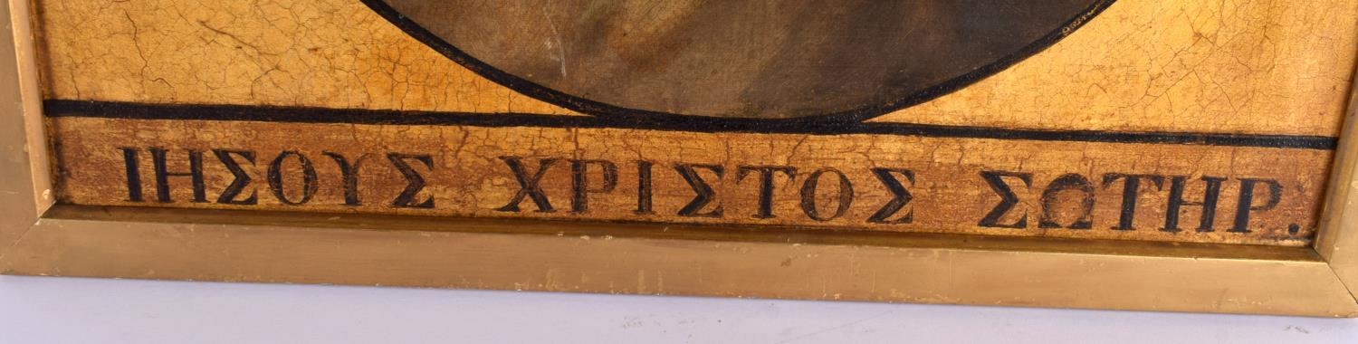 Greek School (18th/19th Century) Oil on board, Side profile of a bearded scholar, Greek cyrillic below. 66 cm x 50 cm.