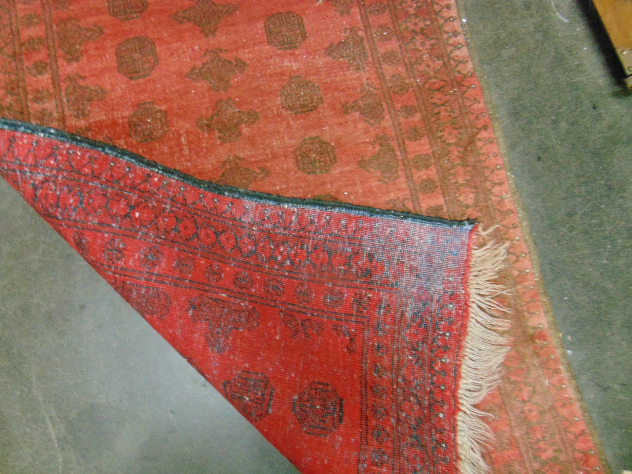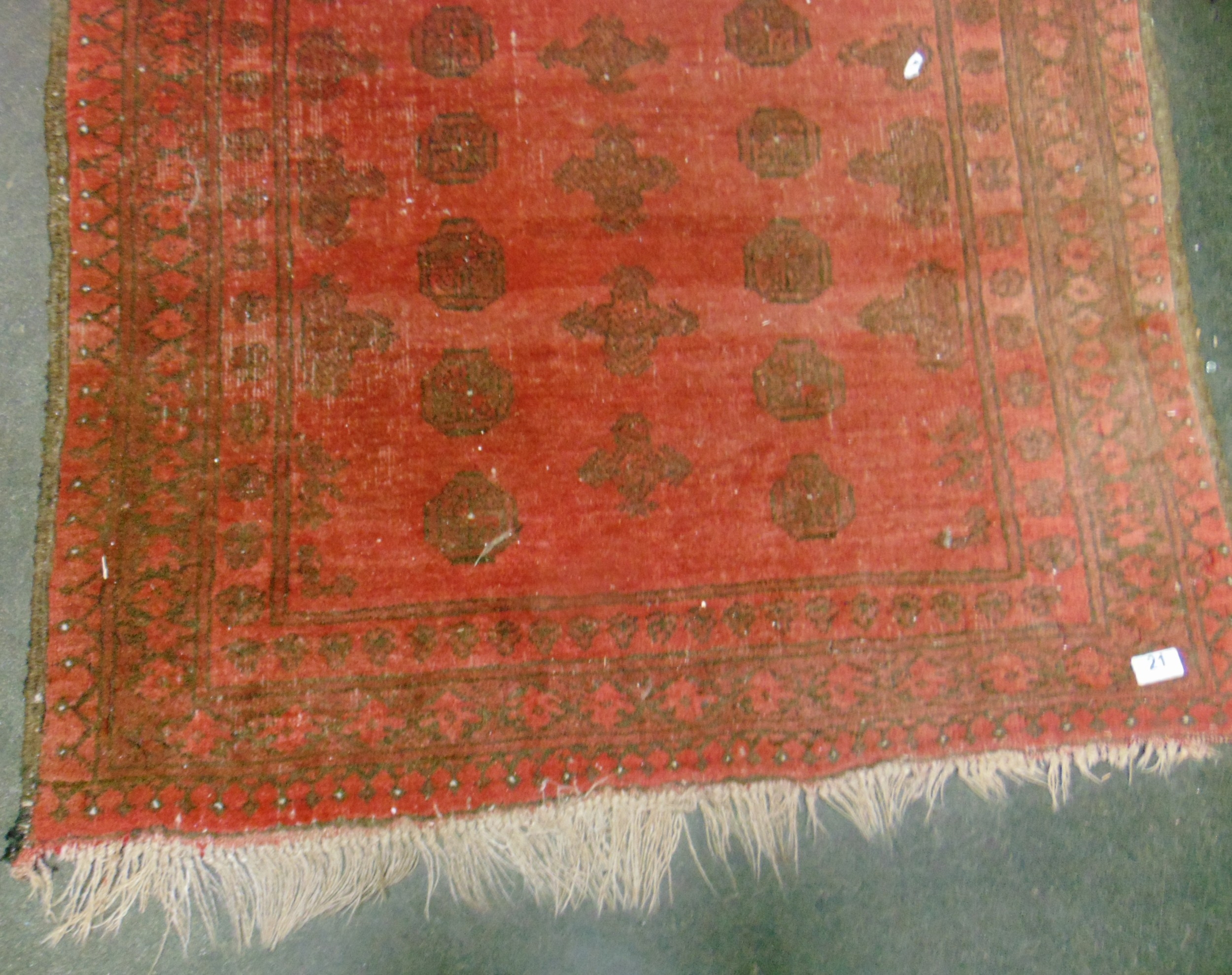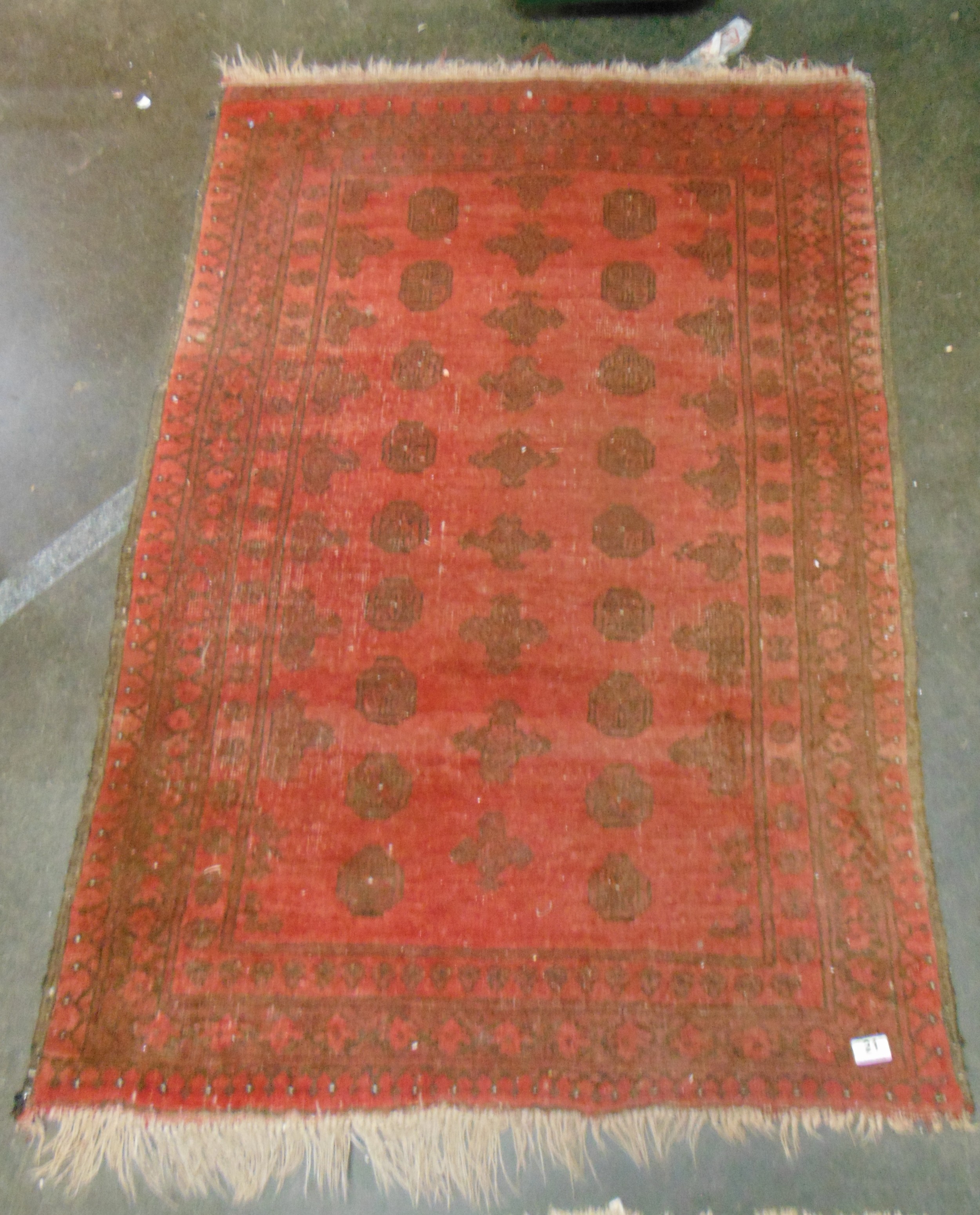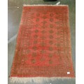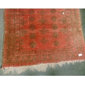 Persian red ground rug, having geometric pattern, 54 x 39".
