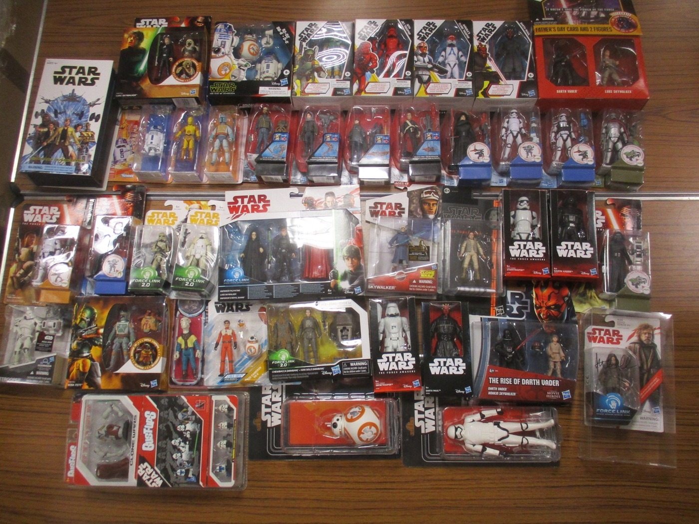 Star Wars. Hasbro. Collection of various figures, generally near mint to mint in near excellent to near mint boxes, with ranges of Rogue One, Force Awakens, Solo, Original Trilogy, Force Unleased, Clone Wars, etc, includes The Last Jedi Luke Skywalker figure signed by Mark Hamill. Qty 50 (2B)
