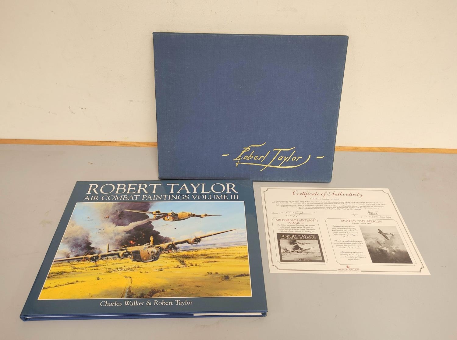 Robert Taylor- Air Combat Paintings Vol II limited edition book featuring Taylor's works. Signed to inner page with certificate and slip in case. 21/750.