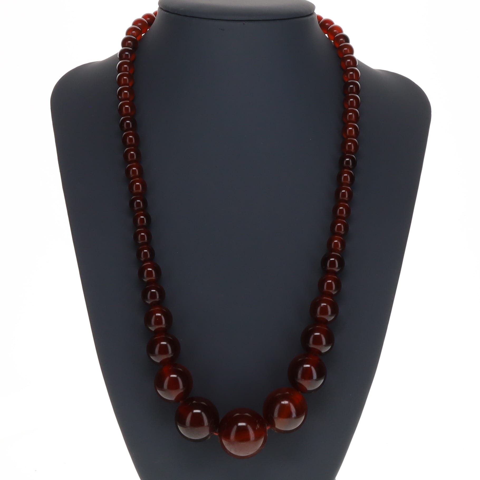 Bakelite Bead Graduated Necklace with Sterling Silver Clasp, 38g