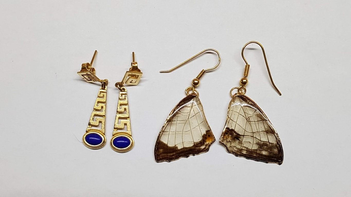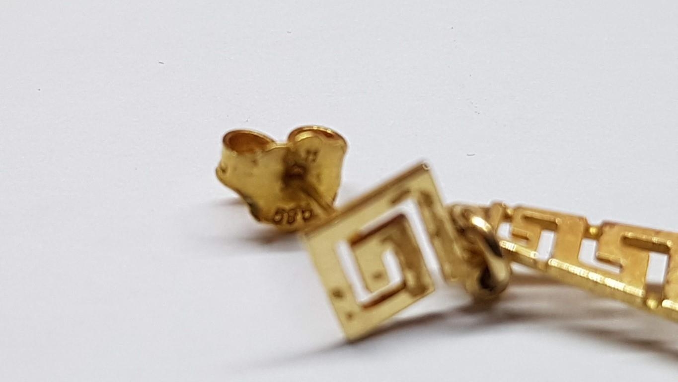 Pair of 585 - 14ct Yellow Gold Earrings in Greek Pattern with Blue Lapis Stone, Total Weight 2.9gr and One Other