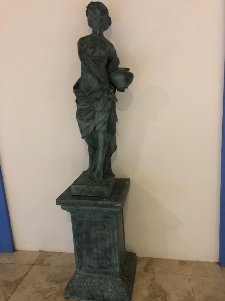 Pair of bronze figures of Greek Gods on bases {196 cm H}.