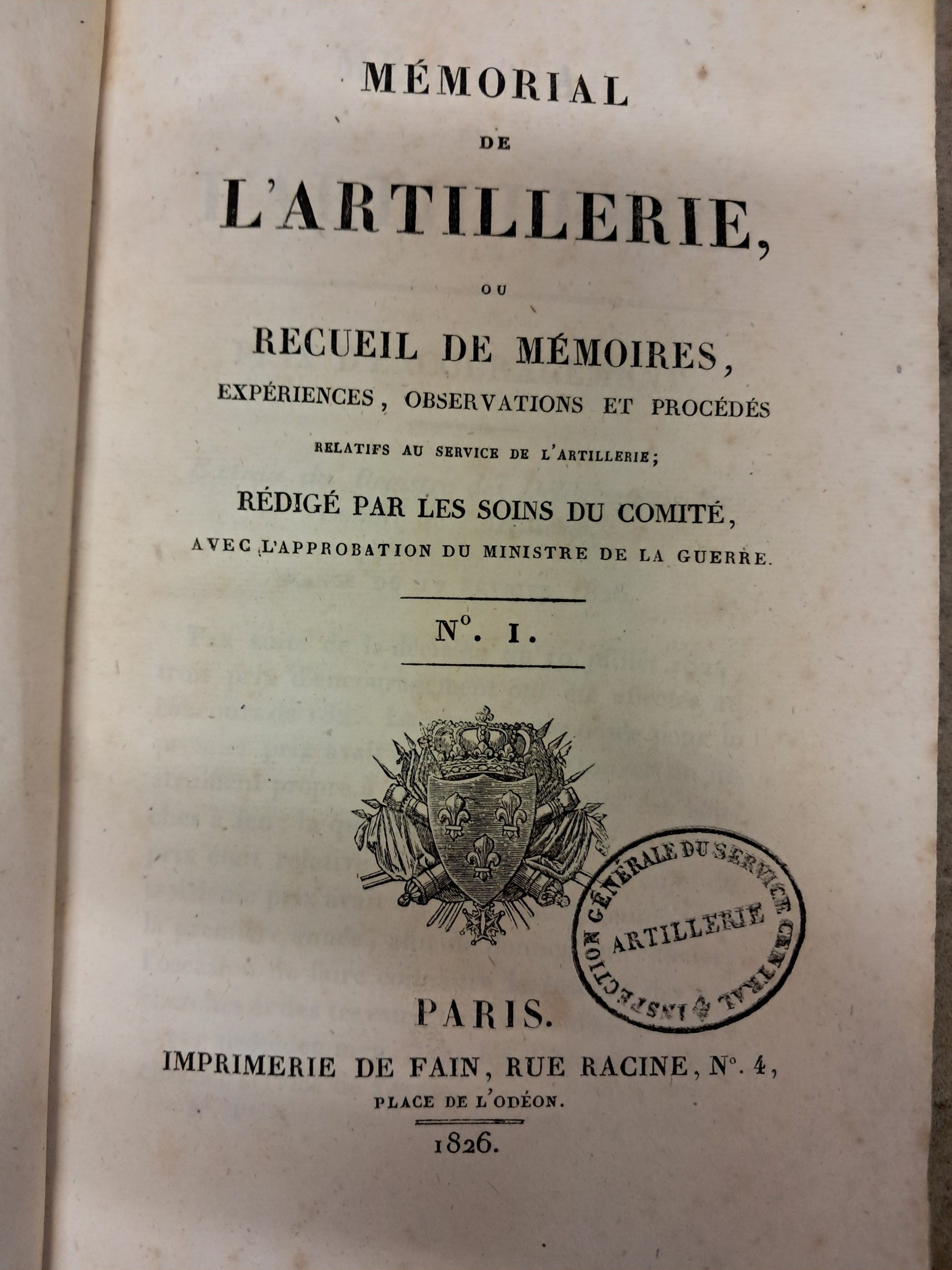 "Memorial De L'Artillerie" - 8 Vols 1826 - nicely Bound French Language Books