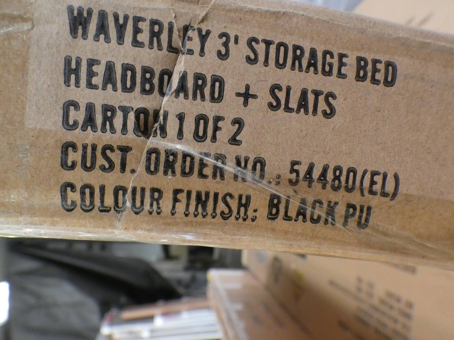 A Waverley single black Pu storage bed frame * this lot is subject to VAT
