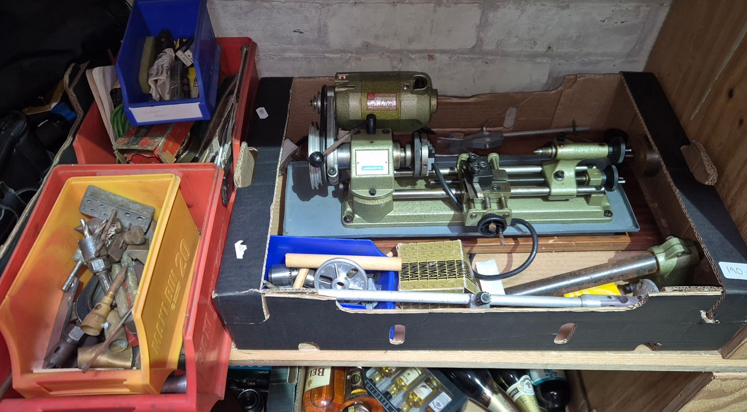 An Elliot Machine Equipment Unimat-SL watchmakers lathe with various tools.