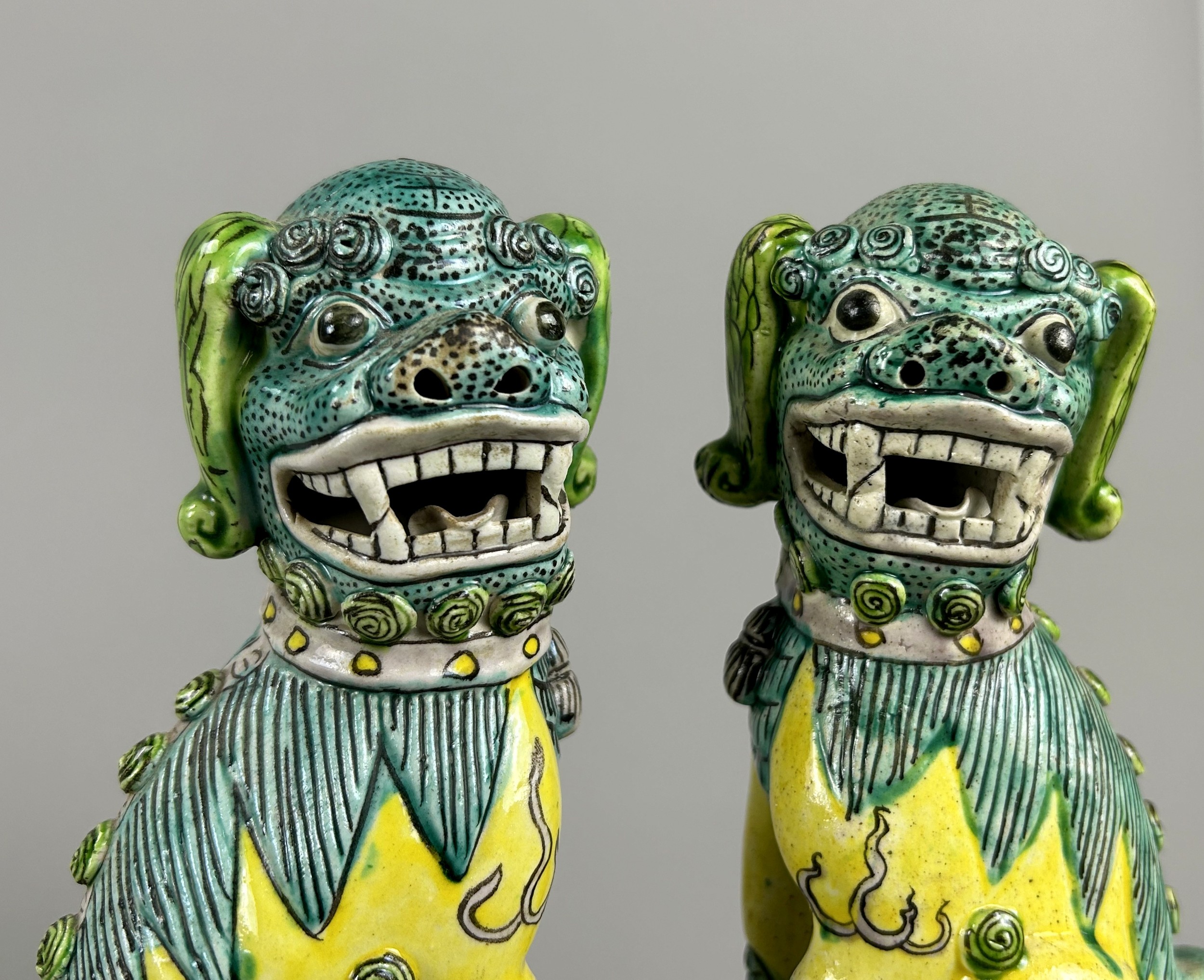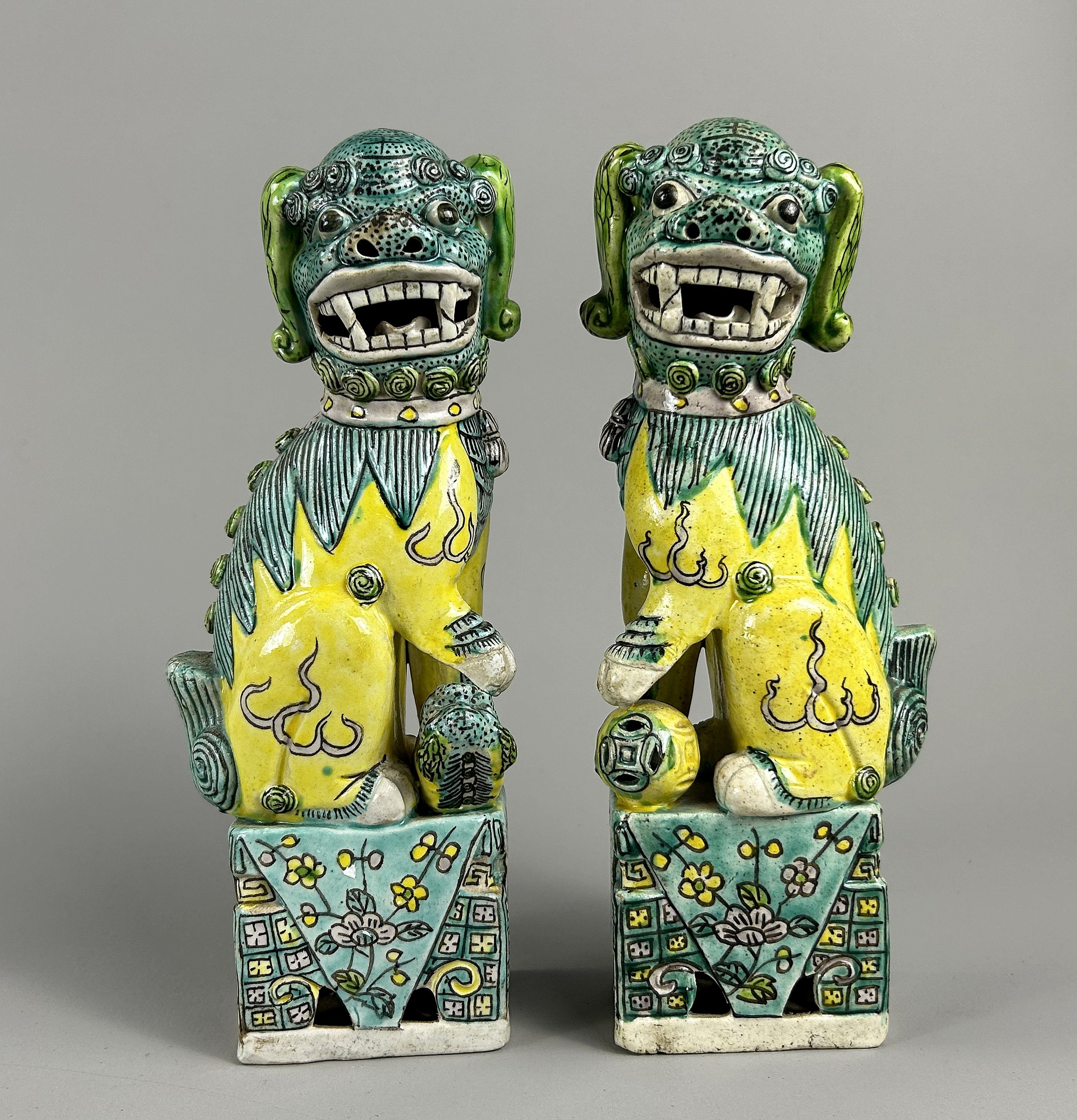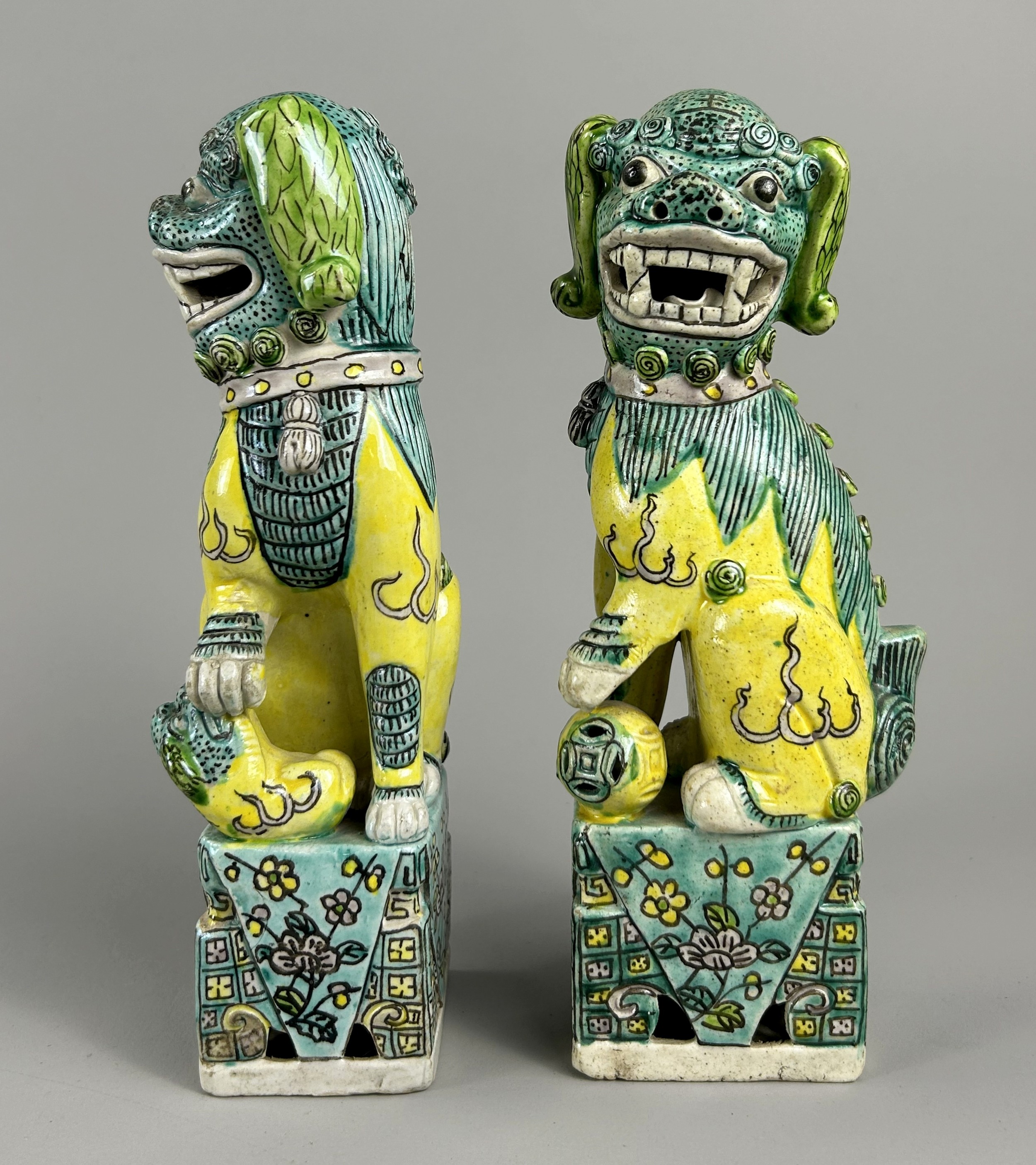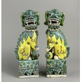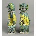 A pair of Chinese Famille Verte porcelain Foo dogs.