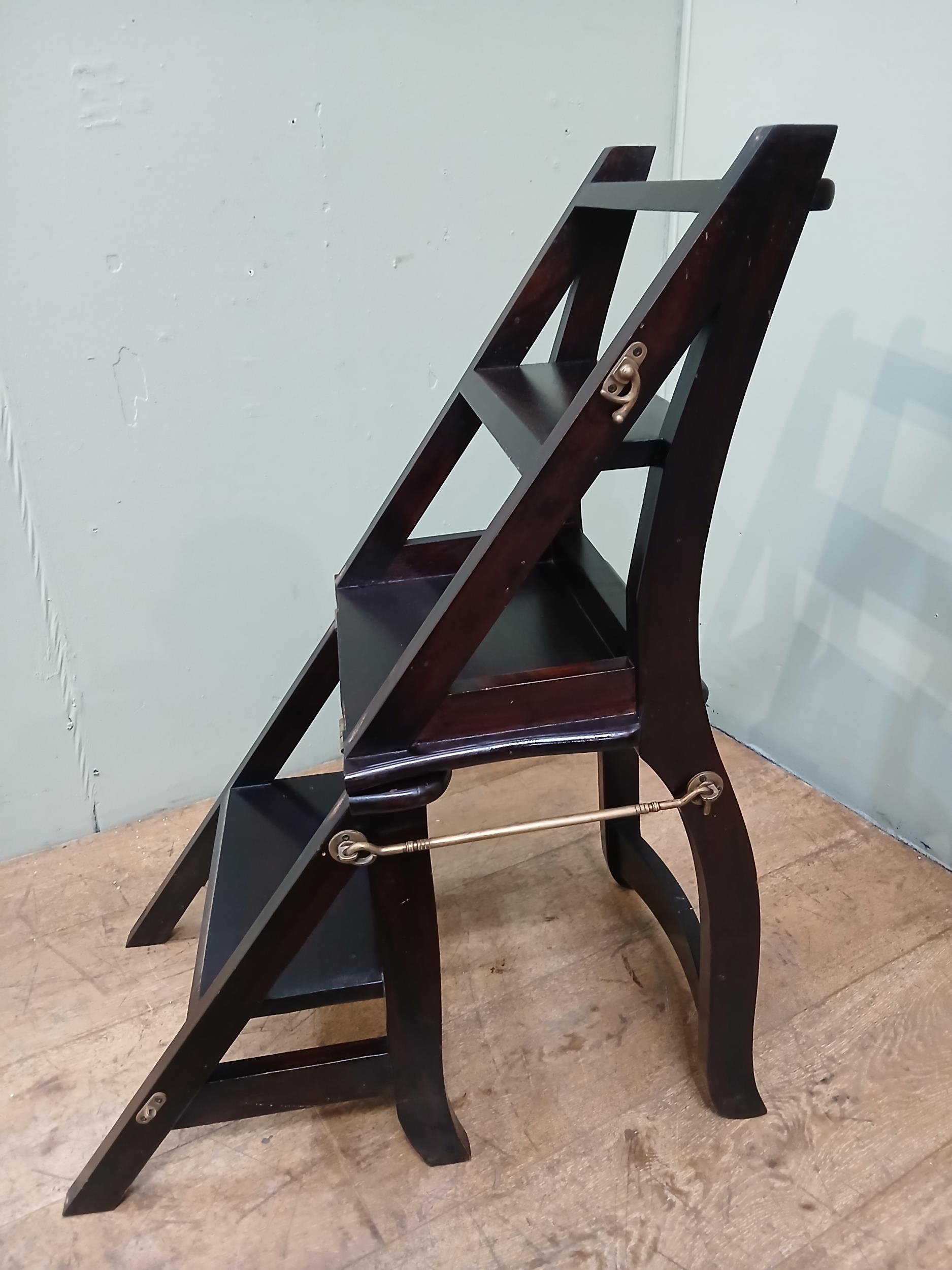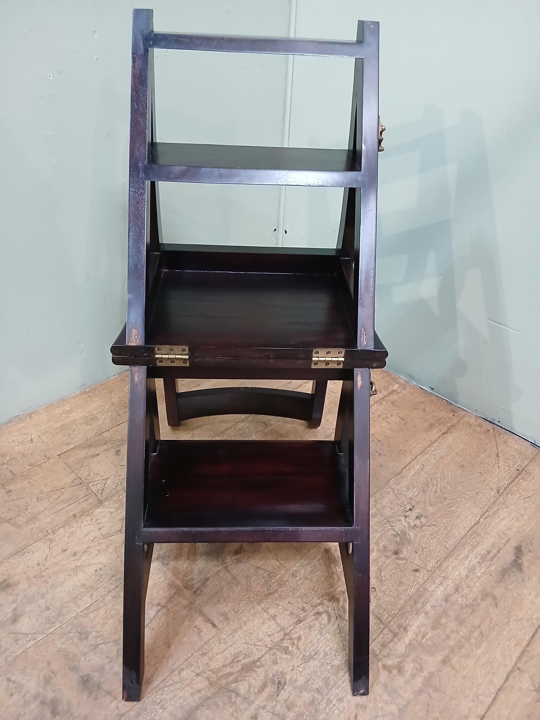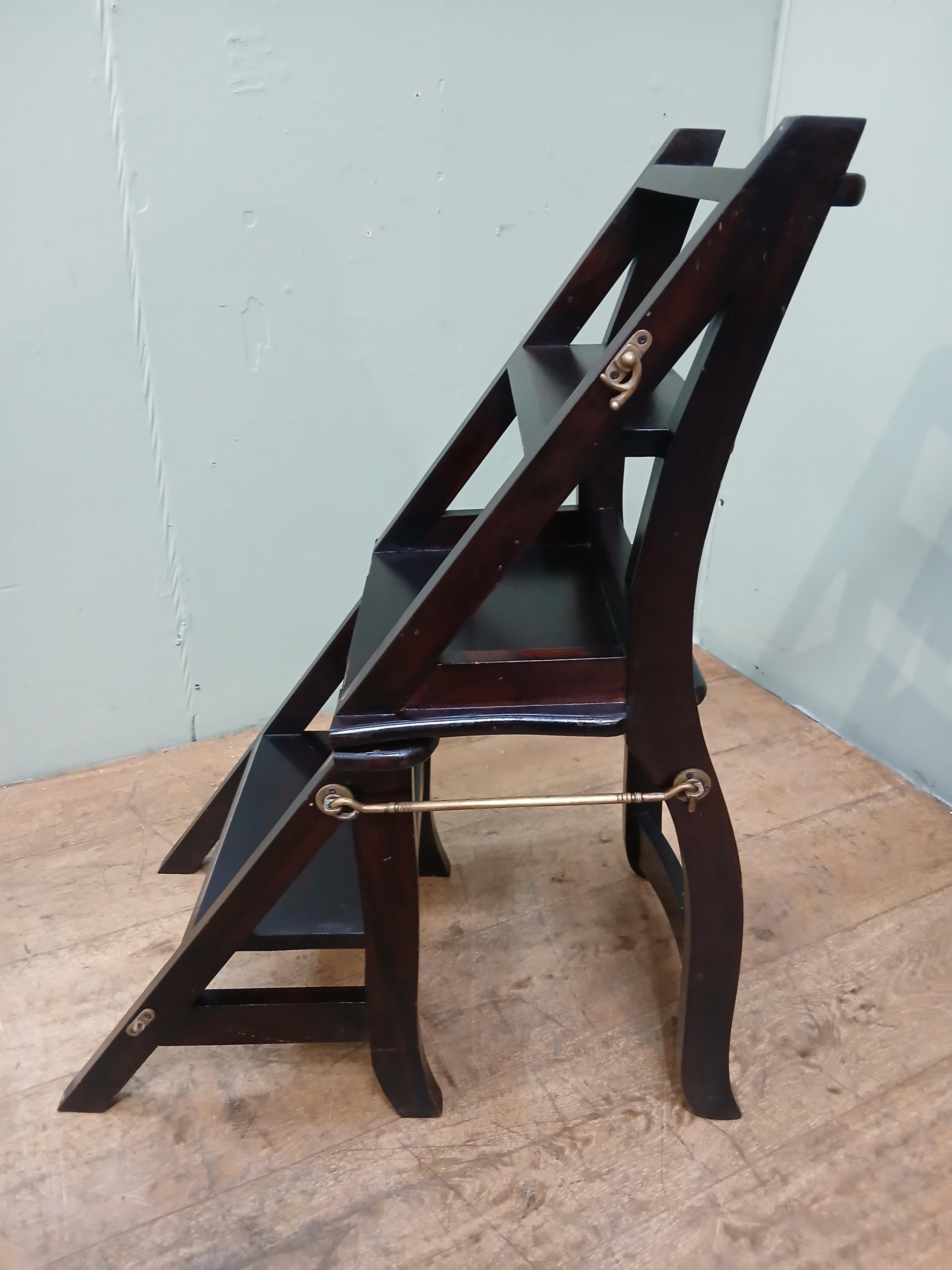 Mahogany metamorphic library chair. {H 87cm x W 43cm xx D 39cm Ladder H 88cm x W 42cm x D 66cm }. NOT AVAILABLE TO VIEW IN PERSON.